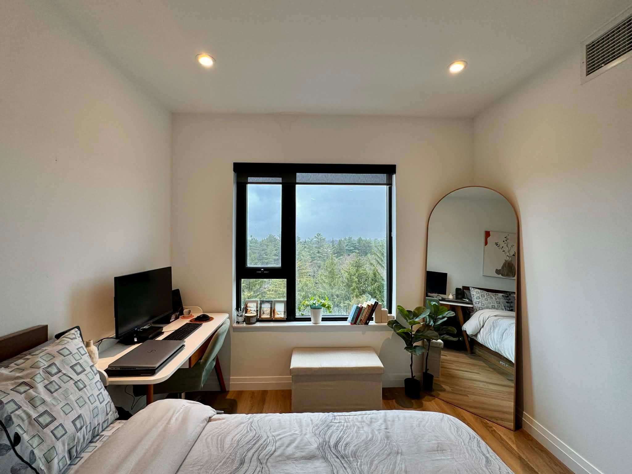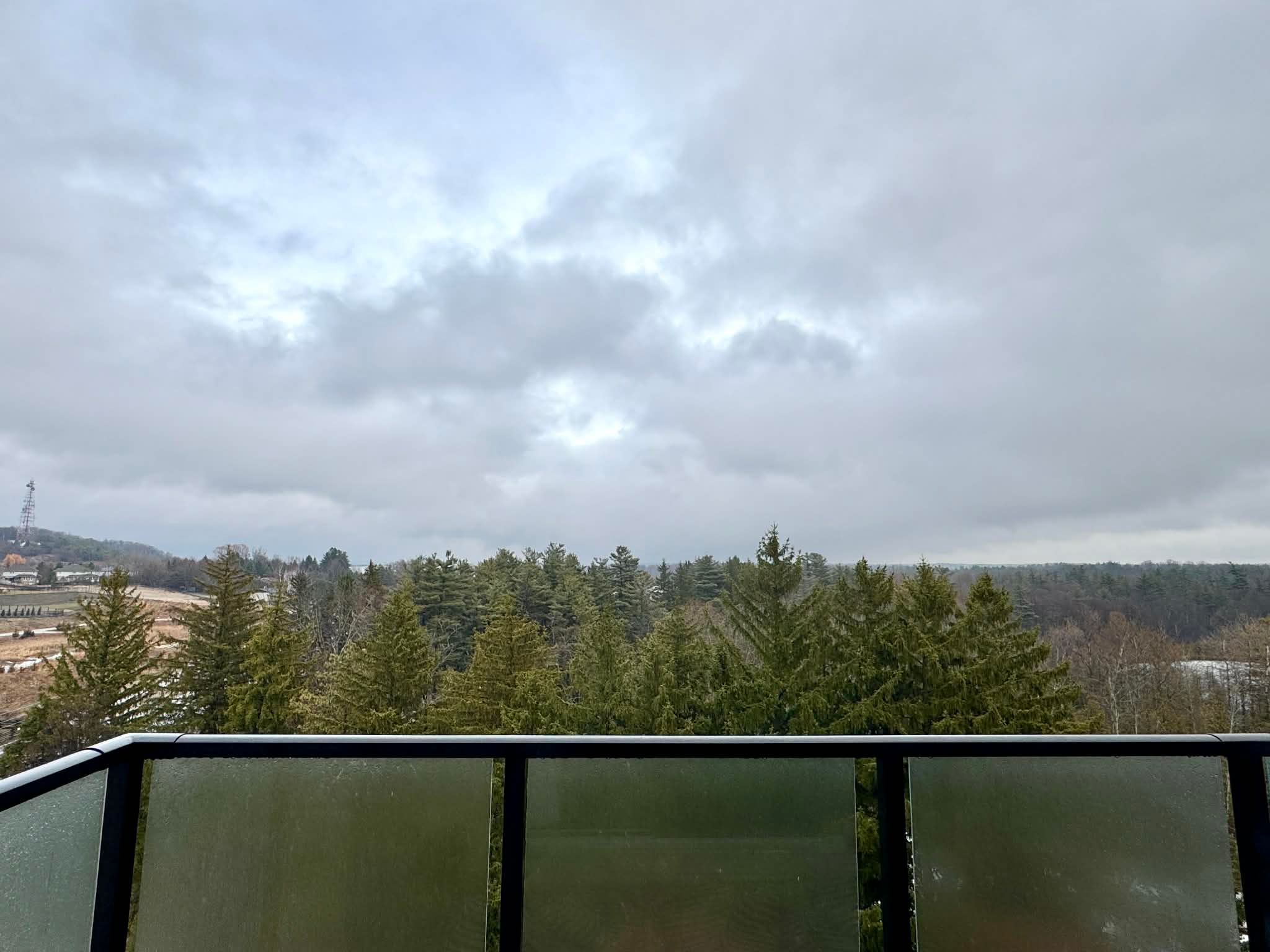• Spacious balcony with peaceful views of the forest and pond.