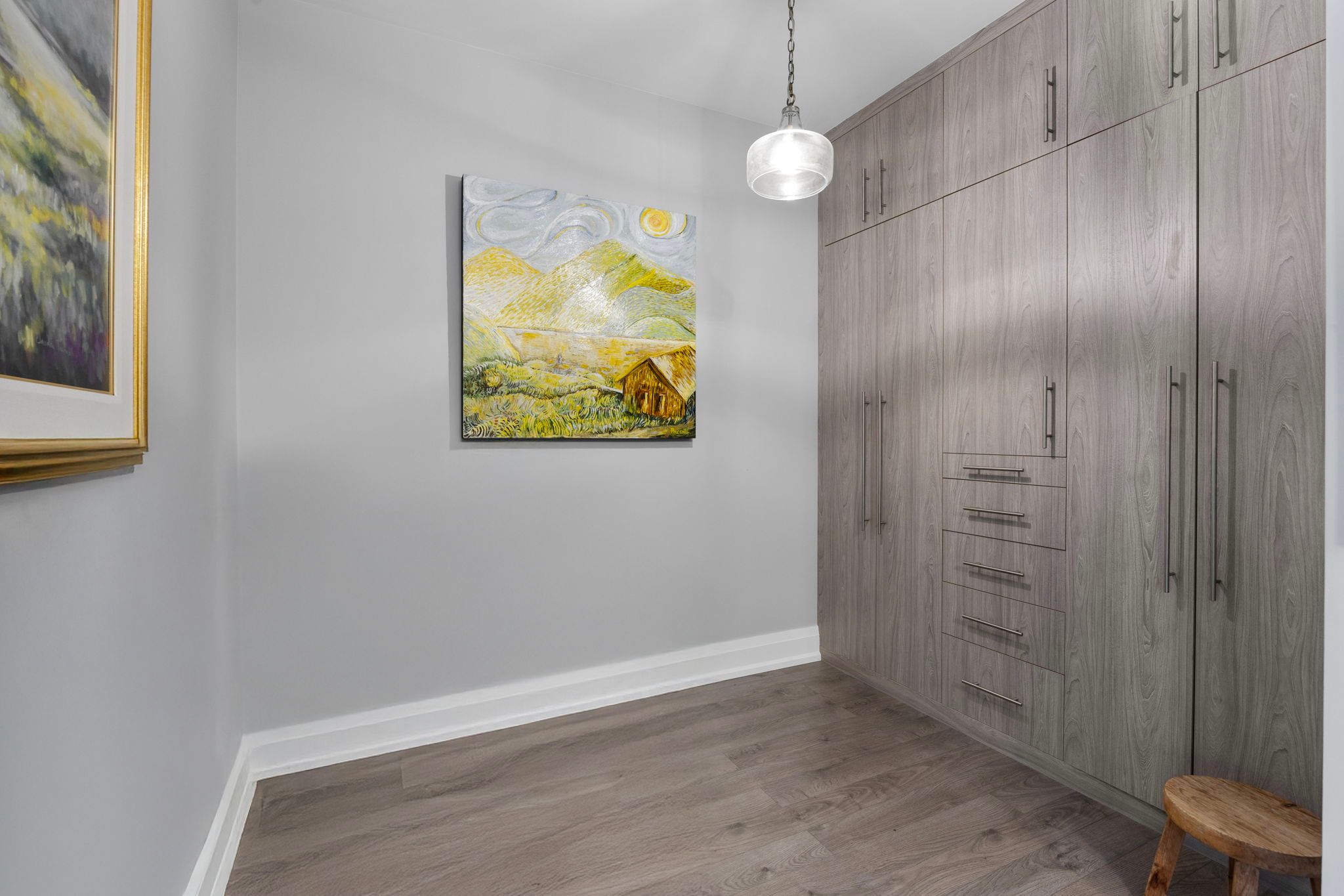 • Master bedroom includes stylish custom walls and closets.