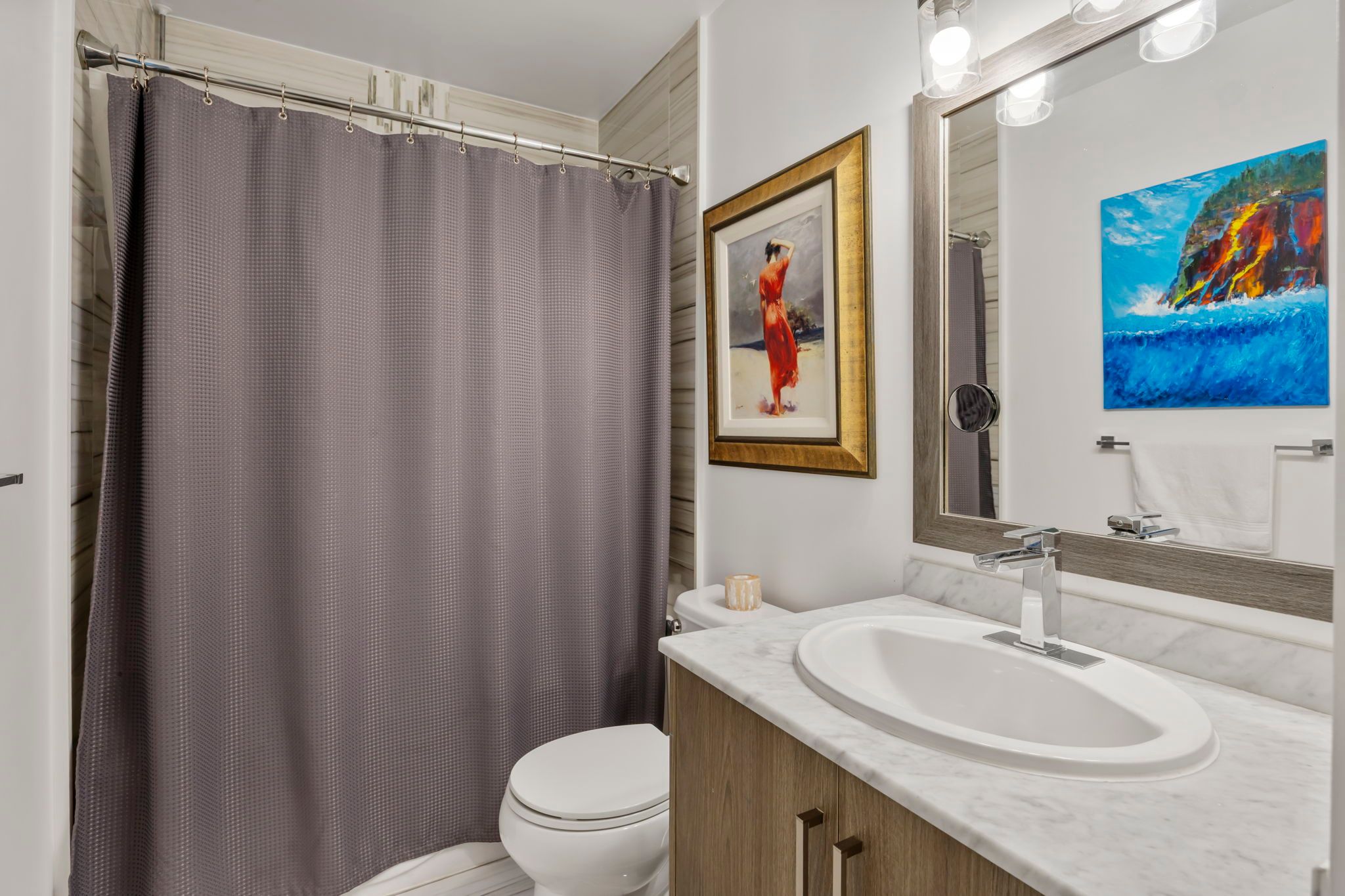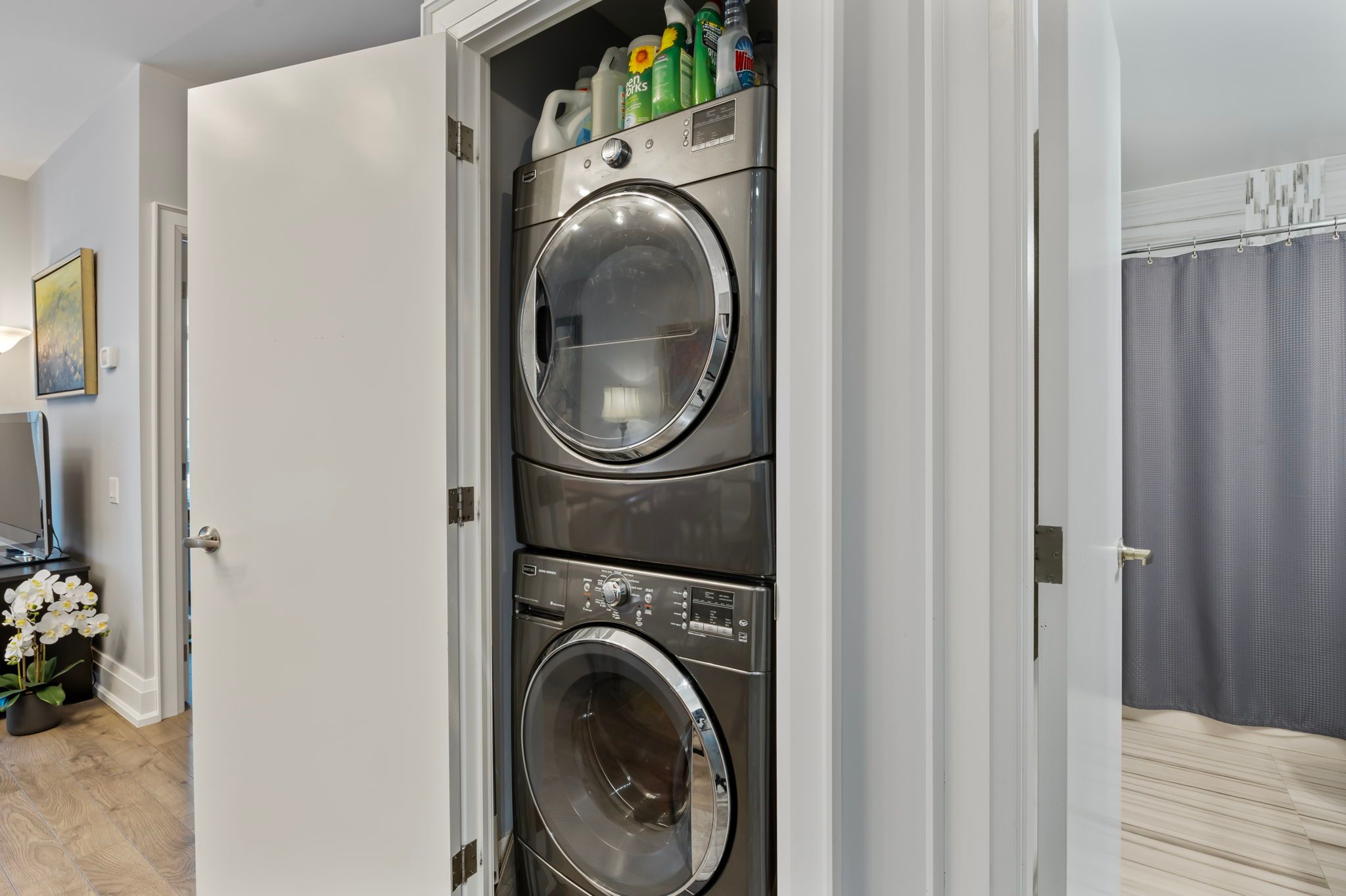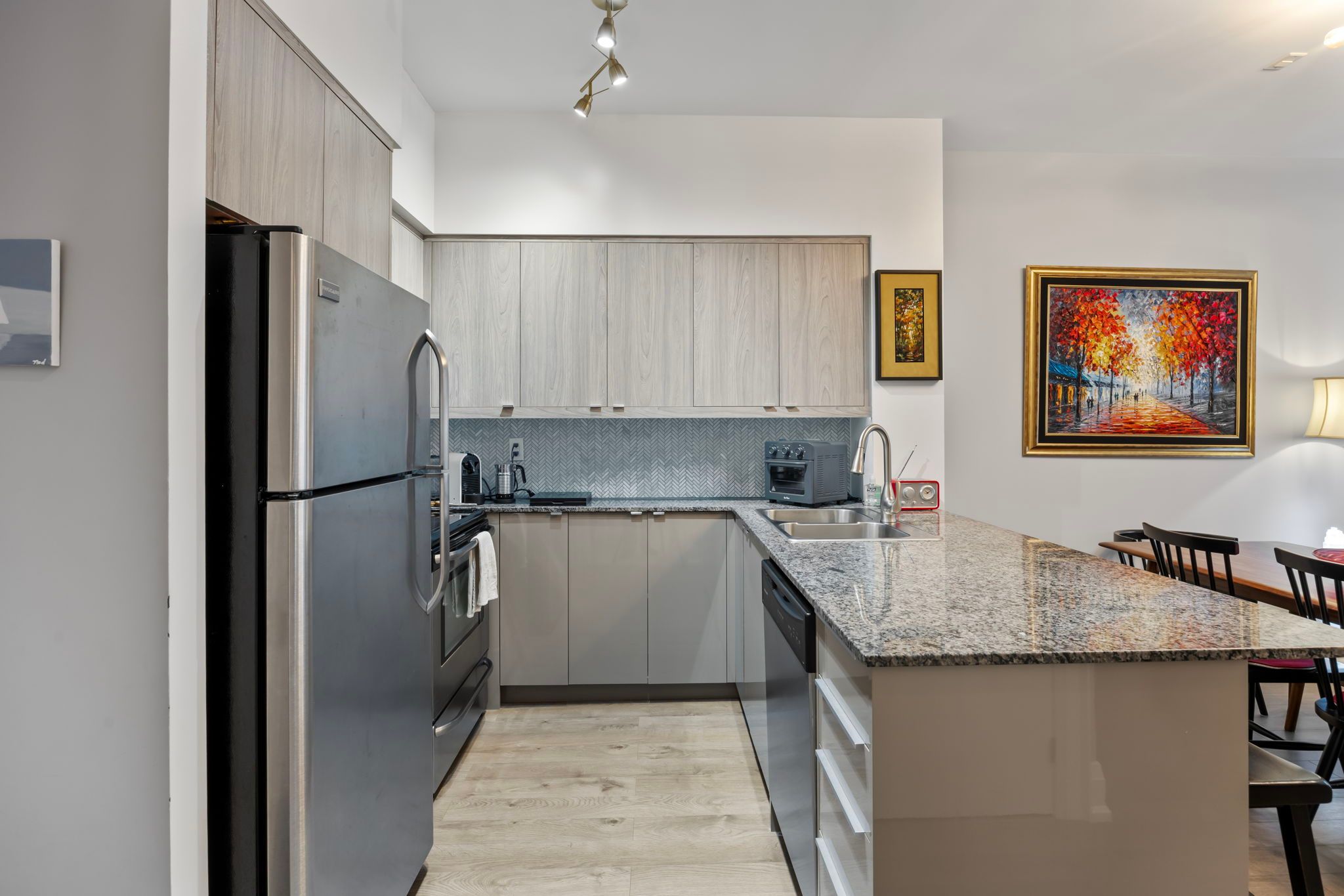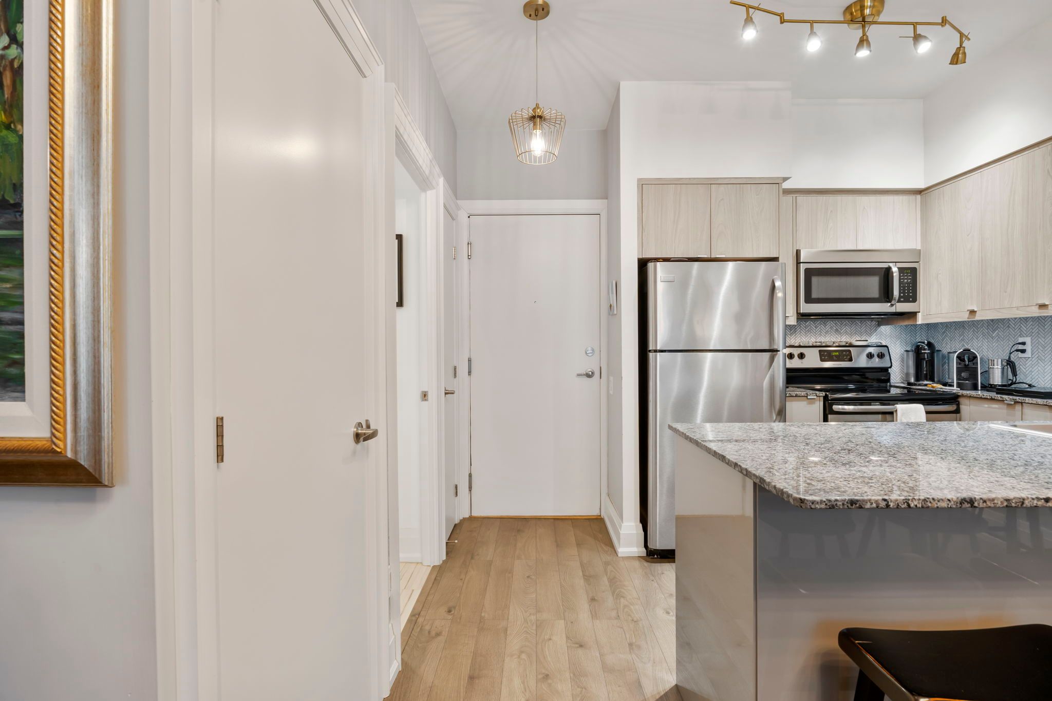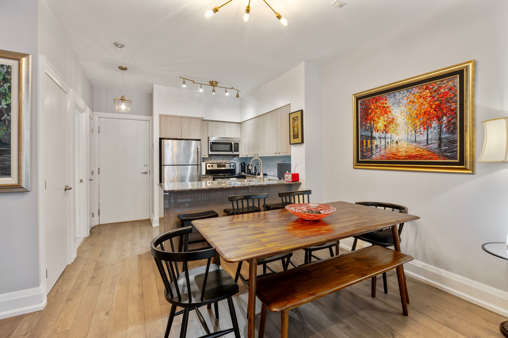 • Updated unit with impressive 9ft ceilings and custom features.