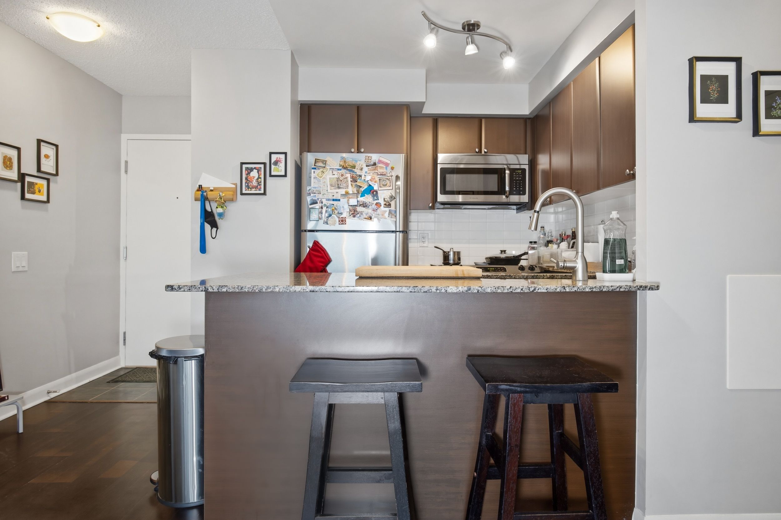 A one-bedroom condo with the kind of storage most buyers assume doesn't exist. This bright and functional 603 sq ft suite offers a rare combination of smart layout, generous storage, and exceptional connectivity in one of toronto's most convenient locations. Storage - often the biggest concern for one-bedroom buyers - is a real strength here. The bedroom includes both a walk-in closet and a second closet, offering far more space than most condos of this size. An additional storage locker near the parking space gives you even more room for luggage, seasonal items, or sports gear. Inside the unit, the layout makes excellent use of every square foot. The kitchen provides generous counter space for cooking and meal prep, while the breakfast bar and separate dining area give you options for quick meals or hosting friends. Another welcome bonus: no neighbours living above the unit, adding a level of quiet and privacy that's hard to find in condo living. Located at 525 wilson ave, the building puts transit almost literally at your doorstep. Wilson subway station is about a two-minute walk away, making commuting downtown, midtown, or up to vaughan simple and predictable. Drivers will appreciate quick access to allen road and highway 401. Daily errands are just as convenient. Costco, downsview smartcentre, no frills, yorkdale mall, and a wide variety of restaurants and takeout spots are all nearby. Residents enjoy a full range of amenities including an indoor pool, fitness centre, visitor parking, bbq area, and 24-hour concierge. A smart layout, great storage, and unbeatable connectivity make this a one-bedroom that truly stands out.