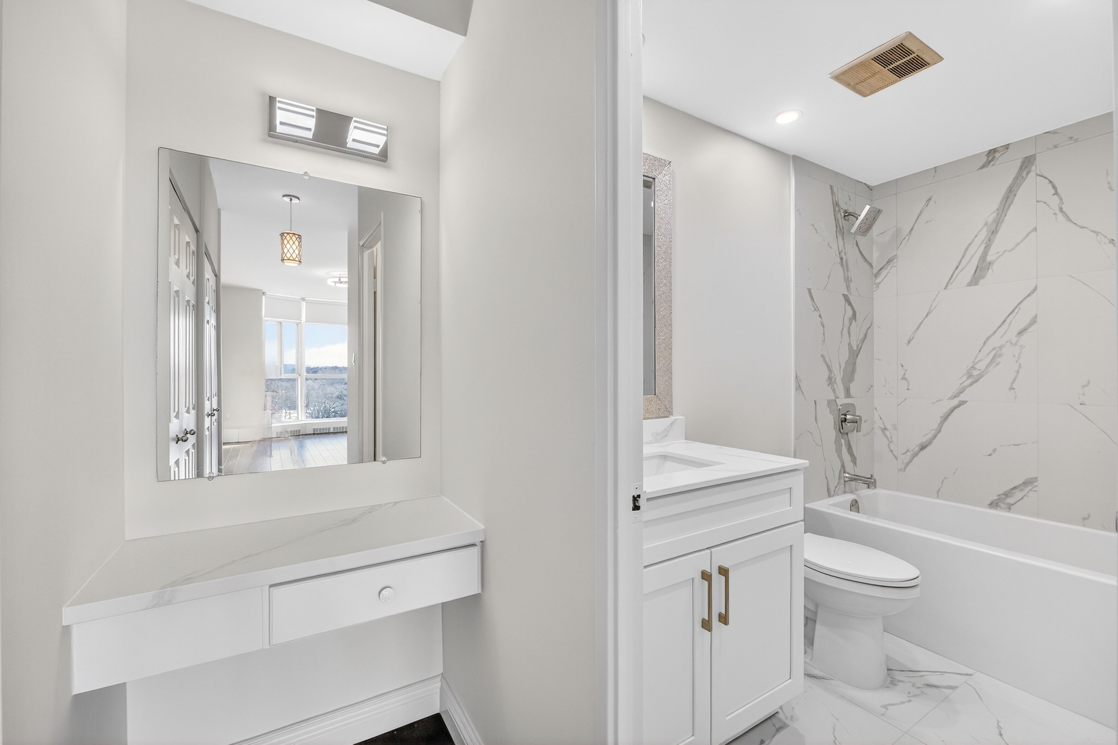 Not your traditional shoebox condo! Offering 1381 square feet of thoughtfully laid-out living space, this 2-bedroom, suite is a rare opportunity in one of burlington's most desirable waterfront communities. Fully renovated with brand new stainless steel appliances, new quartz counters, kitchen and bathrooms! Enjoy the comfort of expansive principal rooms, a full-sized kitchen with breakfast area, and a sun-drenched living and dining space perfect for entertaining or simply stretching out in style. Rare ensuite laundry with brand new washer and dryer. The oversized bedrooms offer generous closet space, and the versatile second bedroom can double as a home office or den. Whether you're sipping your morning coffee on the private balcony or winding down with escapement views at sunset, strolling by the water, or taking advantage of the buildings amenities this condo, delivers the perfect blend of space, location, and lifestyle. Located steps from the lake, parks, trails, shopping, and transit this is the condo you've been waiting for.