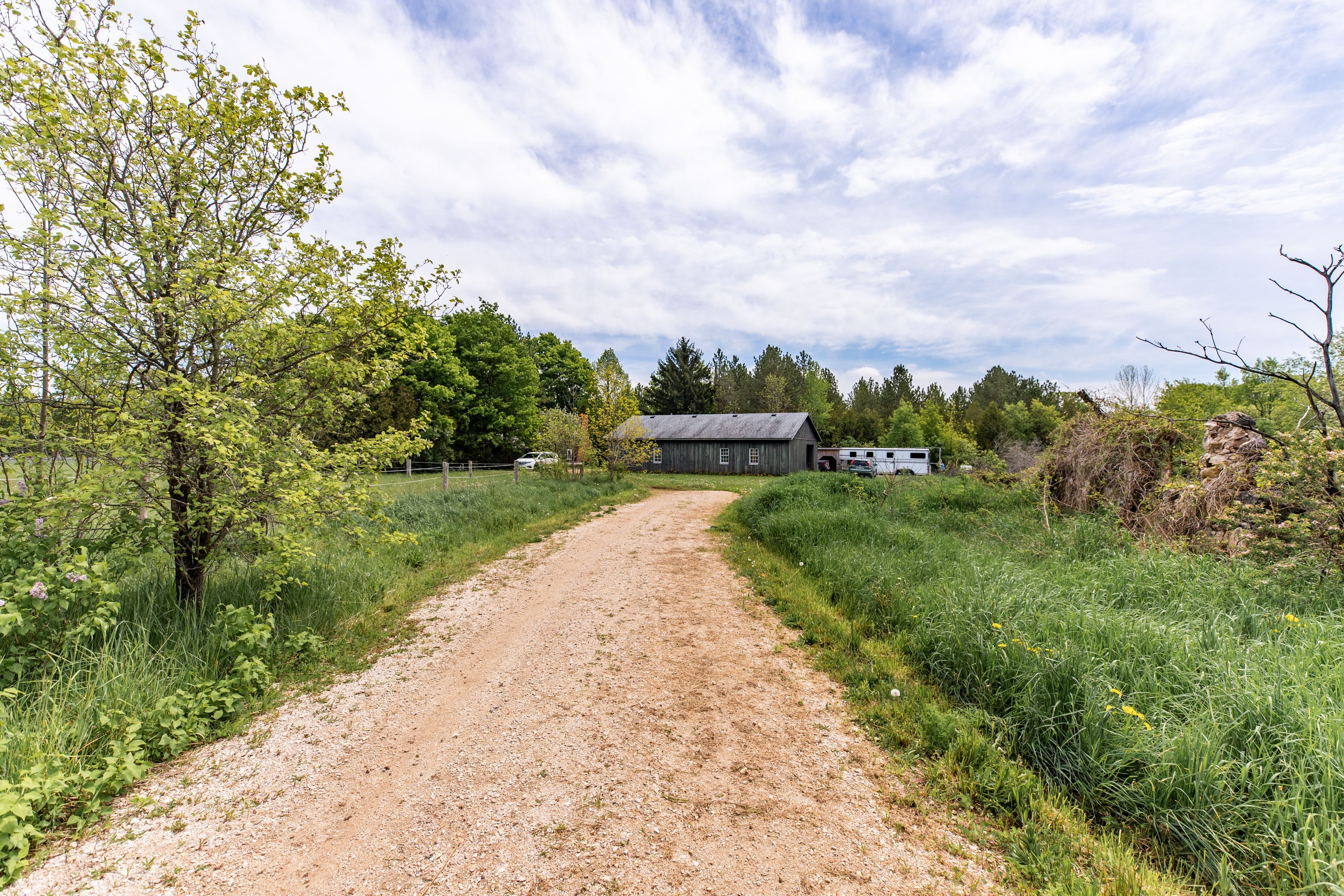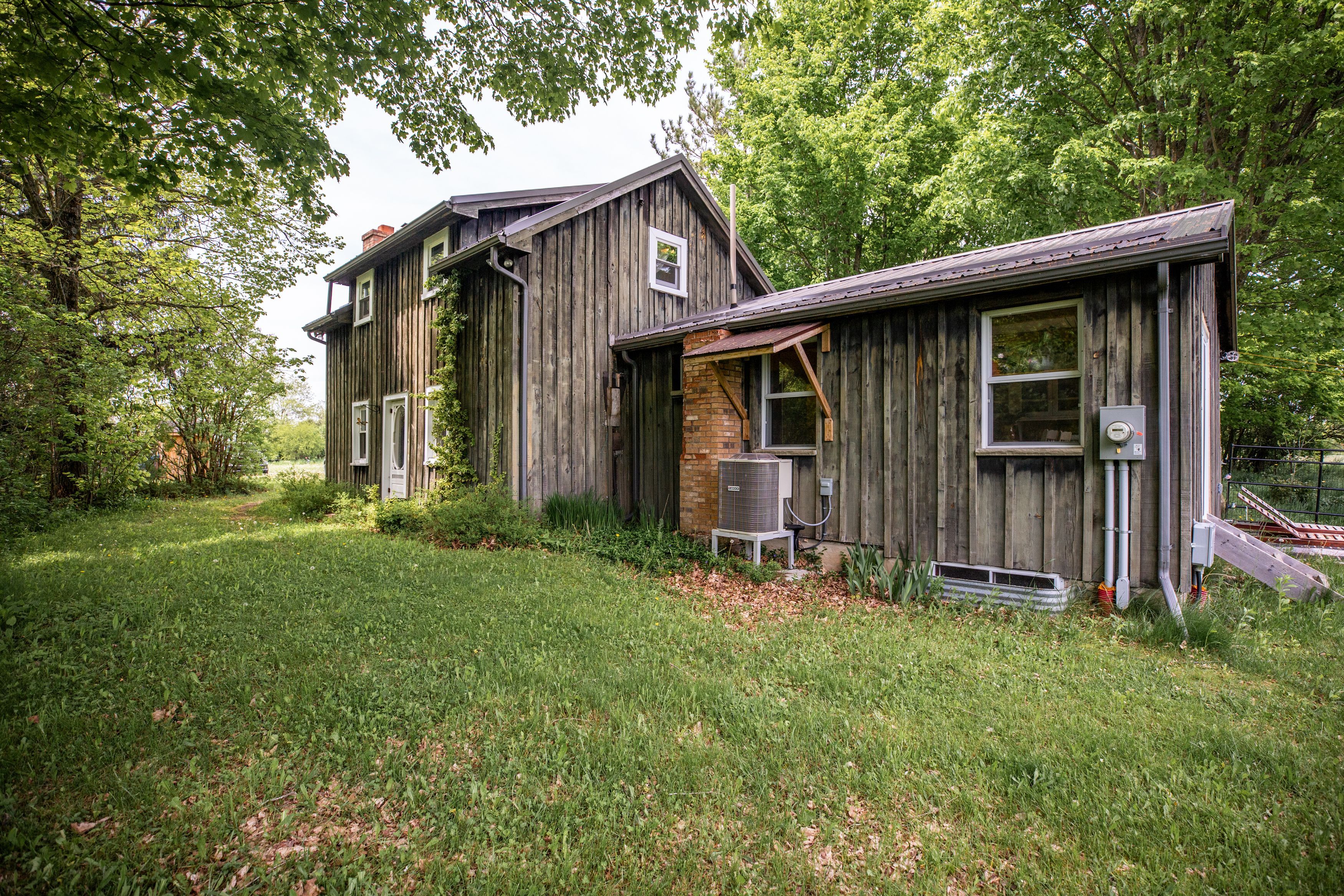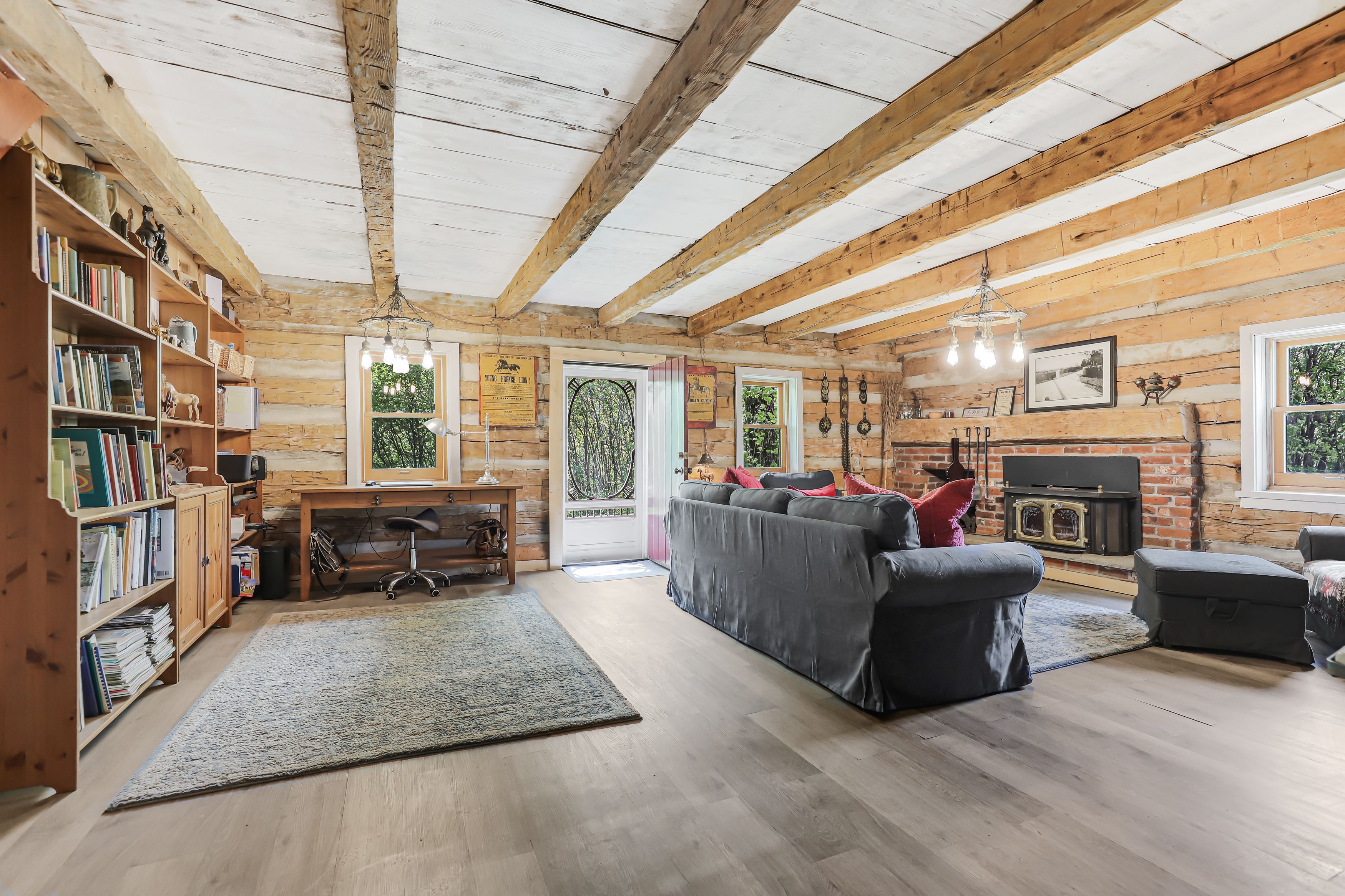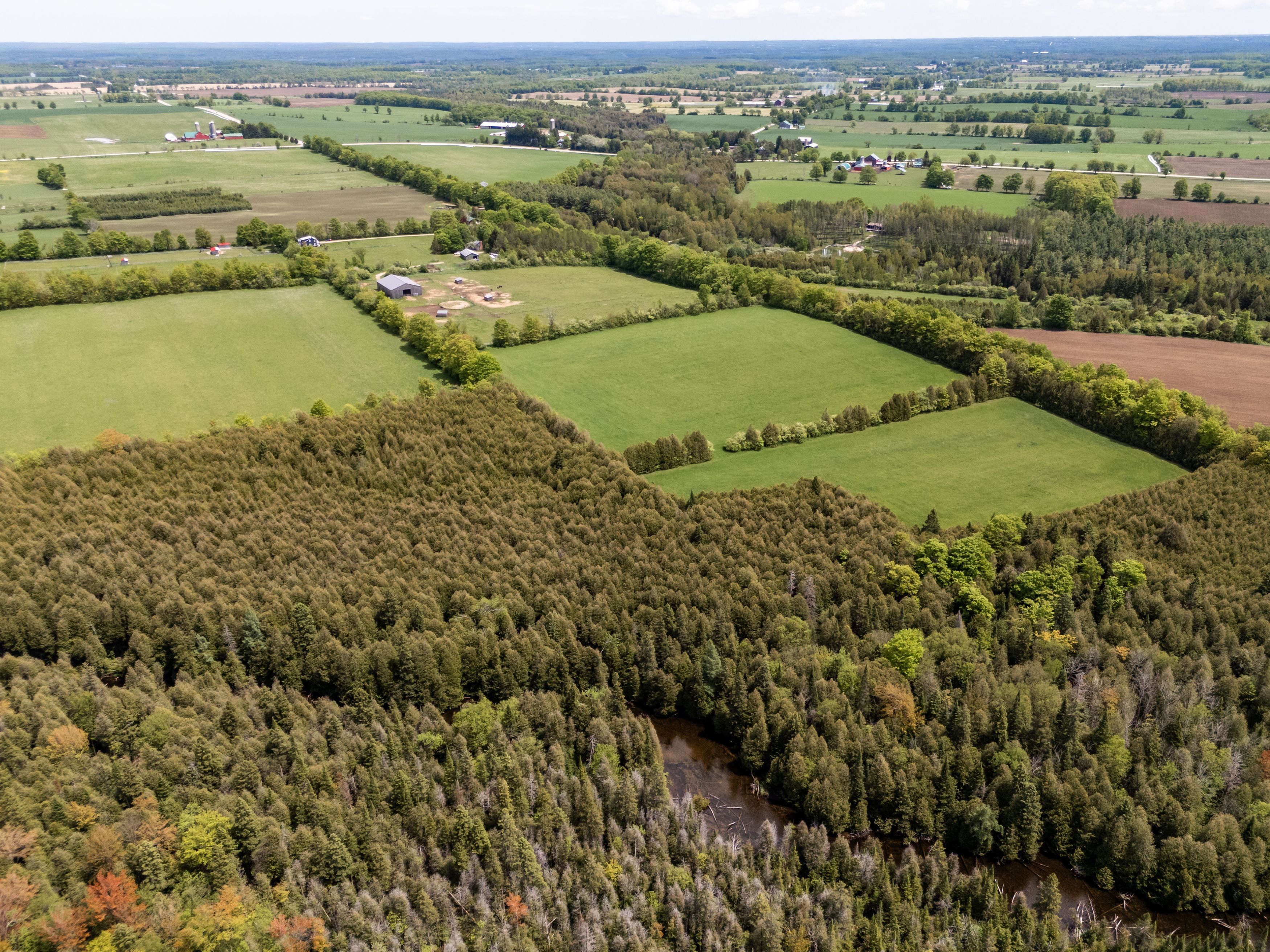 Set on 46 acres along the clean, cool waters of the rocky saugeen river, this log farmhouse is one of the last remaining century farms in grey highlands . Originally built in the 1880s and expanded in the 1970s, it combines historic features with modern upgrades. The main level of the home features an updated kitchen with a new garden door that brings in natural light. Upstairs, the primary bedroom offers wide plank floors, a walk-in closet, a 2-piece bathroom and could be converted back into 2 bedrooms. The home also includes a den that could be used as an office or guest room, and a modern laundry area with a new washer and dryer. Updates include a steel roof (2021), a 200-amp electrical panel, a generator plug, and a 2022heat/cooling pump with a backup electric furnace. A wood insert stove adds extra heat during the winter. The land includes approximately 25 workable acres currently seeded in regenerative hay crops. Approximately 15 acres are securely fenced and ready for hobby farming or equestrian pursuits. There are five paddocks with two electric outlets and one no-freeze hydrant for easy winter care. Original fence rows and walking trails lead to the rocky saugeen river. Outbuildings include a 60' x 88' board and batten barn built in 2020 with hydro and water, and a 30' x 50' detached garage/shop, also serviced with hydro and water. Additional structures include a chicken coop, woodshed, and a small animal shelter cat condo. Located just minutes from markdale and a 35-minute drive to owen sound, this home places you in the heart of four-season recreation with skiing, hiking, fishing, paddling, snowmobiling, and more surrounded by the natural beauty of waterfalls, trails, and rivers.