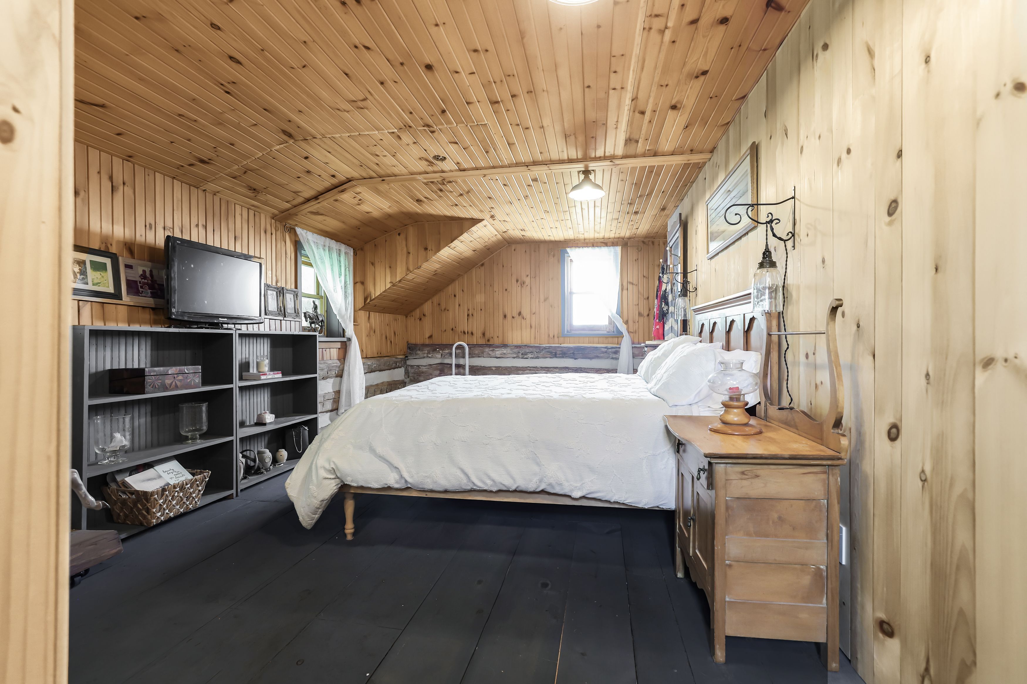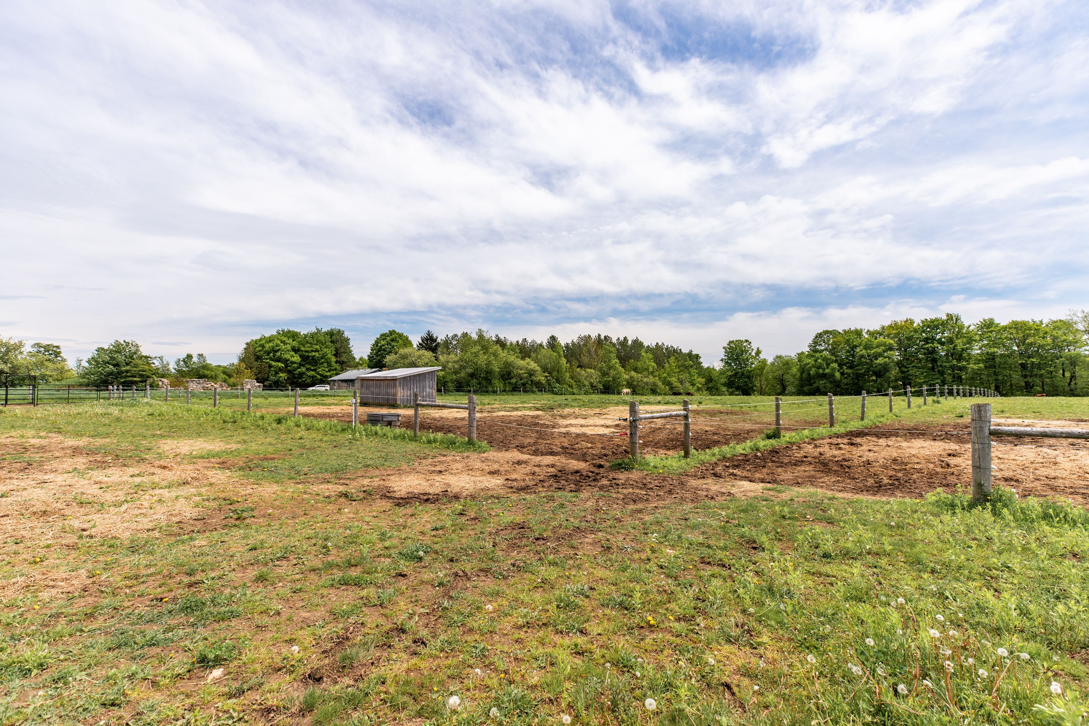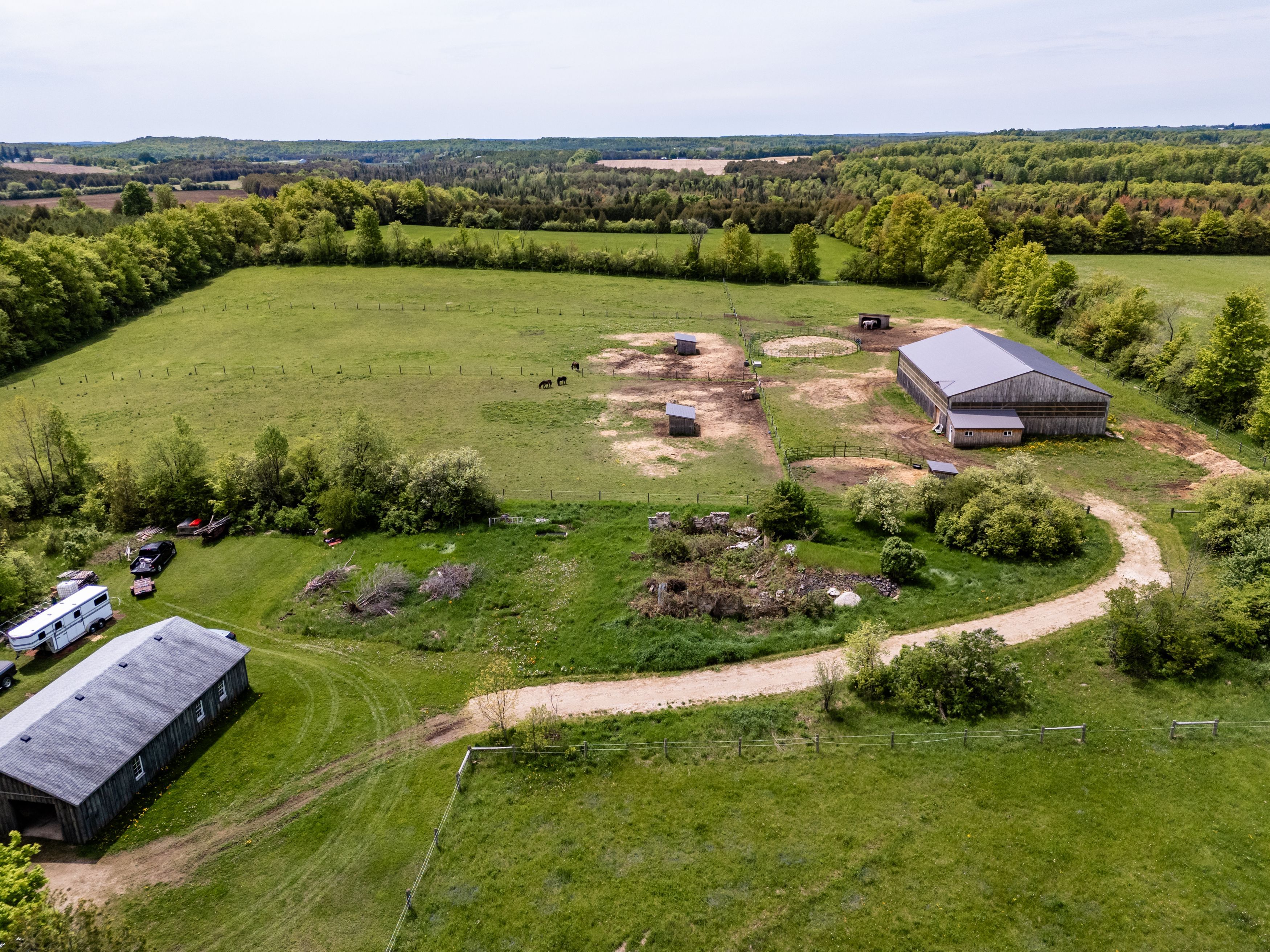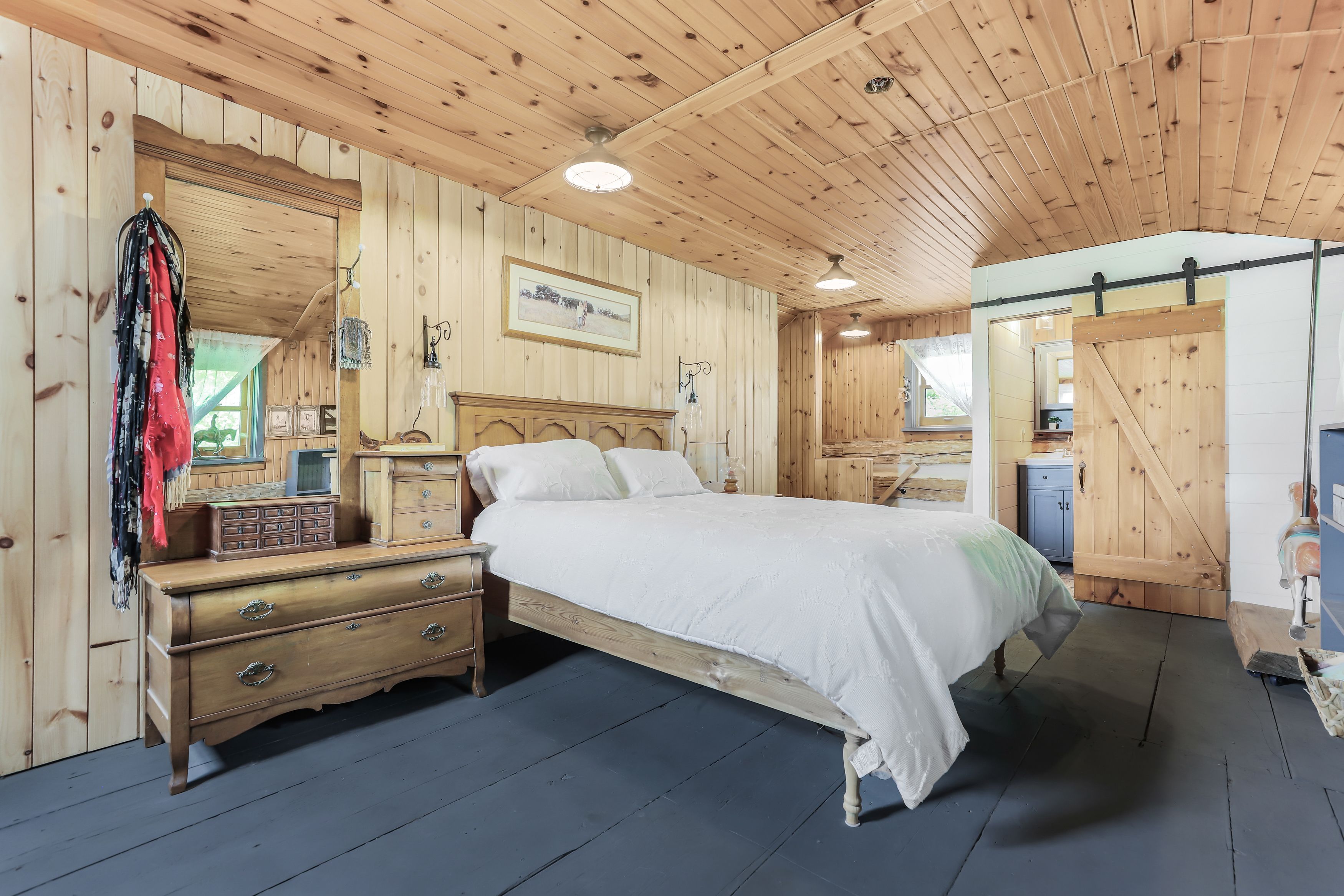 Set on 46 acres along the clean, cool waters of the rocky saugeen river, this log farmhouse is one of the last remaining century farms in grey highlands . Originally built in the 1880s and expanded in the 1970s, it combines historic features with modern upgrades. The main level of the home features an updated kitchen with a new garden door that brings in natural light. Upstairs, the primary bedroom offers wide plank floors, a walk-in closet, a 2-piece bathroom and could be converted back into 2 bedrooms. The home also includes a den that could be used as an office or guest room, and a modern laundry area with a new washer and dryer. Updates include a steel roof (2021), a 200-amp electrical panel, a generator plug, and a 2022heat/cooling pump with a backup electric furnace. A wood insert stove adds extra heat during the winter. The land includes approximately 25 workable acres currently seeded in regenerative hay crops. Approximately 15 acres are securely fenced and ready for hobby farming or equestrian pursuits. There are five paddocks with two electric outlets and one no-freeze hydrant for easy winter care. Original fence rows and walking trails lead to the rocky saugeen river. Outbuildings include a 60' x 88' board and batten barn built in 2020 with hydro and water, and a 30' x 50' detached garage/shop, also serviced with hydro and water. Additional structures include a chicken coop, woodshed, and a small animal shelter cat condo. Located just minutes from markdale and a 35-minute drive to owen sound, this home places you in the heart of four-season recreation with skiing, hiking, fishing, paddling, snowmobiling, and more surrounded by the natural beauty of waterfalls, trails, and rivers.
