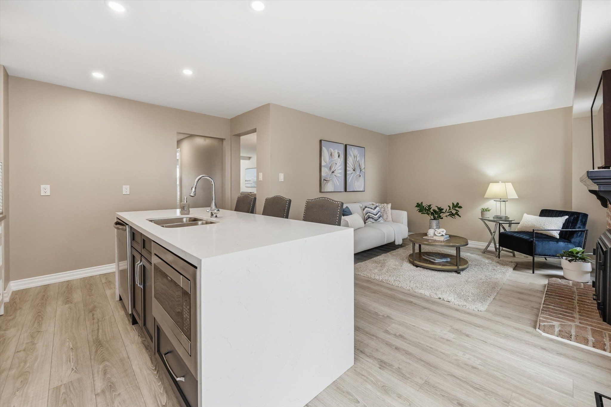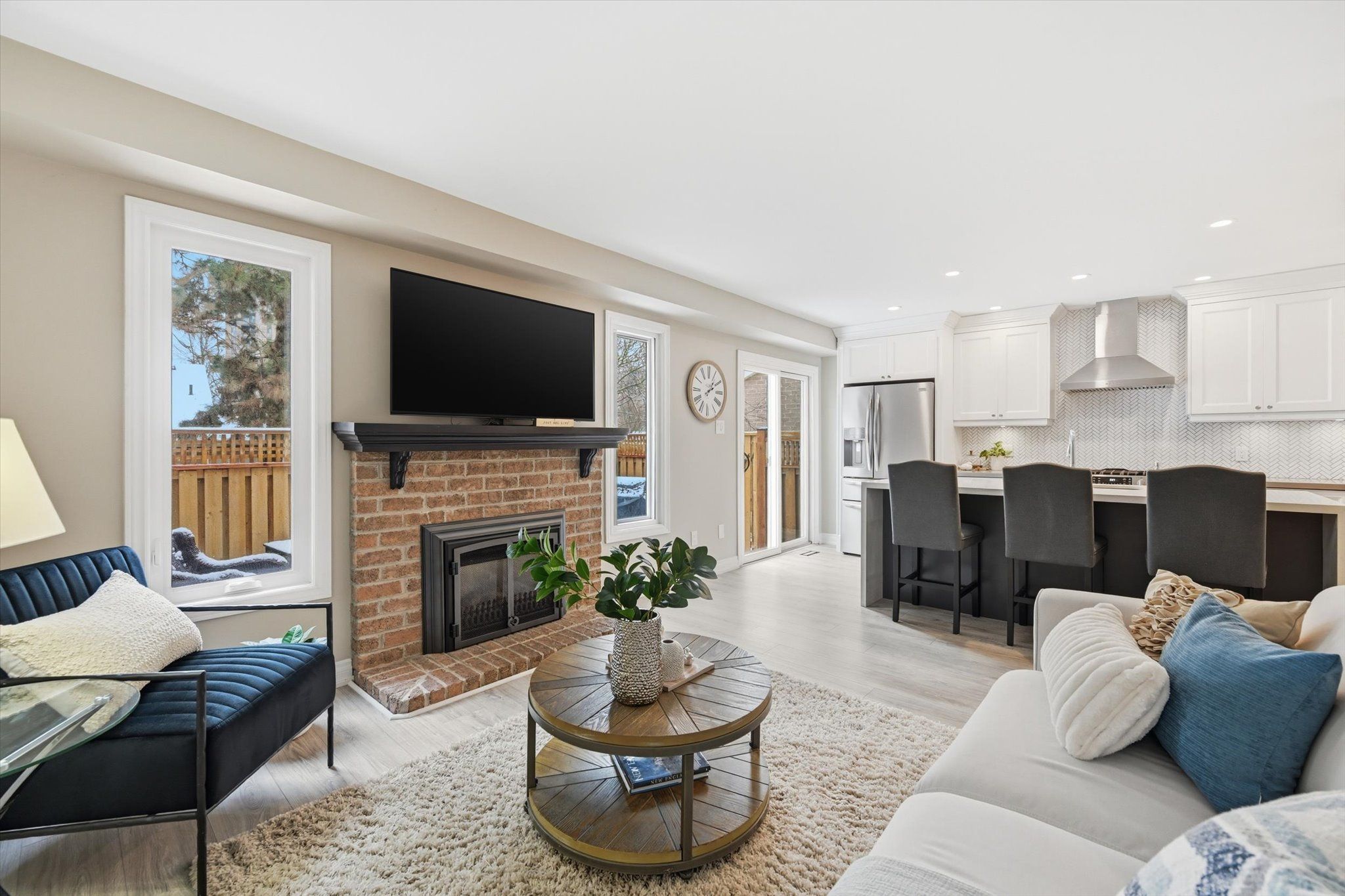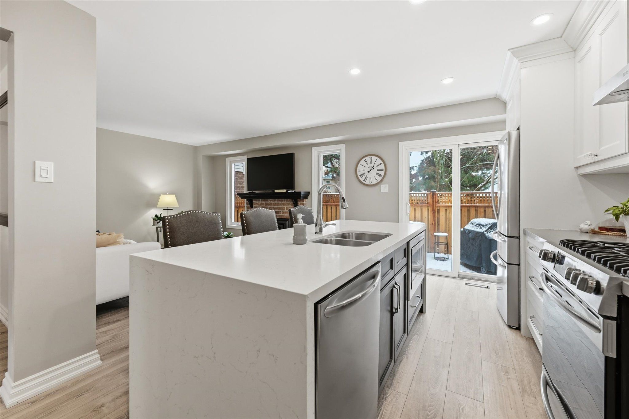 Gorgeous updated town home in the sought after south east burlington steps to the lake & all amenities. A small enclave of owners in a private setting with mature trees, gardens, parks and tree lined neighbourhoods for walking and enjoying life. The home has recently been updated with new flooring throughout, a stunning open concept chefs kitchen with large quartz island, backsplash, custom cabinetry, breakfast bar, pot lighting open to a cozy family room with natural gas fireplace, bright natural light and a walk-out to your private sun deck for outdoor dining/bbq area. Separate dining area with plenty of space for large gatherings open to a spacious living room for entertaining. The 2nd floor features two large primary bedrooms with spacious ensuites, large windows/natural light/skylights. The lower level has been fully finished with 3 piece bathroom, comfortable den and office space. This house is perfect for families, down sizers, retirees and those looking to lock up and go. Move in and enjoy. New a/c & furnace. Hoa includes snow removal to the door, salting, all landscaping. Close to go train, highway access, lake ontario, grocery, restaurants and banking. Move in ready.