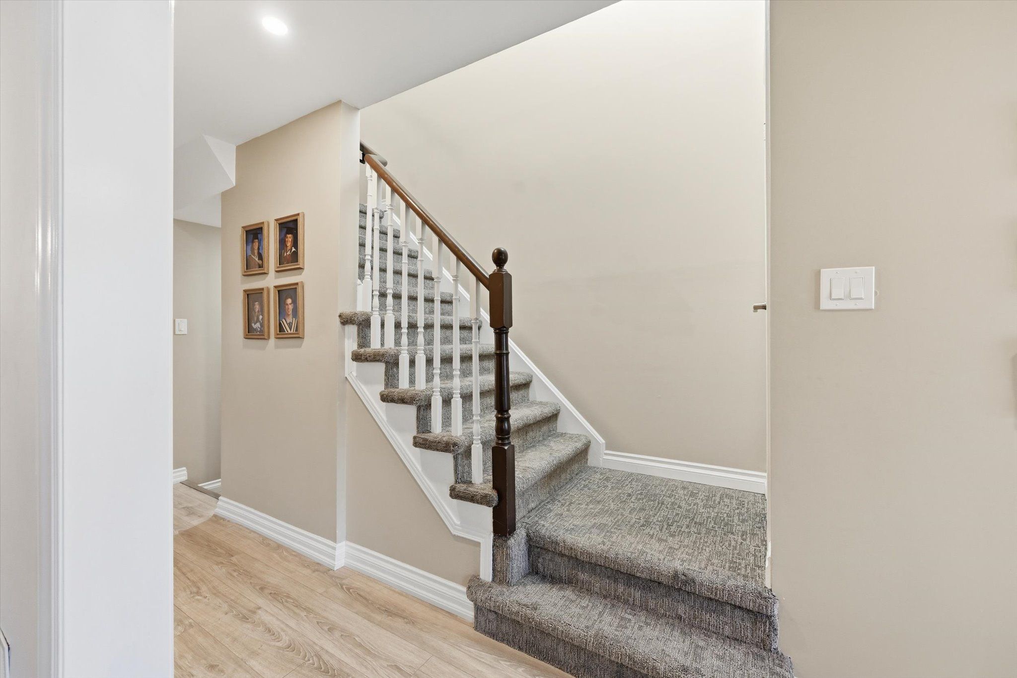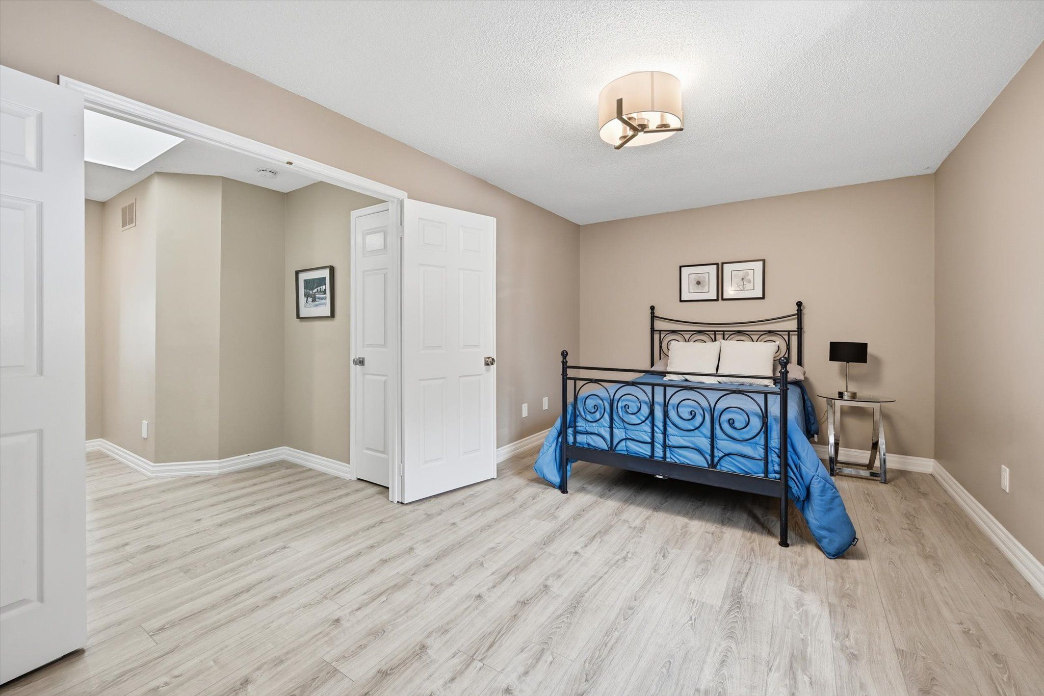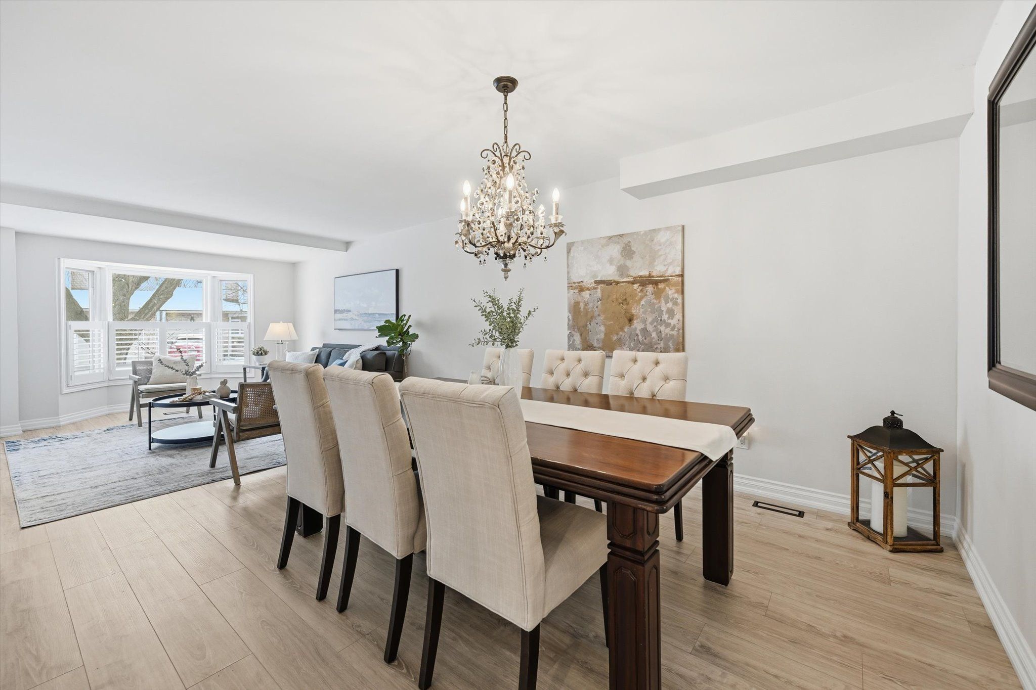 Gorgeous updated town home in the sought after south east burlington steps to the lake & all amenities. A small enclave of owners in a private setting with mature trees, gardens, parks and tree lined neighbourhoods for walking and enjoying life. The home has recently been updated with new flooring throughout, a stunning open concept chefs kitchen with large quartz island, backsplash, custom cabinetry, breakfast bar, pot lighting open to a cozy family room with natural gas fireplace, bright natural light and a walk-out to your private sun deck for outdoor dining/bbq area. Separate dining area with plenty of space for large gatherings open to a spacious living room for entertaining. The 2nd floor features two large primary bedrooms with spacious ensuites, large windows/natural light/skylights. The lower level has been fully finished with 3 piece bathroom, comfortable den and office space. This house is perfect for families, down sizers, retirees and those looking to lock up and go. Move in and enjoy. New a/c & furnace. Hoa includes snow removal to the door, salting, all landscaping. Close to go train, highway access, lake ontario, grocery, restaurants and banking. Move in ready.