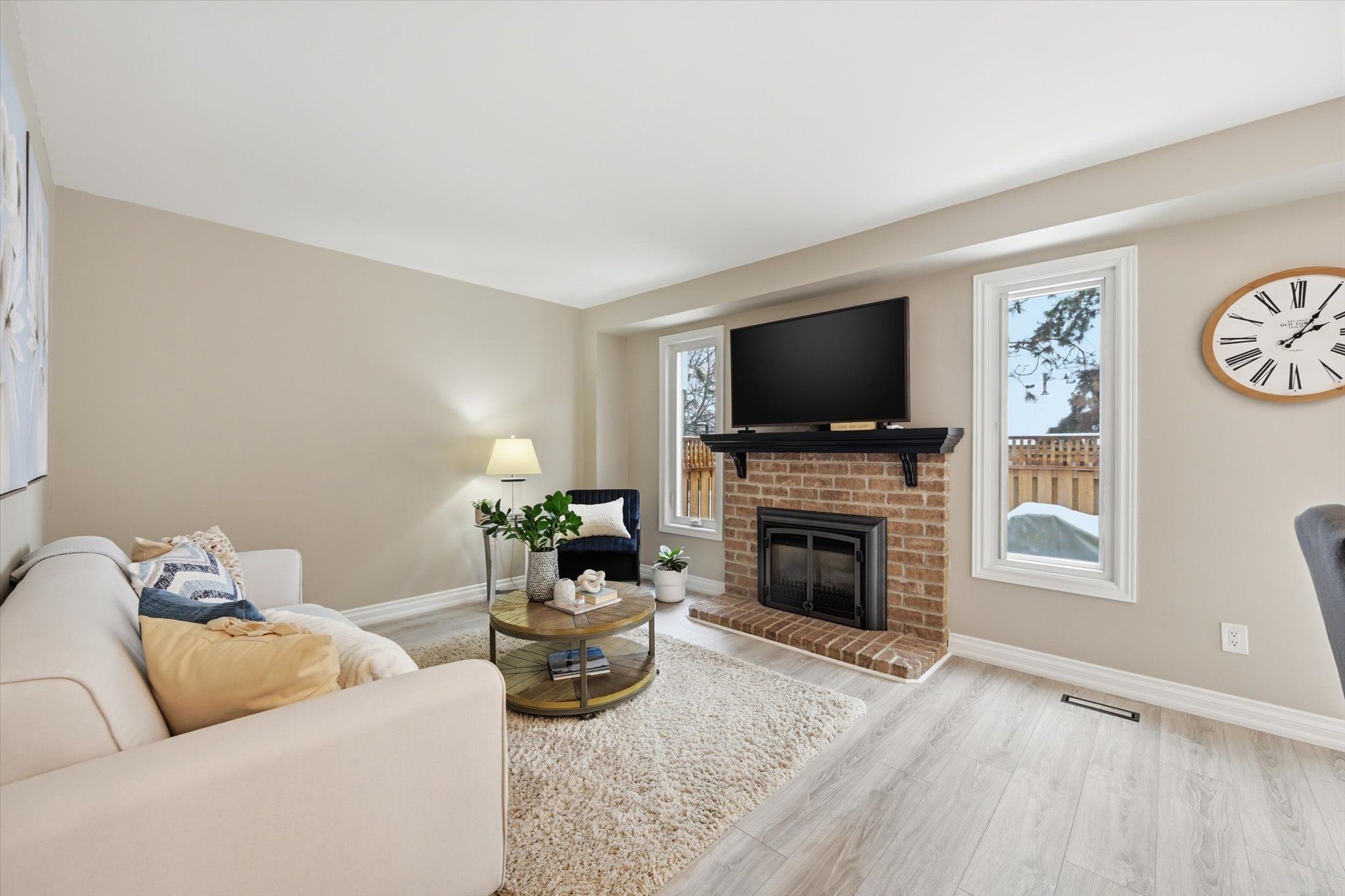 • Cozy family room with a natural gas fireplace and bright natural light.