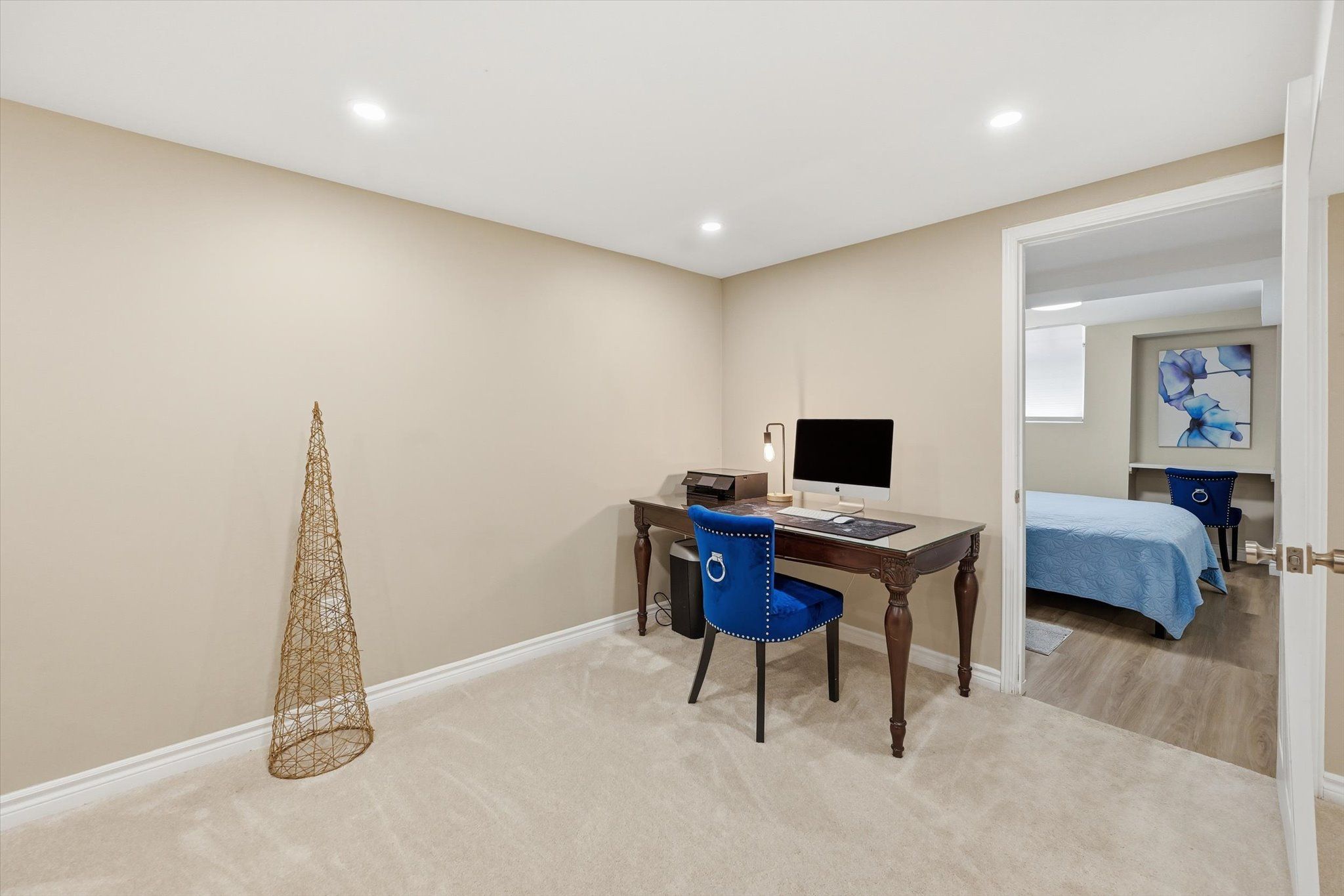 • Finished lower level with a den, office space, and new A/C and furnace.