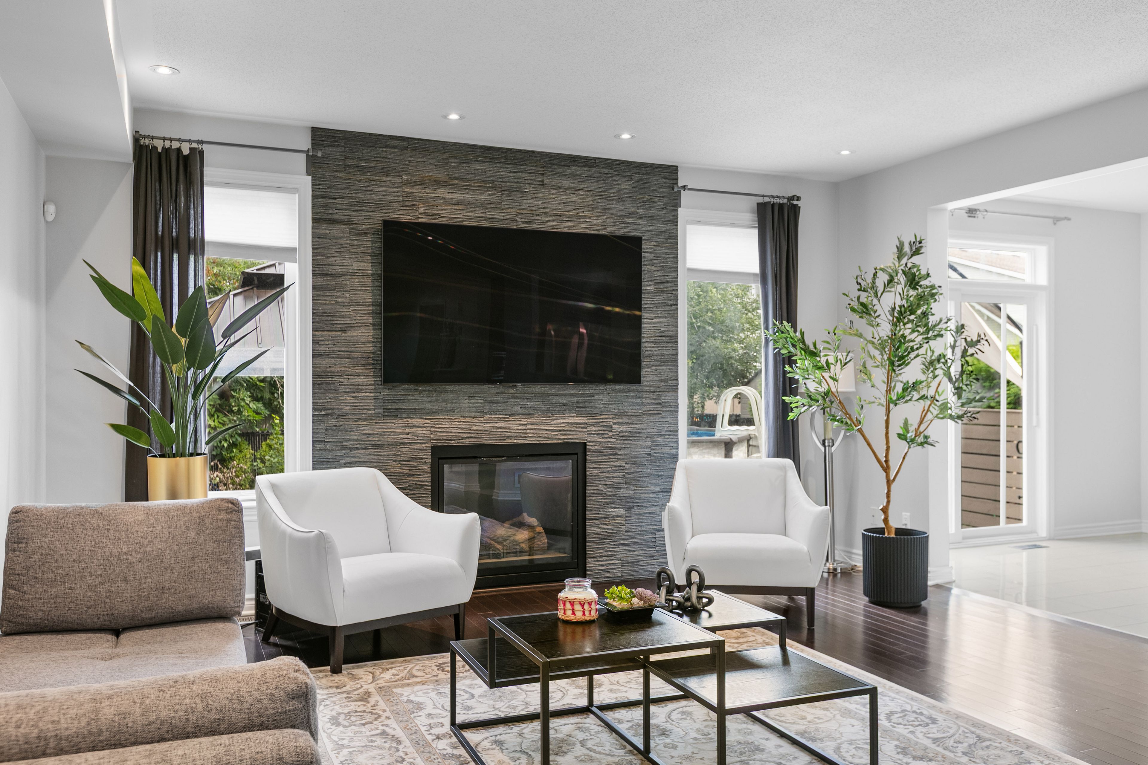 Welcome to this absolutely stunning 4-bedroom, 4-bath home in a family-friendly neighbourhood close to parks, schools, and more! Featuring 9ft ceilings, hardwood, ceramic tile, and warm, inviting tones throughout. The main floor includes a quiet den perfect for a home office and a formal dining room with vaulted ceilings adjacent to the gourmet kitchen with rich cabinetry, granite countertops, and a spacious eat-in area overlooking the family room with gas fireplace. Enjoy the private, fully fenced backyard with a heated saltwater above-ground pool and two-tiered deck ideal for entertaining. Upstairs offers hardwood floors, a luxurious primary retreat with a large walk-in closet and spa-like 4-piece ensuite, plus 3 additional bedrooms, a full bath, and convenient laundry. The finished basement includes a large rec room with gas fireplace, full bath, gym area, and ample storage.