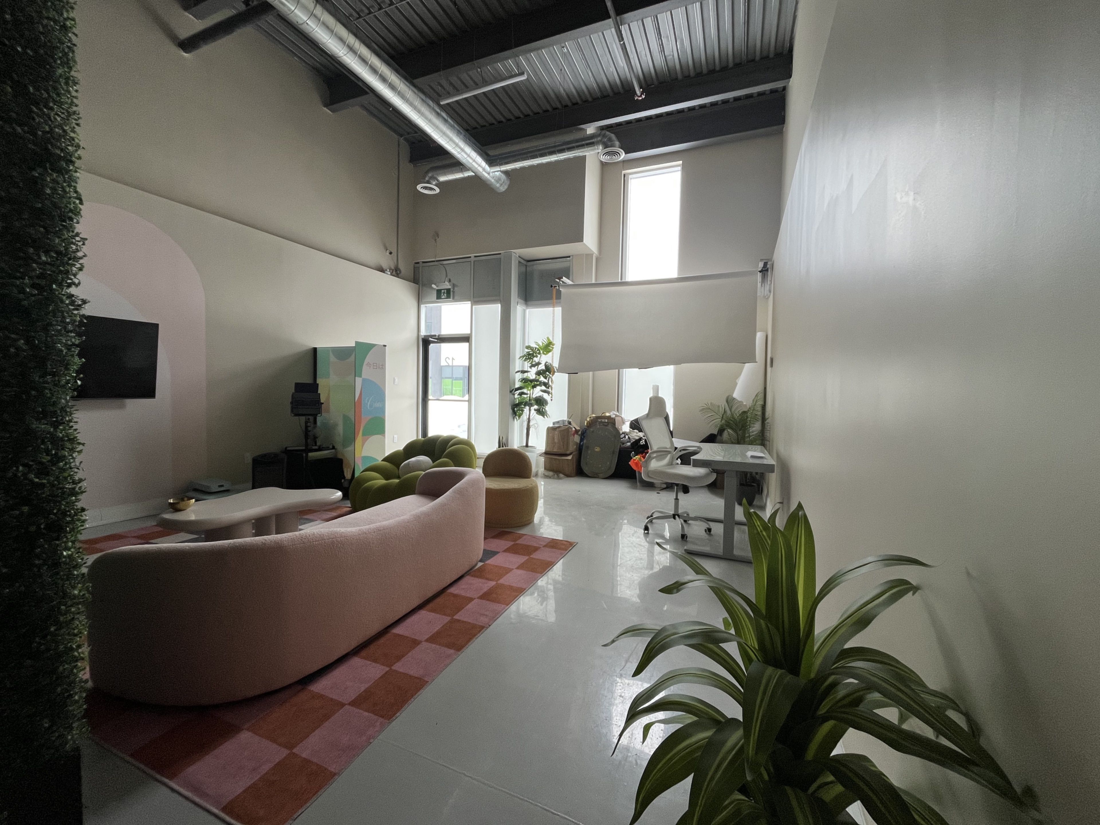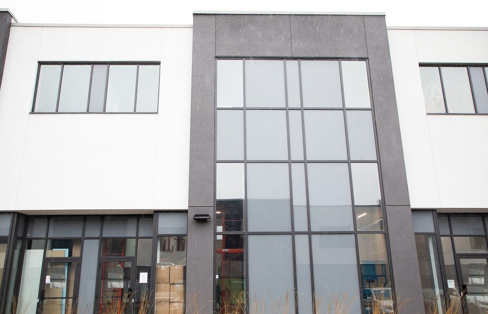 • Modern industrial unit with 27 ft ceiling height for various uses.