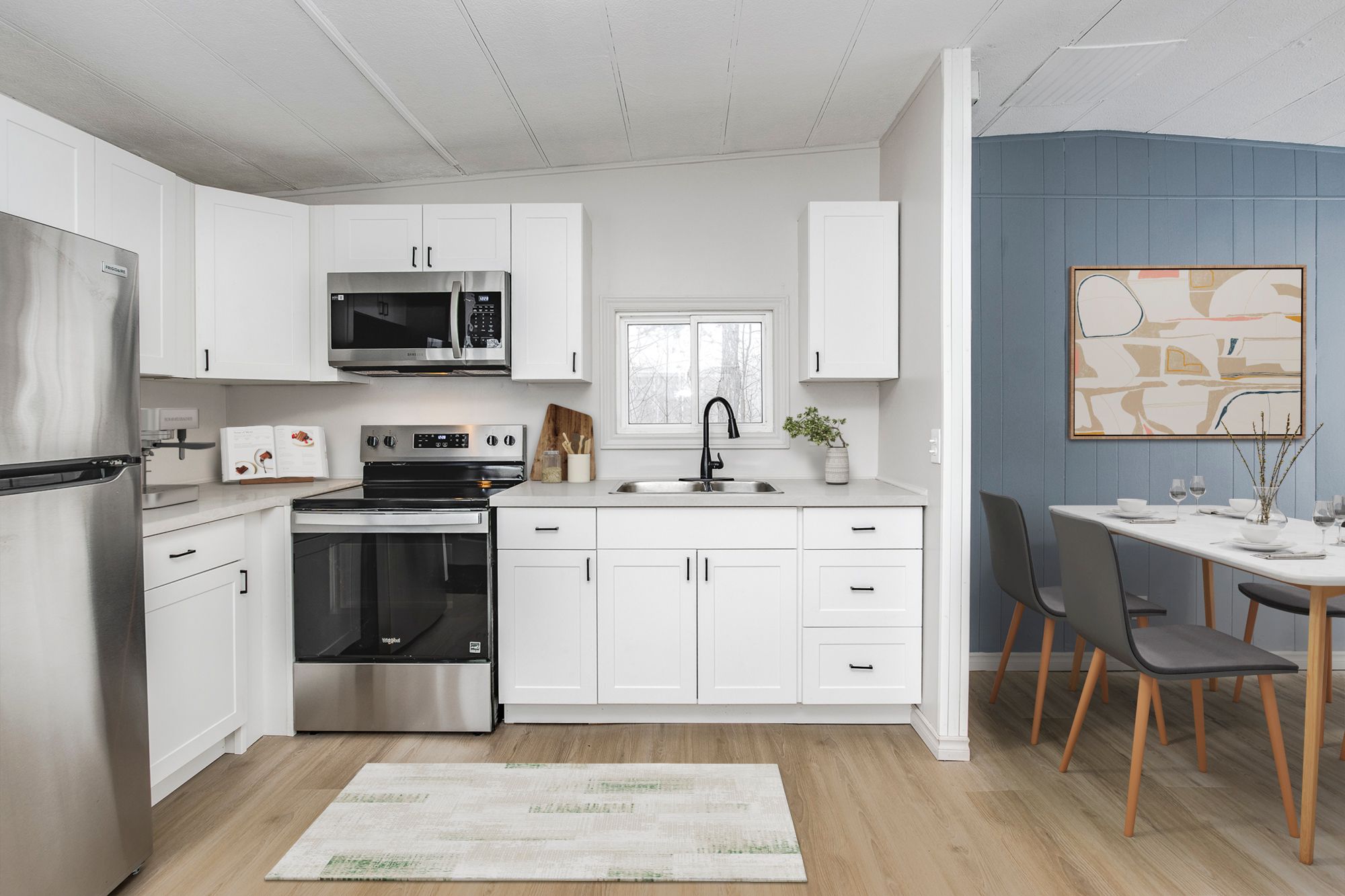 Your little slice of country in a community setting only 10 minutes from shopping and restaurants in midland! Enjoy this updated, move-in ready home with freestanding fireplace and ductless heating and air conditioning system. The kitchen and bathroom have been remodeled, and the main spaces are open-concept for maximum flexibility to suit your decor. You also have many windows to let the sunshine in! Improvements include: cabinets, appliances, waterproof vinyl flooring, plumbing, electrical (2025-2026); heat pump (2023); exterior insulation board, siding & skirting, windows, doors, deck, spray foam insulation under floor (2018); water pipe wrap and heating cables installed (2016). Property taxes are included in land lease. This is the perfect home for active individuals or couples, located in a quieter, adult-oriented community close to trails, golf courses, cultural centres, the curling club, library, rec centre, the ymca, hospital, marinas, the waterfront and your downtown amenities which are all a short drive away. Commuting distance to friends and family in barrie, collingwood and toronto. Who wants to live in a squishy little apartment when you can have your very own low-maintenance home? Overall square footage based on exterior dimensions. Some photos are virtually staged. Call today to arrange your tour.