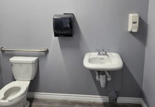Bathroom under construction - brand new, modern pre-cast industrial 1,995sqft unit with 27-foot clear height, situated in a prestigious gta business park. Features include a loading dock and an upgraded mezzanine with epoxy flooring. Conveniently located just minutes away from highways 401 and 427, with public transit at the doorstep. Surrounded by various amenities and close to pearson airport.
