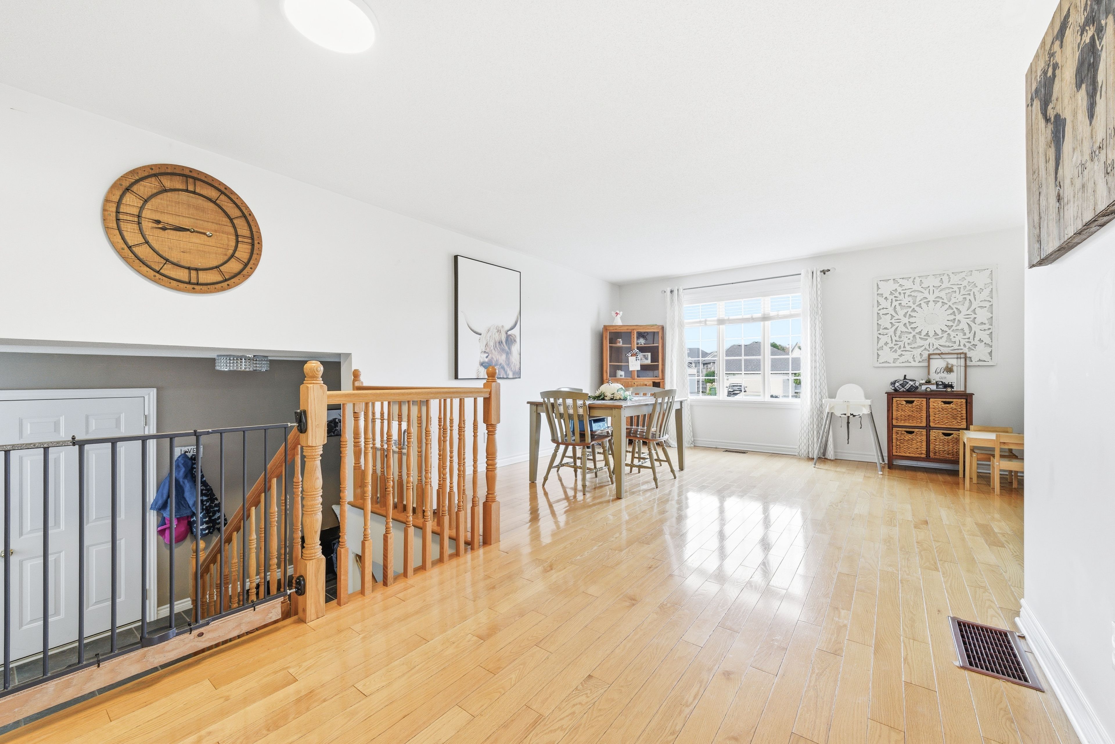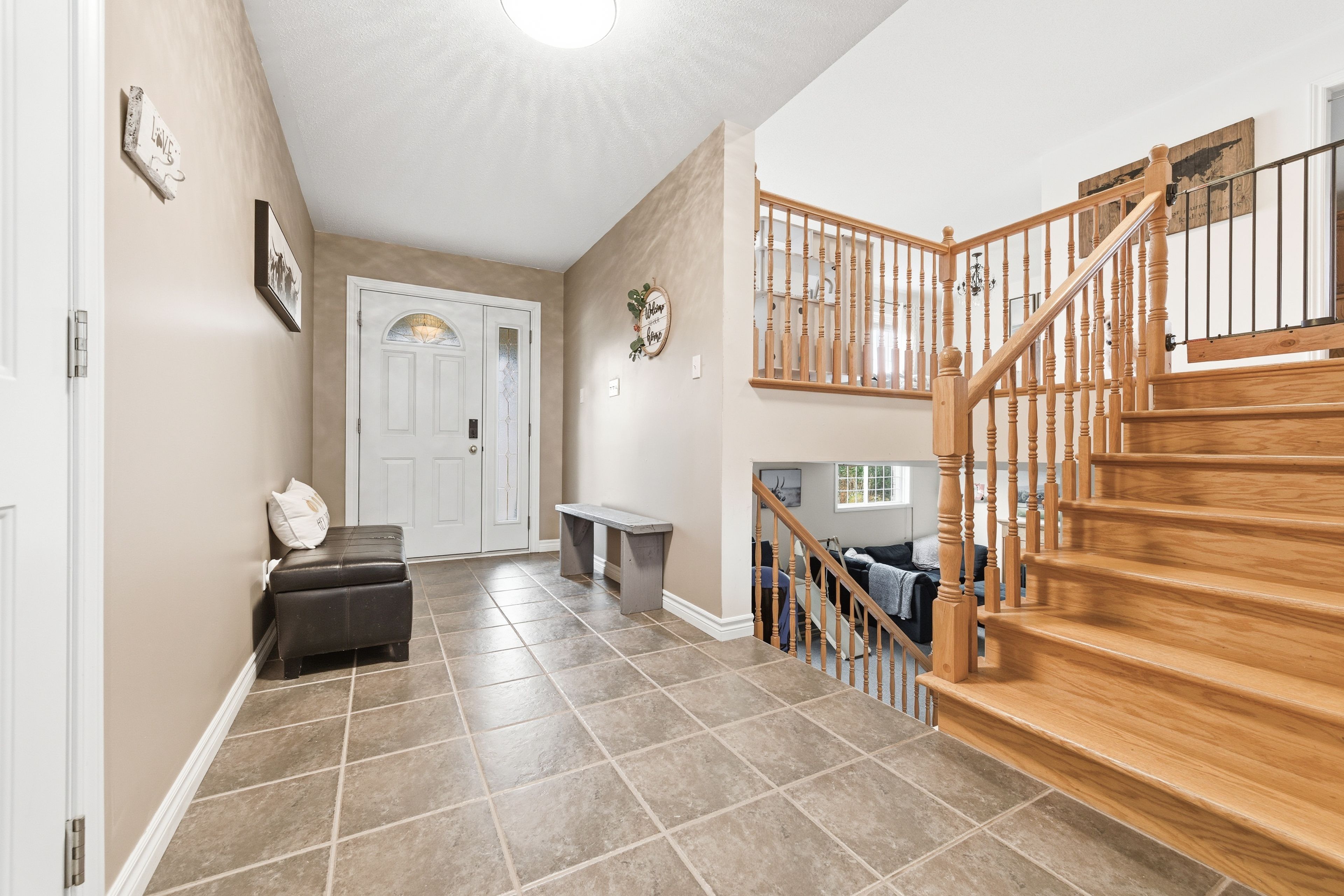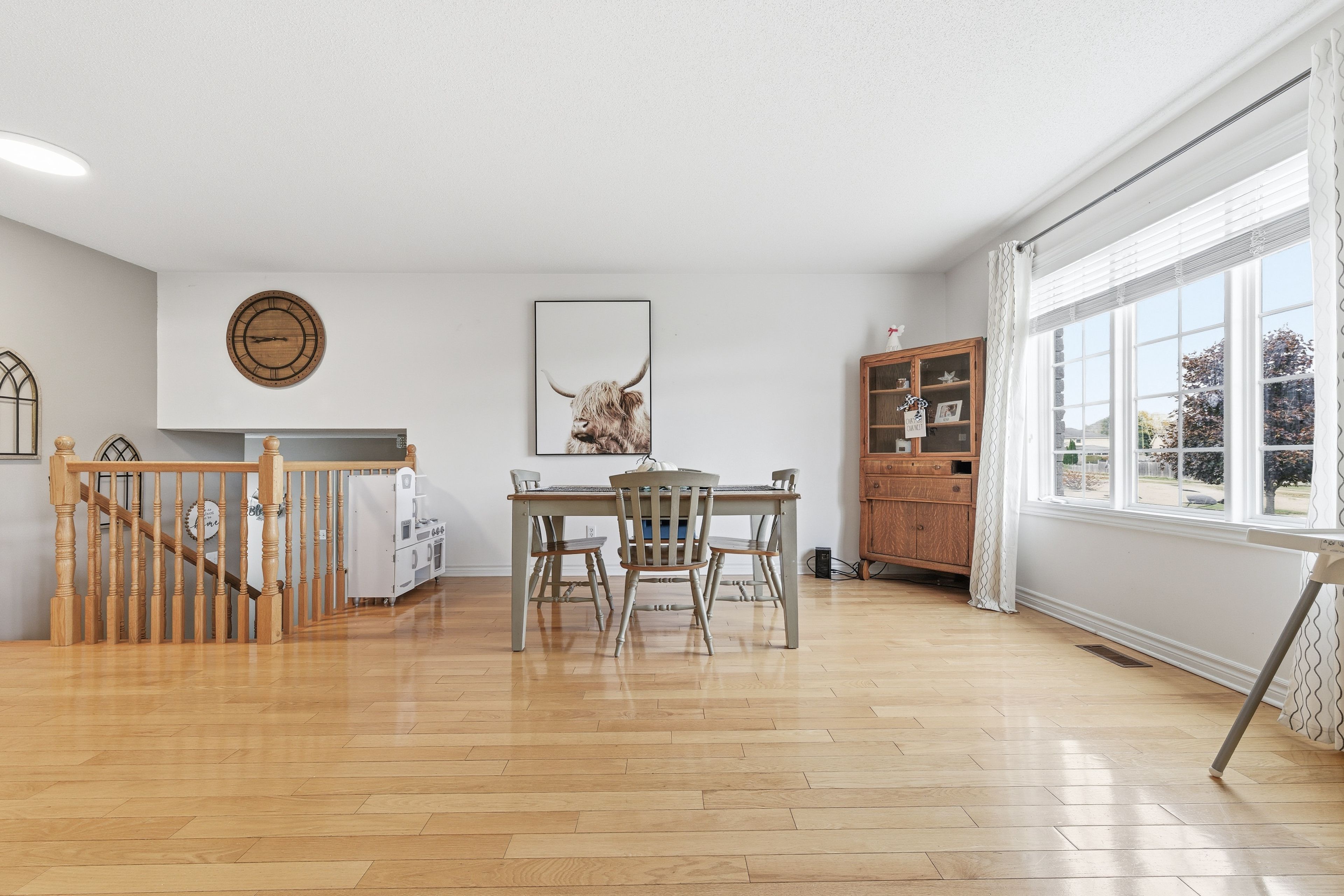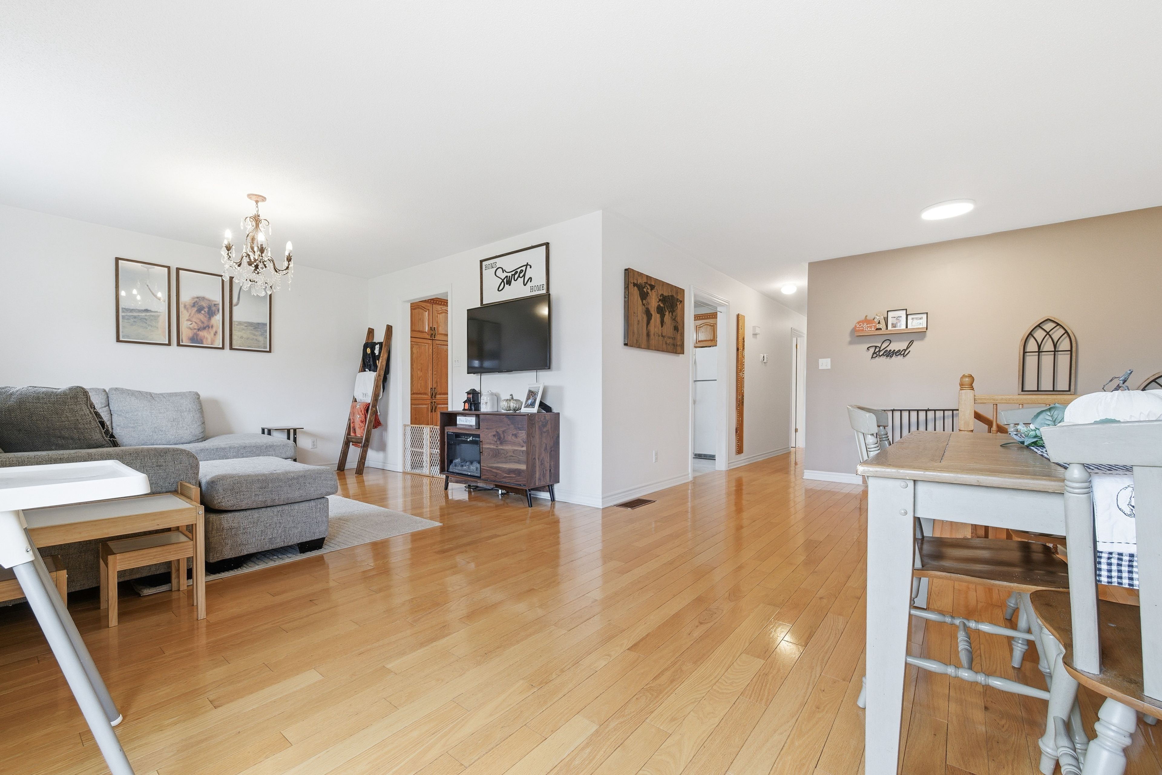 Welcome to this bright and spacious custom-built side split home, offering approximately 1,450 sq. Ft. On each level. Perfectly situated in one of pembroke's most desirable east-end neighbourhoods, this beautiful property sits on a generously sized lot, set well back from the road for added privacy. Step inside to a large, inviting foyer with ceramic tile flooring. The main level showcases timeless hardwood floors throughout the open-concept living and dining areas, along with a spacious kitchen featuring solid oak cabinetry and a large island - ideal for family gatherings and entertaining. Three bedrooms, including a sizeable primary bedroom, and a large 4-piece bathroom round out the main level. The lower level boasts a massive rec room complete with a cozy natural gas fireplace, abundant storage, a huge fourth bedroom, a full bathroom with a relaxing jacuzzi tub, and a laundry room. The attached double garage provides ample space for two vehicles, lawn equipment, and includes a convenient rear overhead door for easy backyard access. The backyard is surrounded by mature trees, a large deck, and green space to enjoy. This one-of-a-kind home perfectly combines comfort, space, and privacy in an unbeatable location.