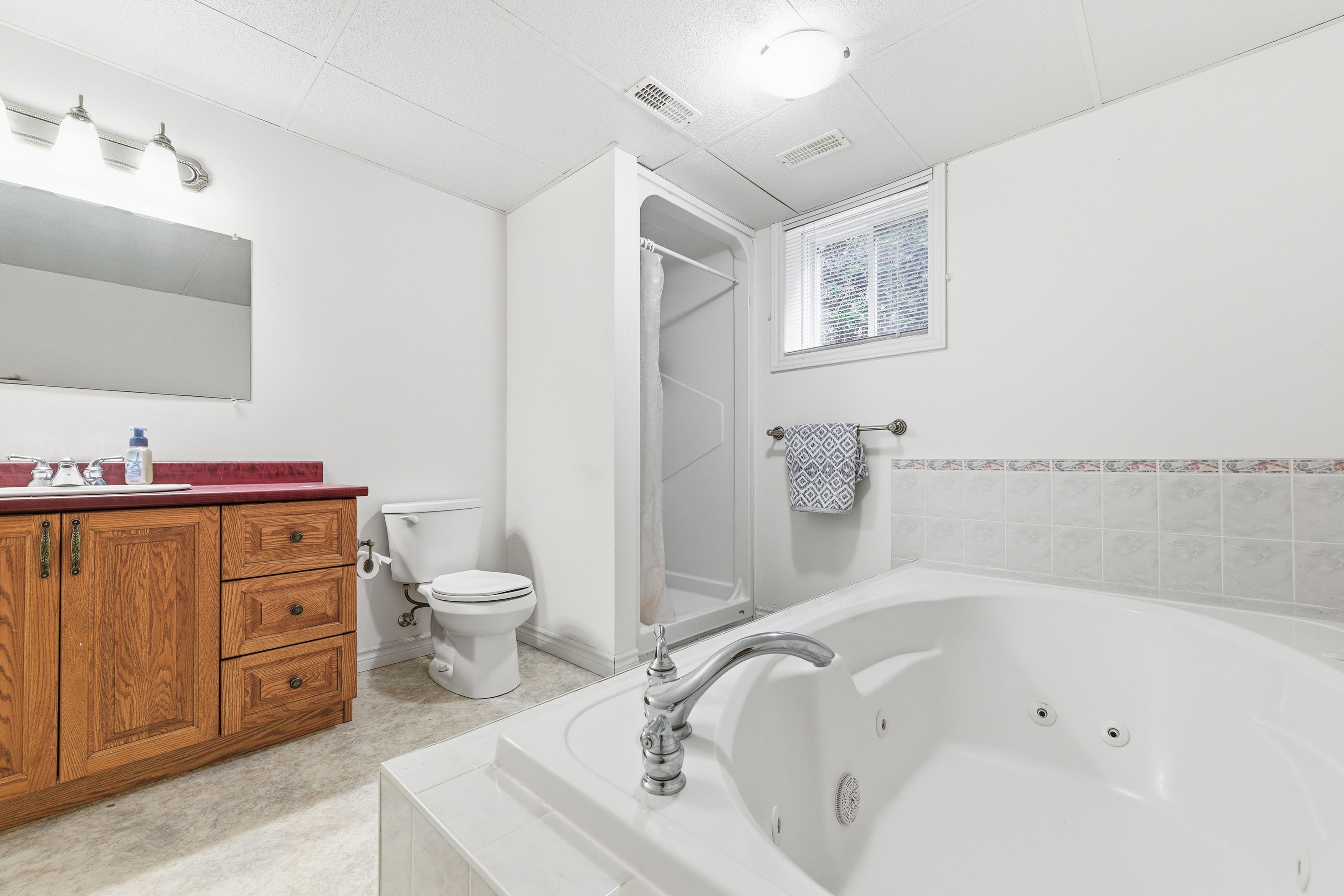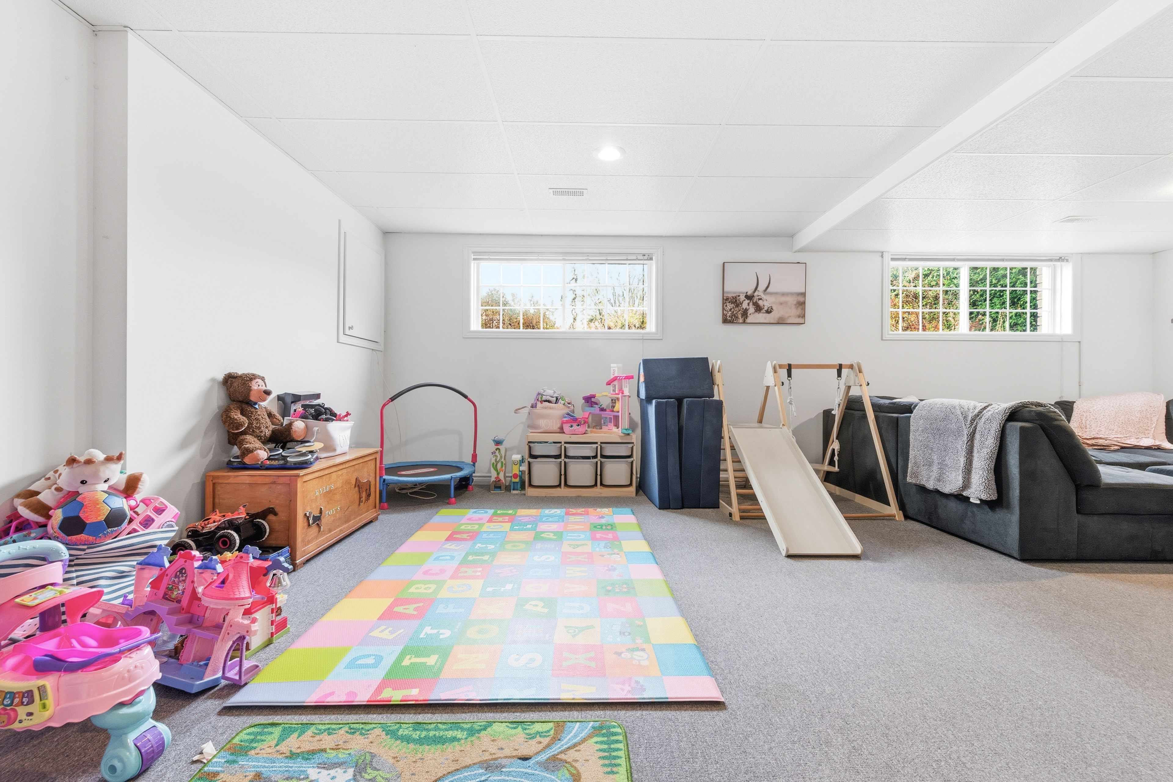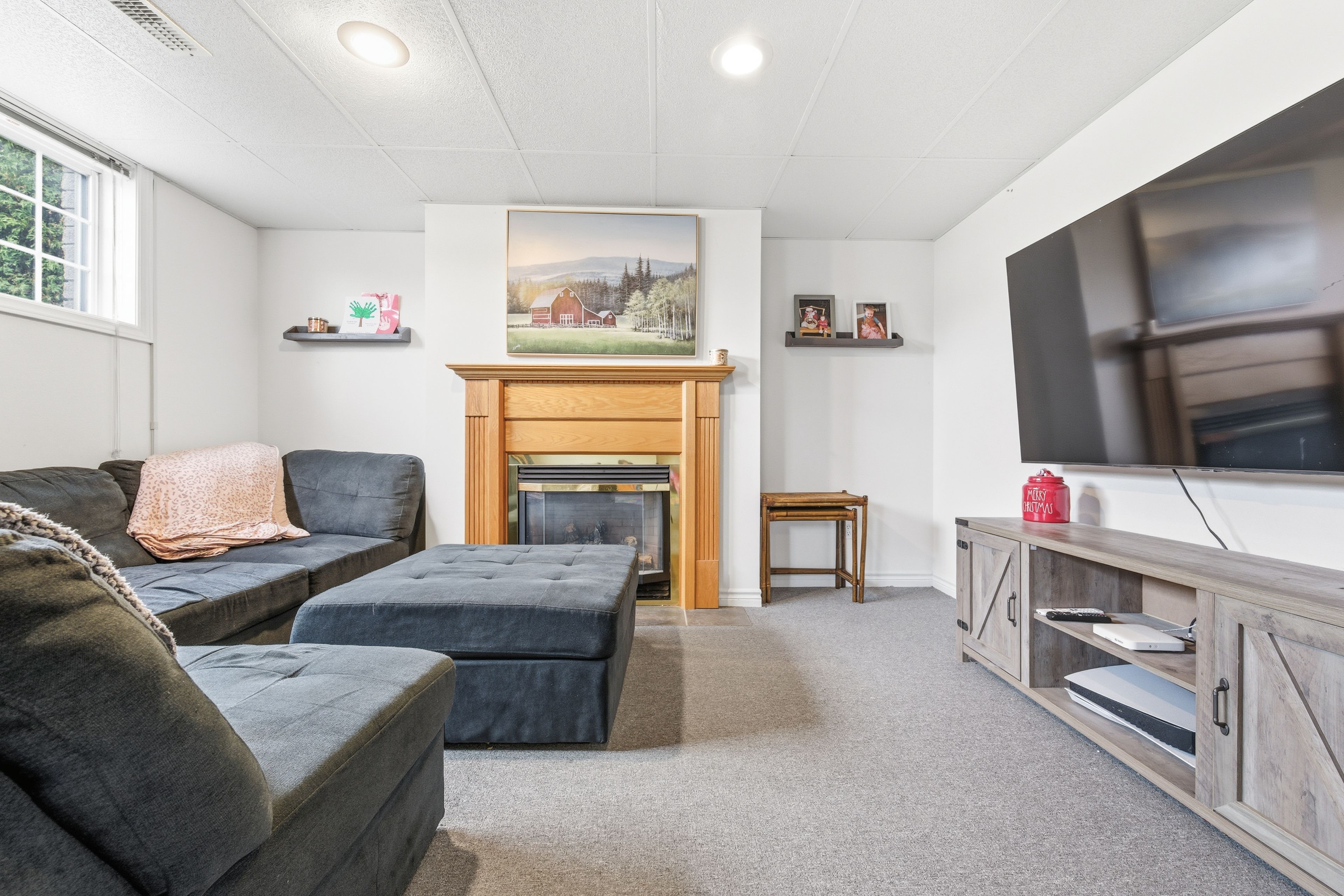 • Massive rec room featuring a cozy natural gas fireplace and jacuzzi tub.