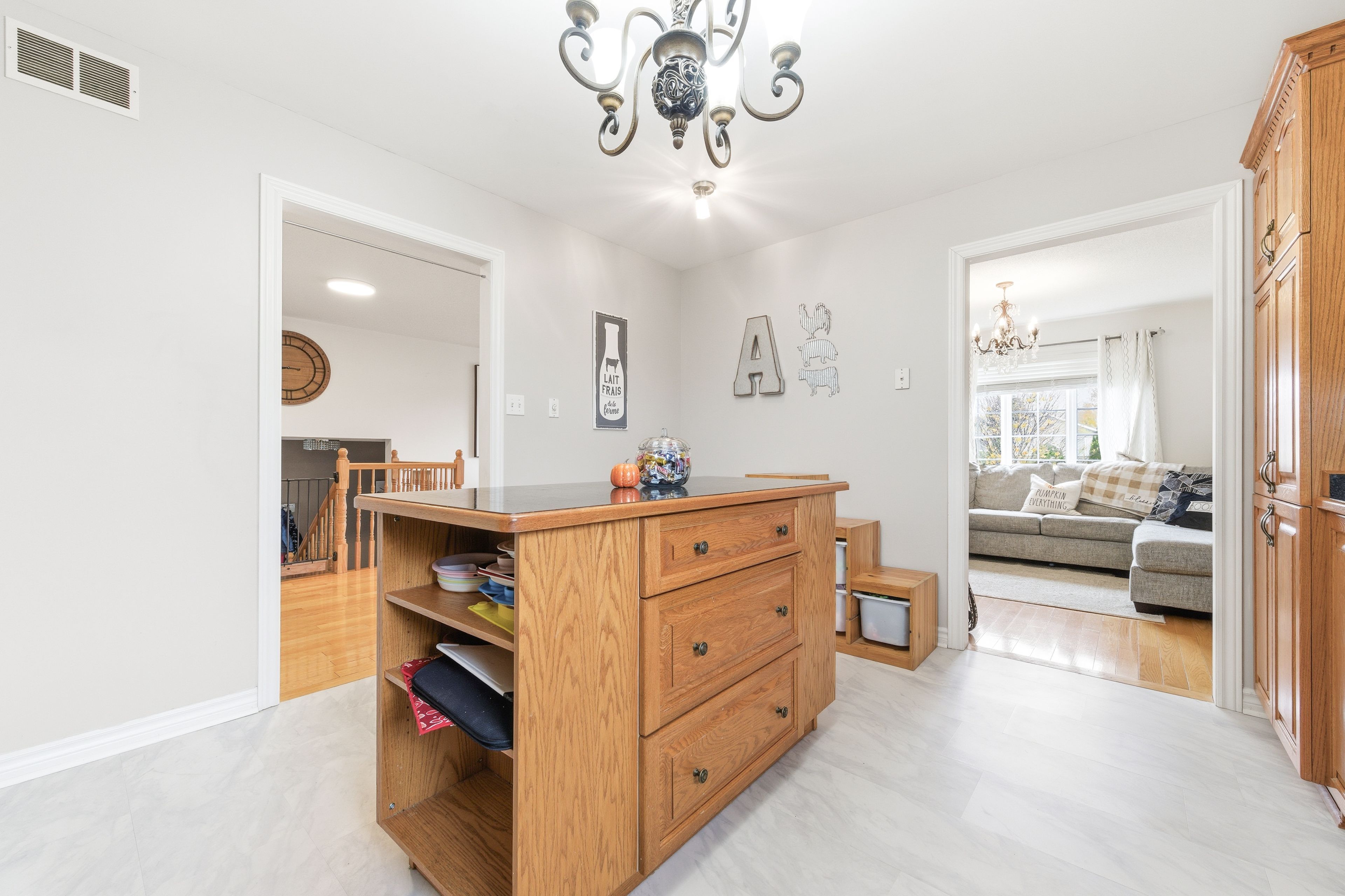 • Large kitchen with solid oak cabinets and ideal island for gatherings.
