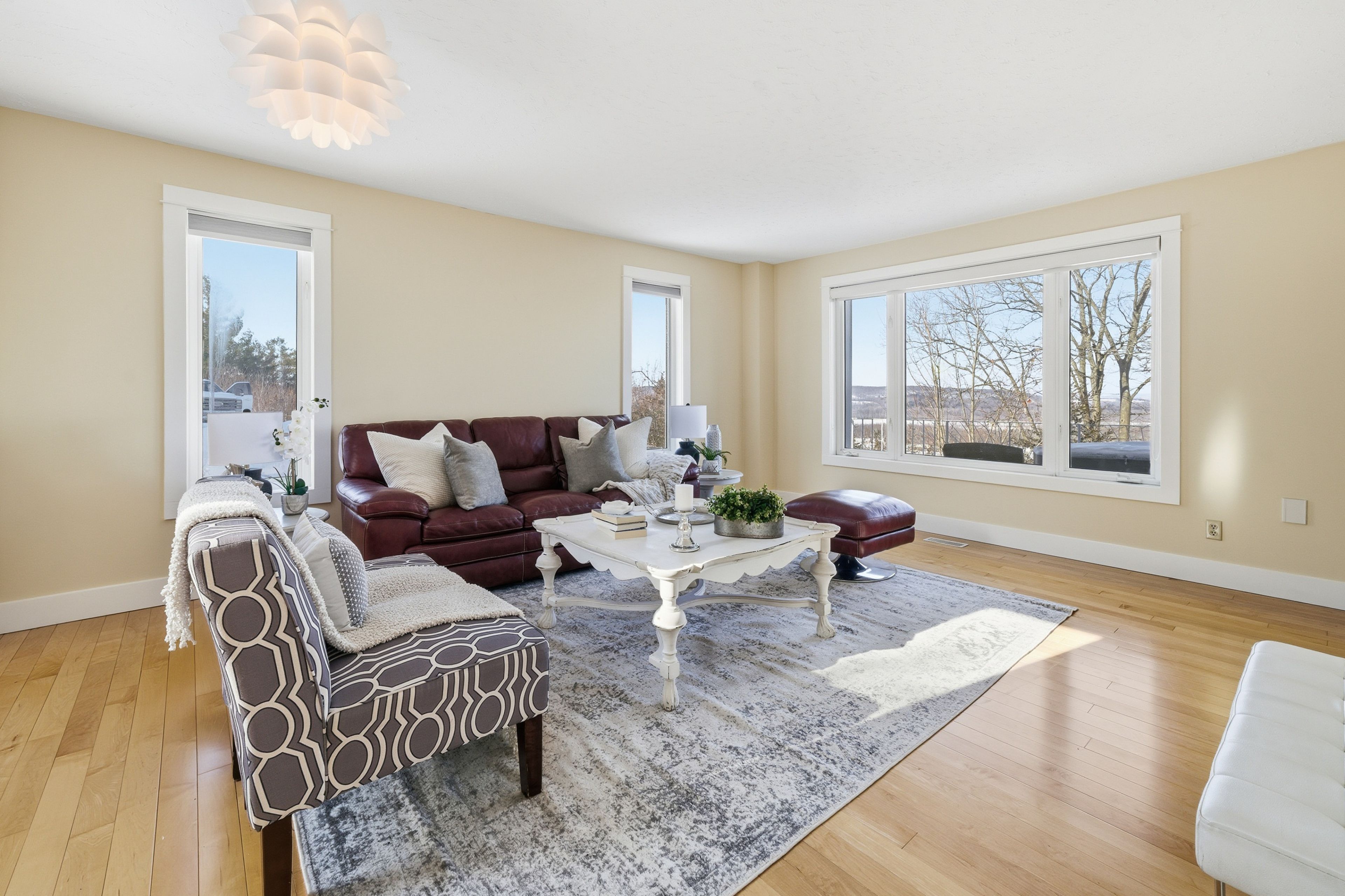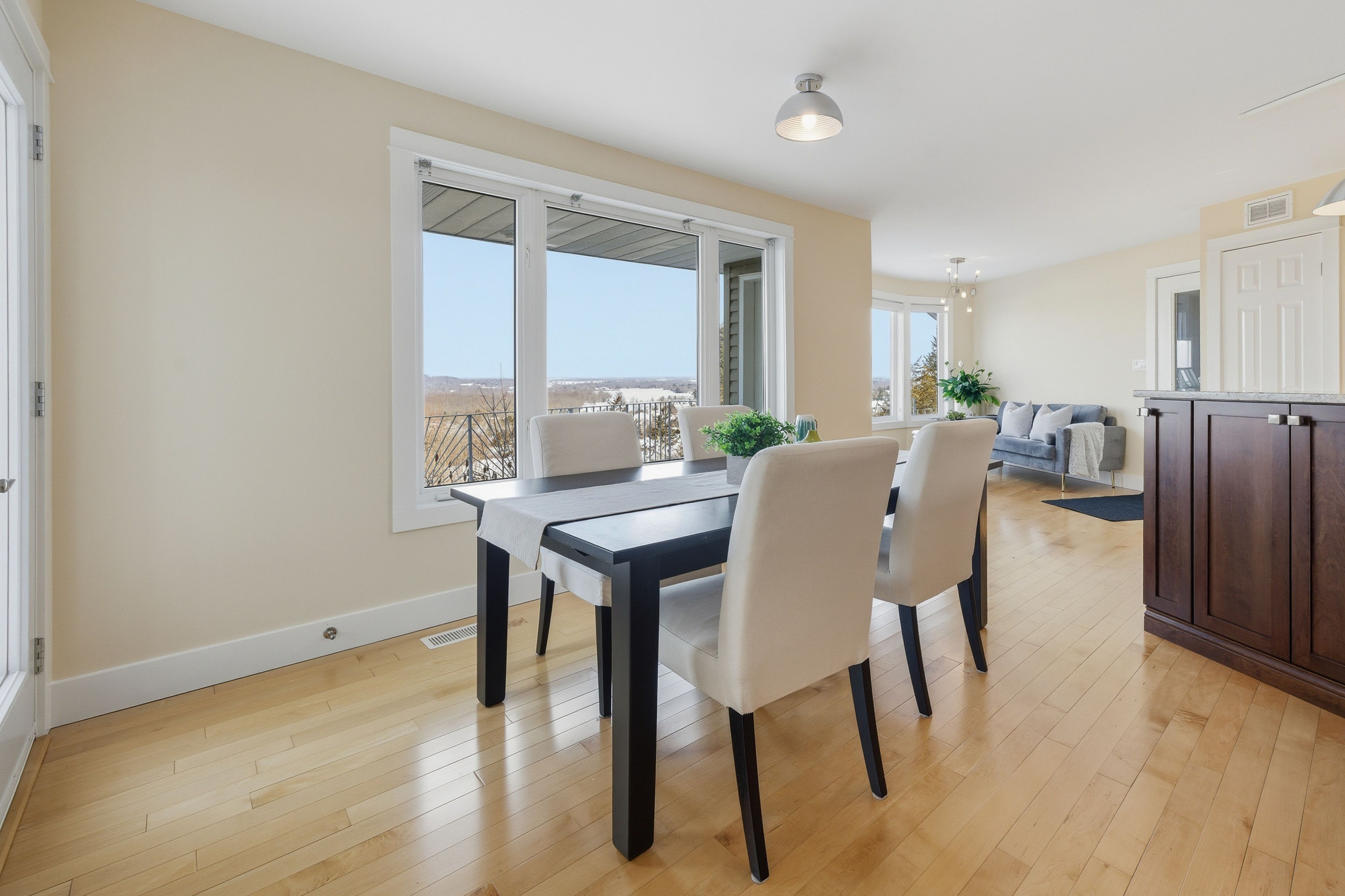 Now this view you deserve to wake up to! Perched on 3. 365 private acres in quinte west, this beautifully updated two-storey offers over 2,100 sq ft above grade plus nearly 1,200 sq ft of fully finished walk-out basement, delivering the perfect blend of country living and modern comfort. The main floor features gleaming hardwood throughout, a bright and spacious living room, a cozy den with propane fireplace, and a sitting room off the kitchen with sweeping countryside views. The heart of this home is a stunning kitchen with storage you won't believe, a massive centre island, granite countertops, built-in butcher block prep area, rich wood cabinetry with glass-front uppers, stainless steel appliances, and a chimney range hood, all bathed in natural light. Upstairs, the spacious primary bedroom includes a custom walk-in closet and 3pc ensuite. A generous second bedroom with double closets, a large third bedroom currently used as an office, an updated 5pc bath with soaker tub and tiled surround, and convenient second-floor laundry complete the upper level. The upper landing offers a versatile space perfect for a home office, reading nook, or sitting area. The finished walk-out basement is set up as a self-contained bachelor suite with a kitchenette, 3pc bath, huge flex room, rec room, cold room, and a large covered patio walkout with its own locking entrance, perfect for guests or secondary living quarters. Step outside to a full-length rear deck with multiple access points, overlooking acres of natural beauty with mature trees and rolling countryside views. The oversized double garage features built-in workshop space and interior access with an accessibility ramp. Just 10 minutes to downtown trenton, the trent river, and cfb trenton, 15 minutes to downtown belleville, and quick access to the 401. Country living without compromise.