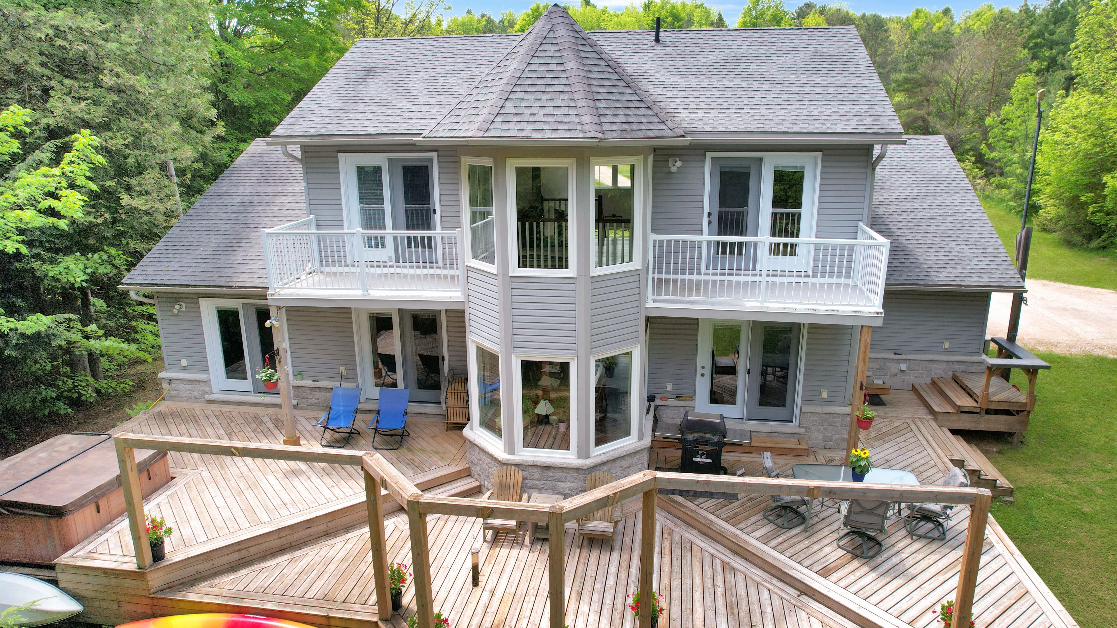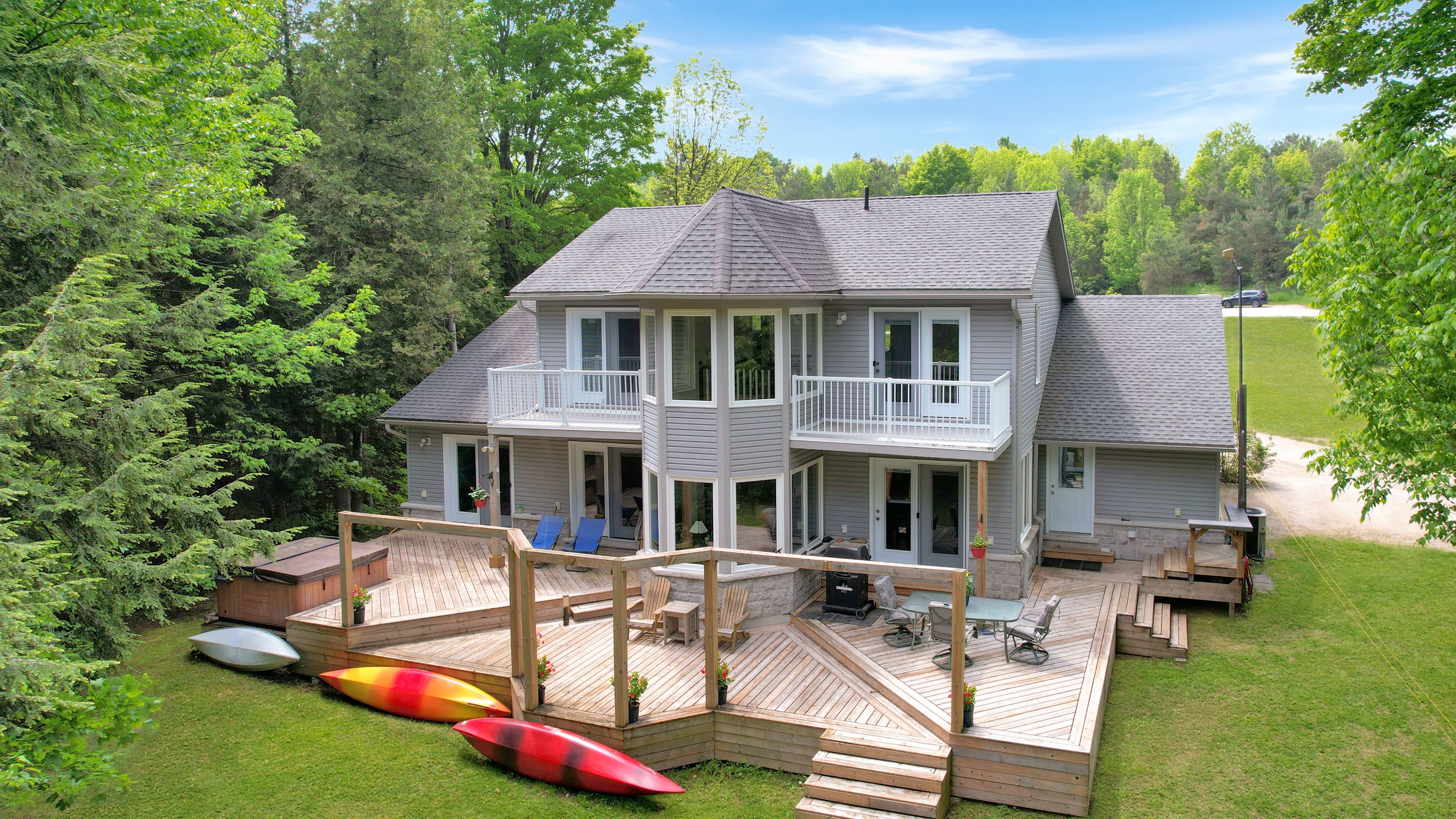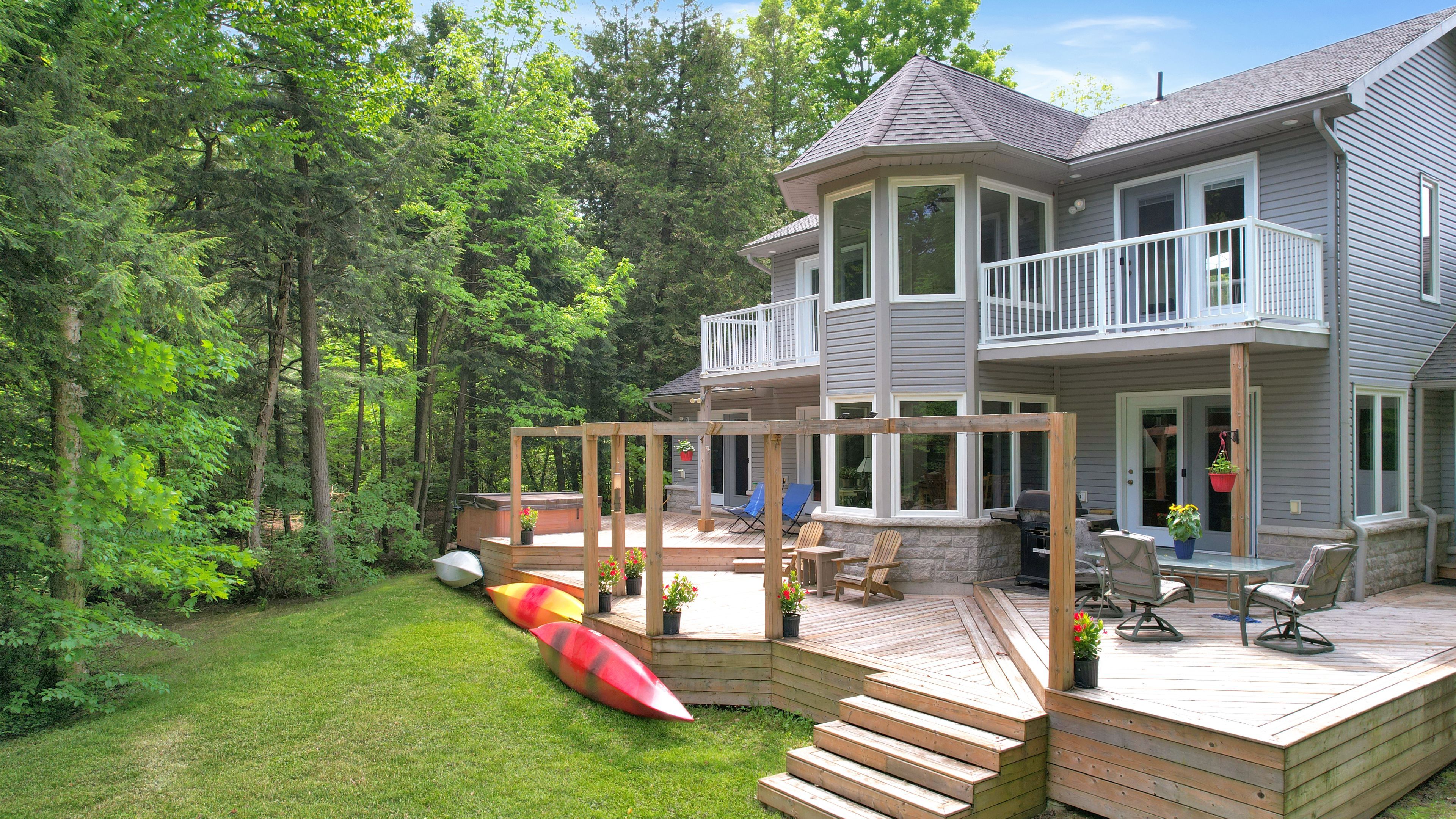 Subtype DetachedIndoor Features Air Exchanger, Central Vacuum, Water SoftenerOutdoor Features Backs On Green Belt, Deck, Fishing, Hot Tub, Landscaped, Privacy, Porch, Year Round LivingAmenities Cul de Sac/Dead End, Greenbelt/Conservation, Lake Access, Lake/Pond, School Bus Route, Wooded/TreedOwnership FreeholdViews Lake, Trees/WoodsWaterfront DirectAppliances ParkingBasement Finished, Walk-UpFoundation ConcreteHeating / Cooling Forced AirHeating Fuel GasSewer Septic