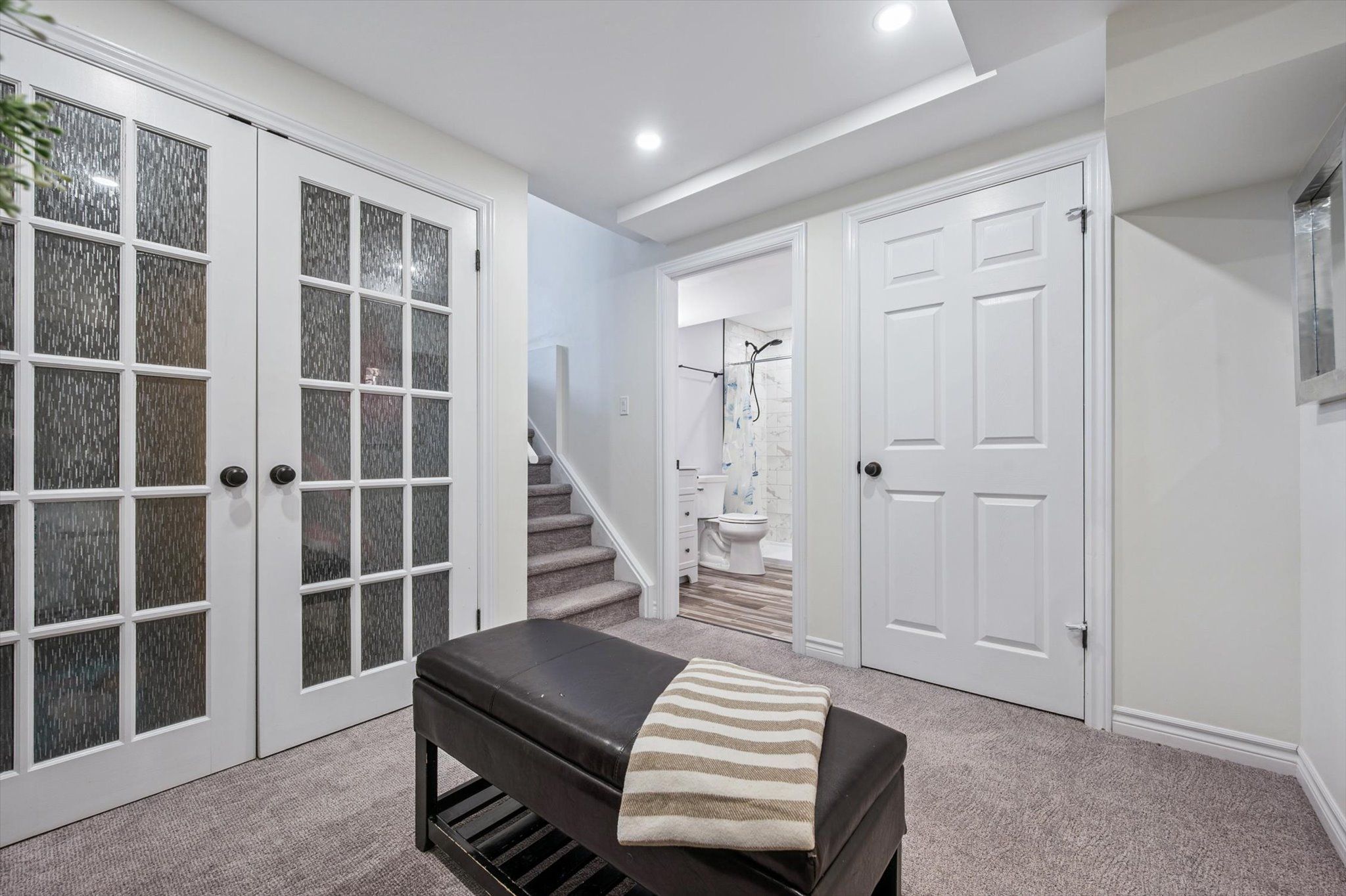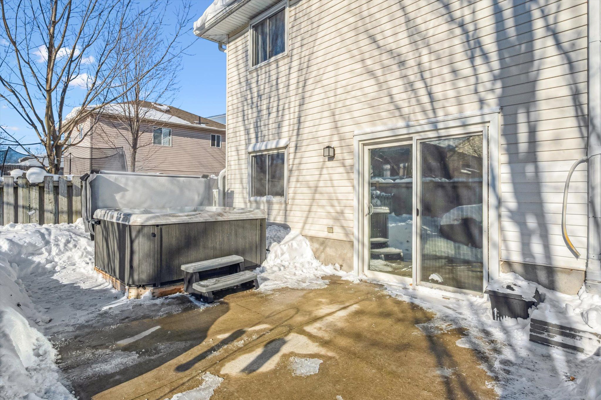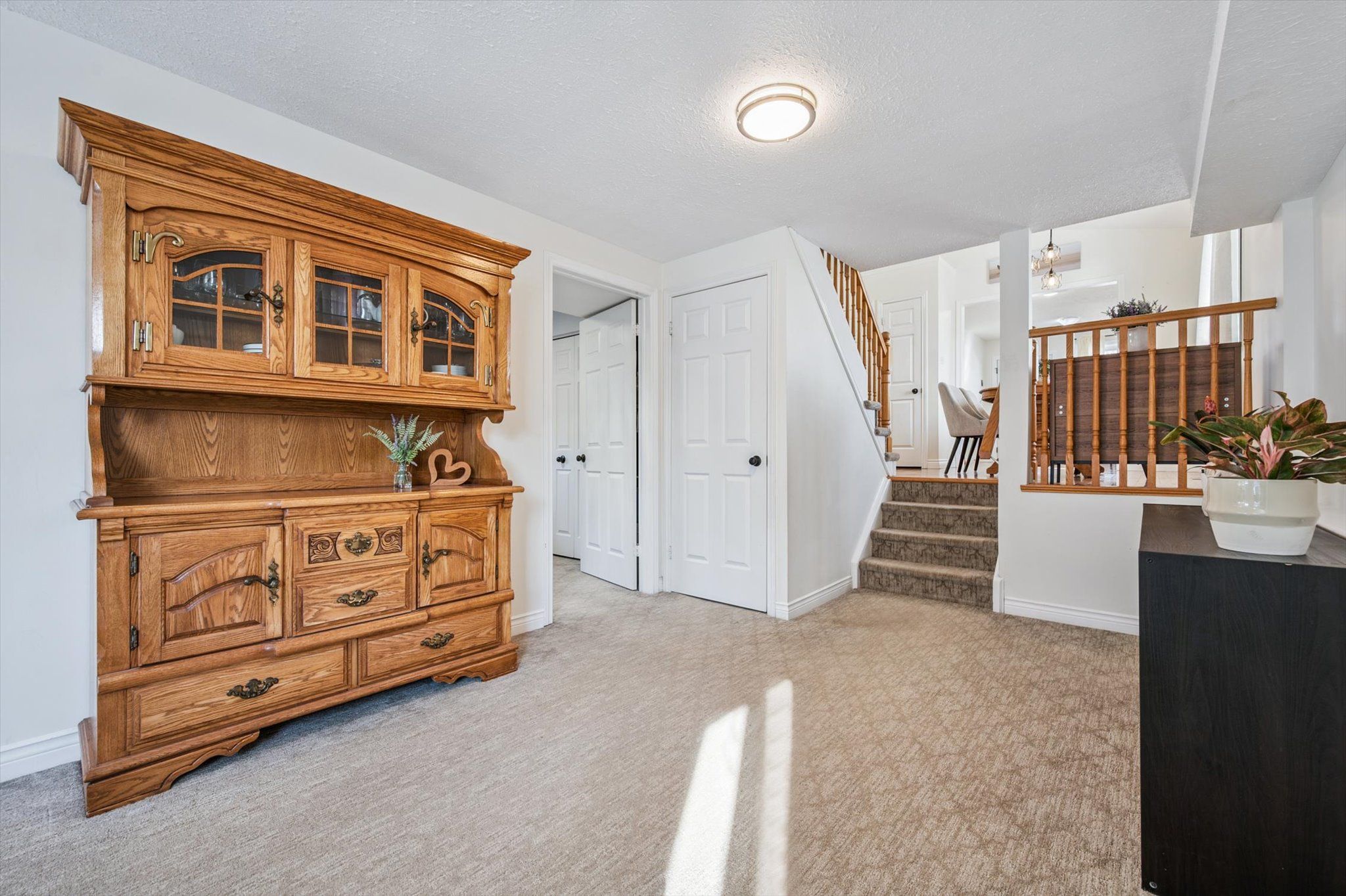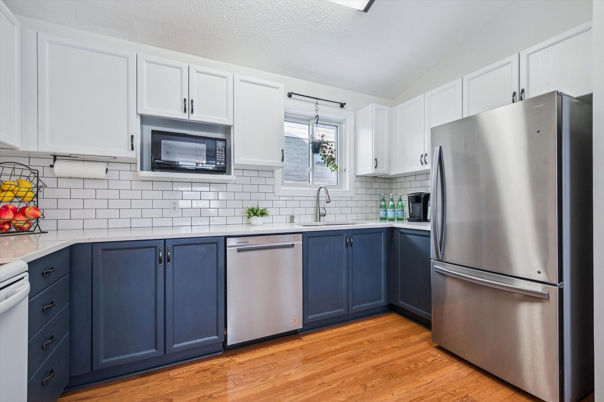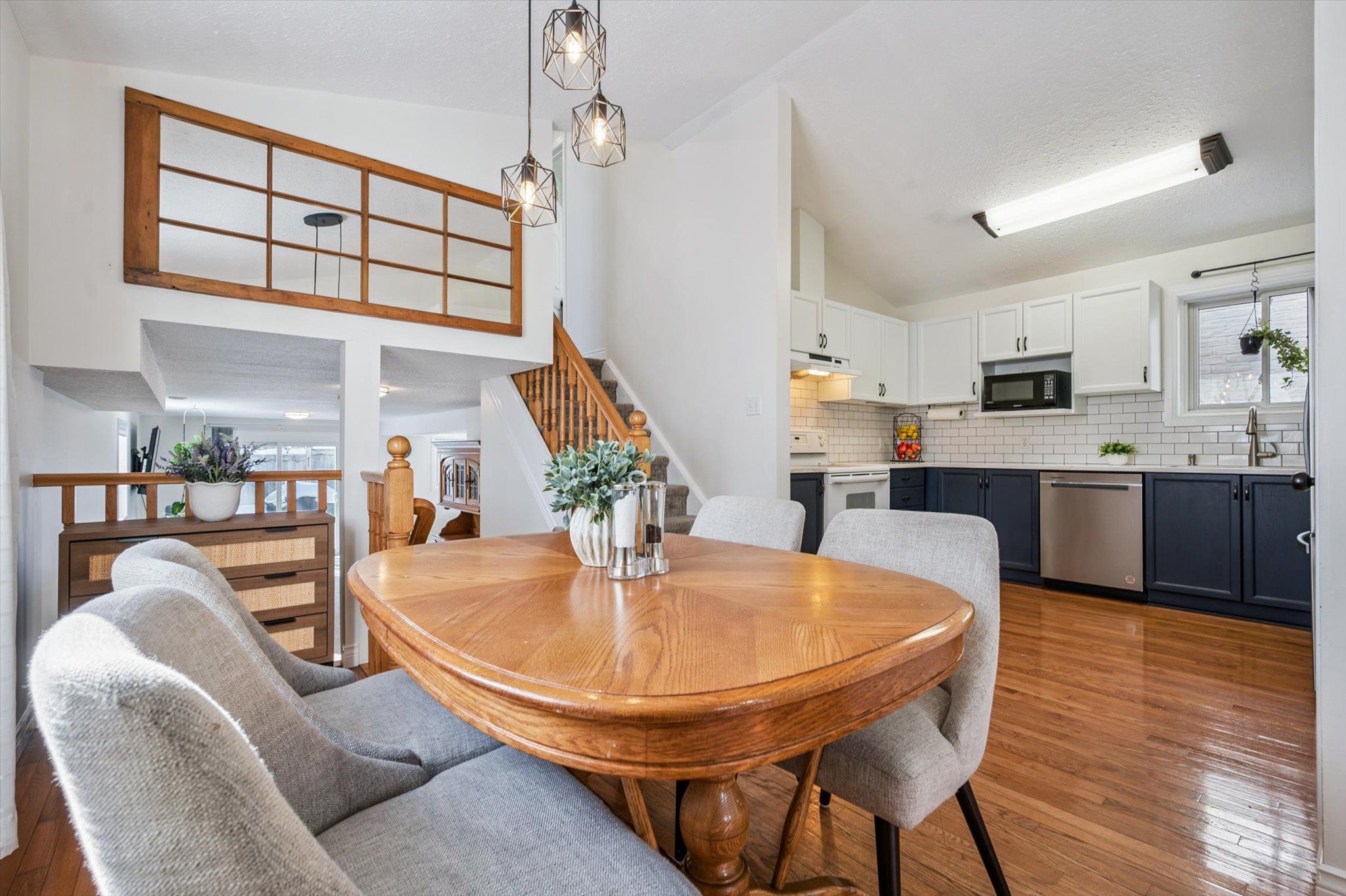 Large backsplit in fantastic neighbourhood! You'll be impressed with how big this well maintained home is inside. Over 1600 sqft of generous space complete with 3+1 bedrooms, 2 full renovated baths. The first level offers a large front room ideal for a cozy sitting spot and spacious entryway with lots of storage space. Hardwood floors flow through to the dining room and kitchen with vaulted ceilings. Kitchen updates (2022) include quartz counters, subway tile backsplash, undermount sink, fridge and dishwasher (2025) + features 2 pantry closets. Down a couple of steps to the lower main floor you'll find a huge family room with sliding doors out to your fenced (2021) backyard with concrete patio (2021) and hot tub (2023). An office or 4th bedroom completes this level. Upstairs are 3 right sized bedrooms; the primary features a large walkin closet. The main full bath has undergone an incredible renovation (2022) with heated floors, extra deep soaker tub, lighted mirror, builtin shelving and stunning tile. Down in the recently finished basement (2021) is a den perfect for kids to play video games, another stunning bathroom (2021) with walkin shower and builtin shelving, plus tons of storage space! Finishing off this great home is an attached 1 car garage, lovely front deck (2024), paved driveway (2024), integrated gemstone lighting (2023), tasteful landscaping, fresh paint throughout (2021) and new water softener (2023). Situated in south end fergus close to main roads for commuters, schools and shopping. This is a must see, book your showing today!