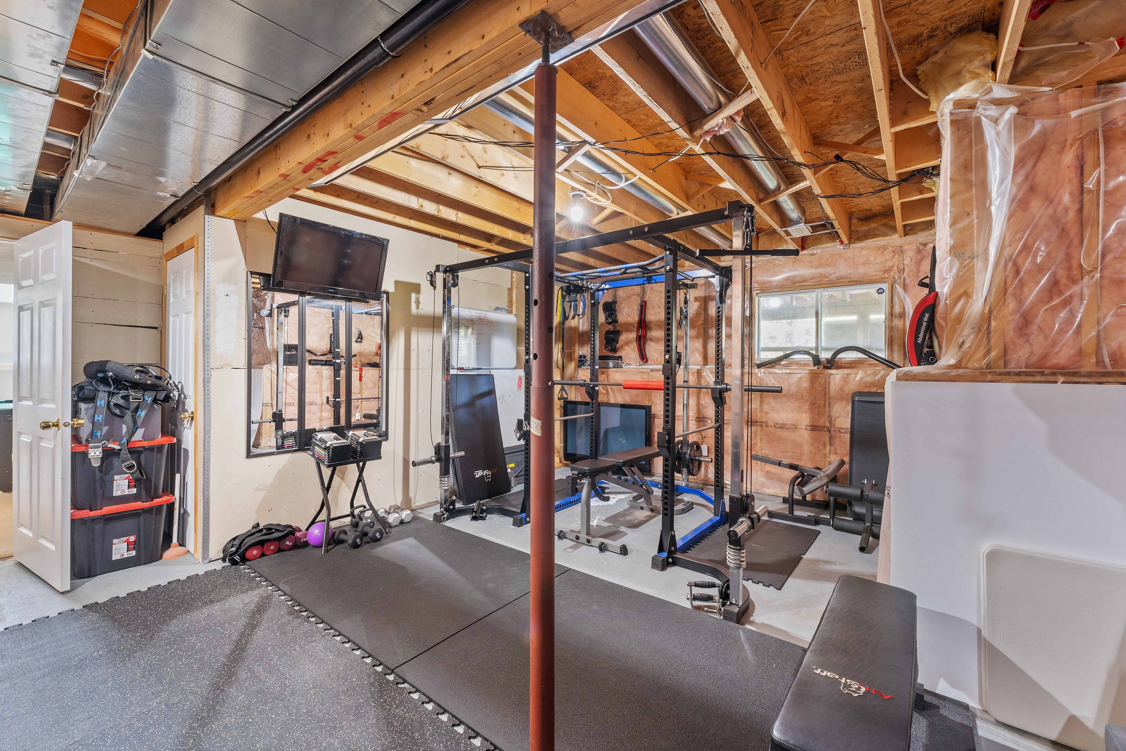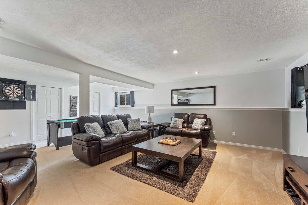 • Finished basement with rec room and roughed-in bathroom for extra space.