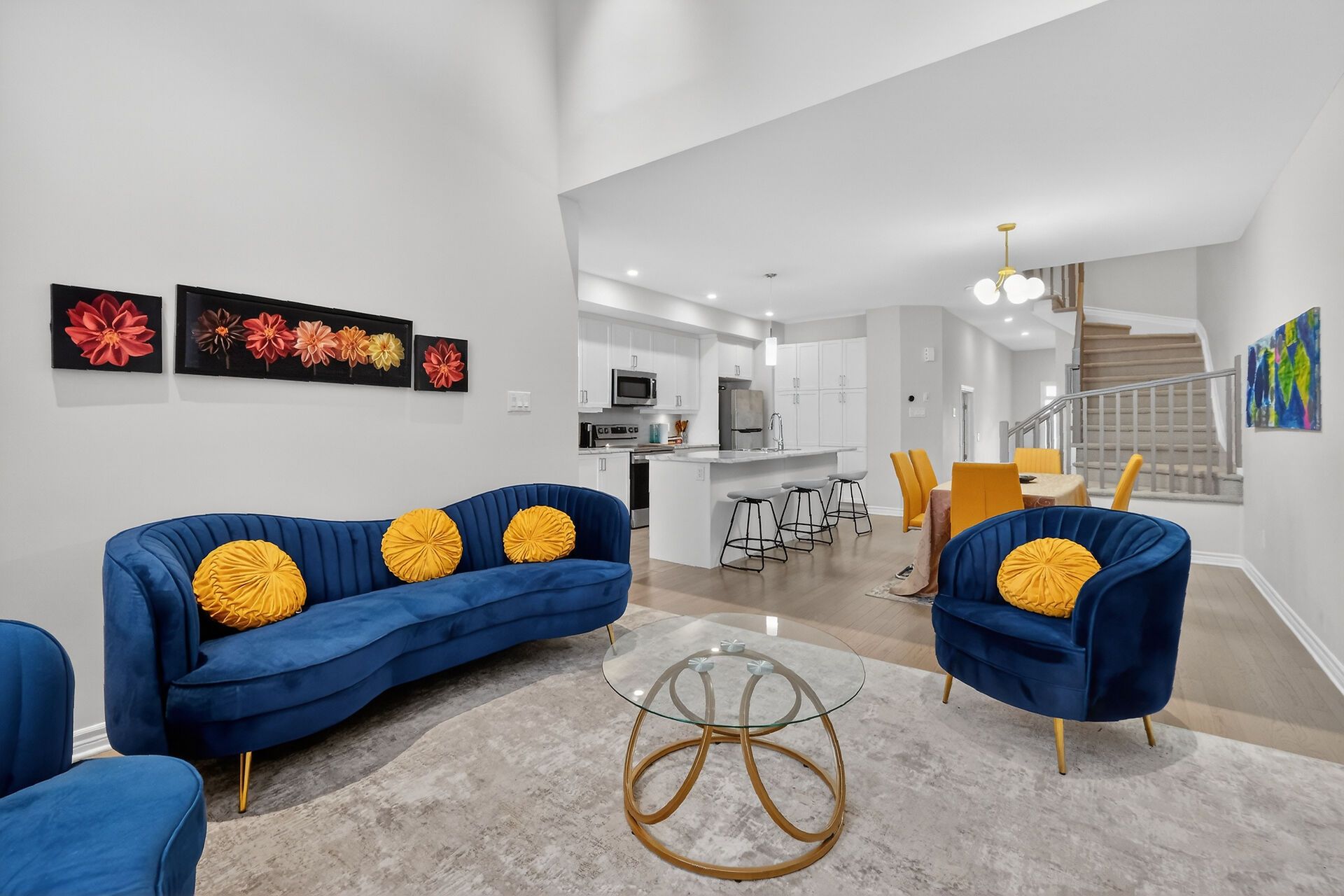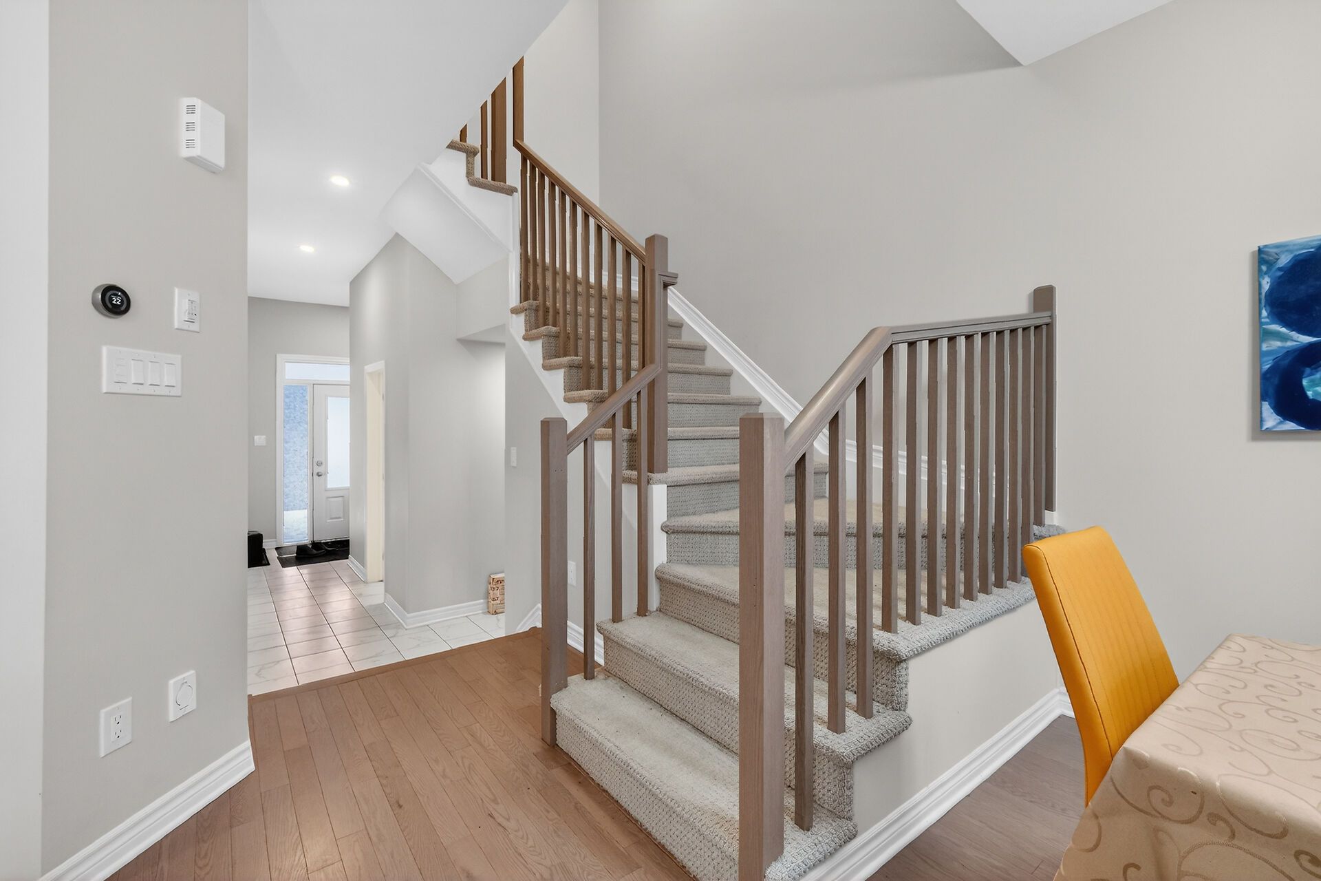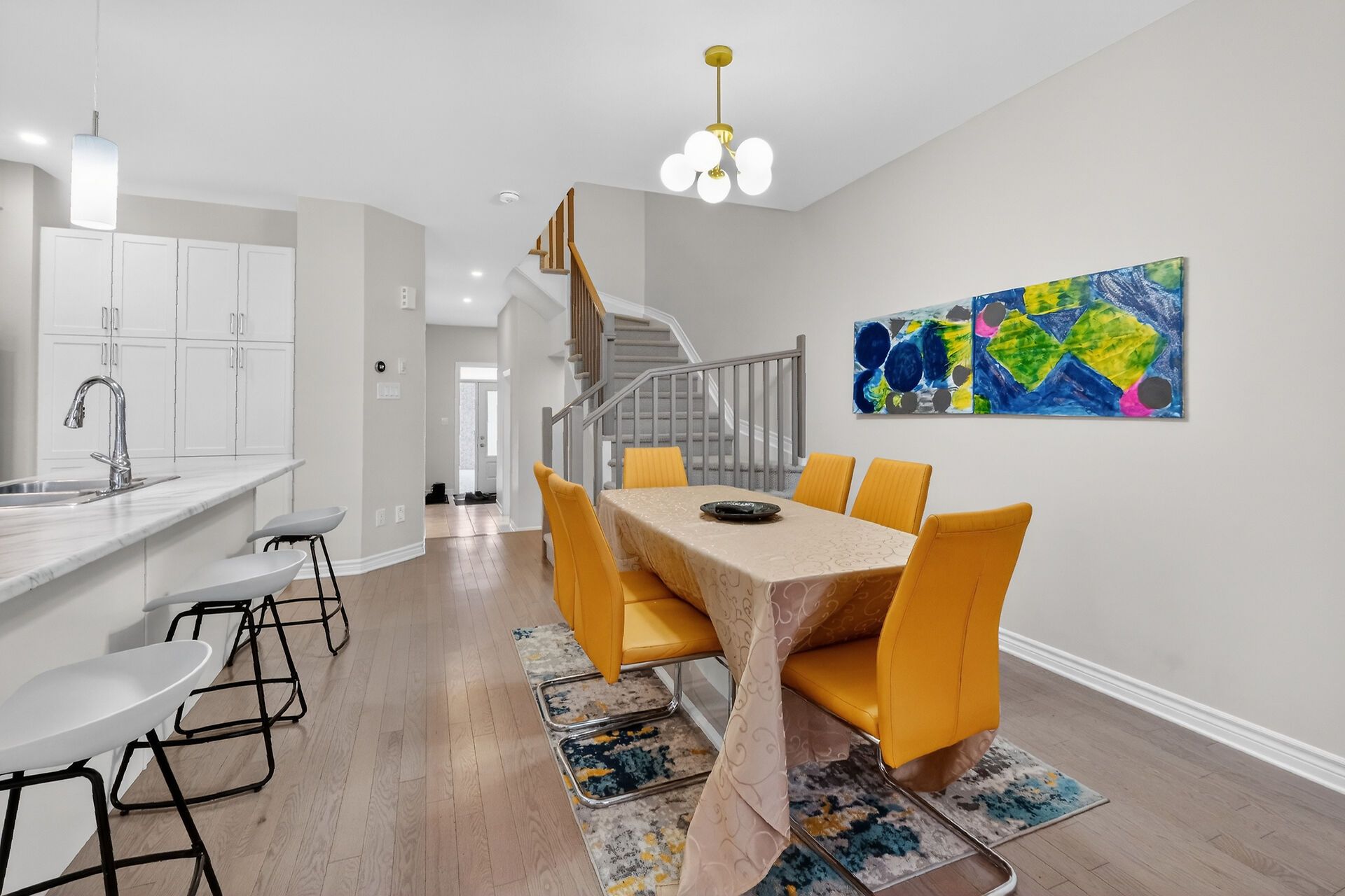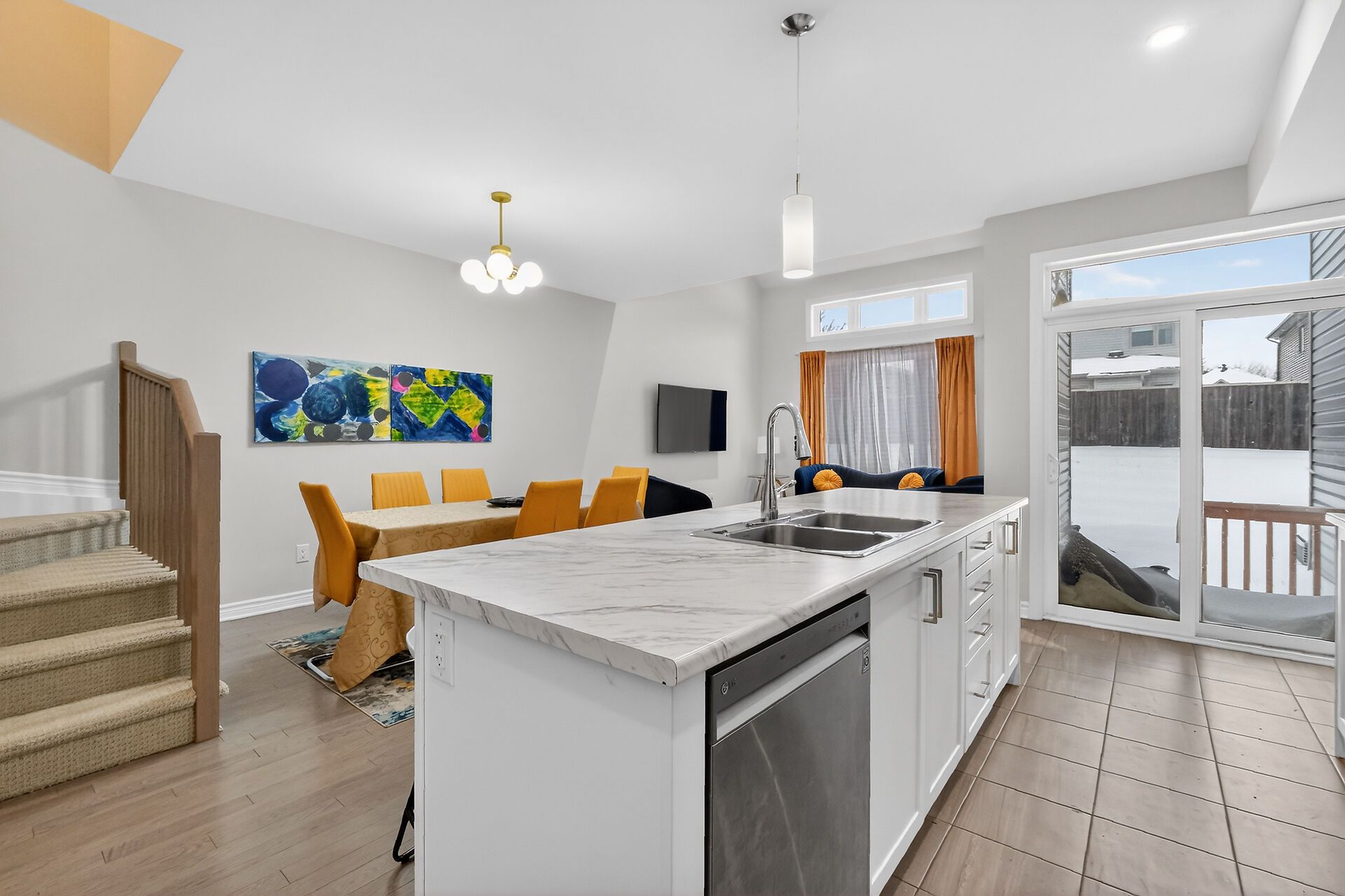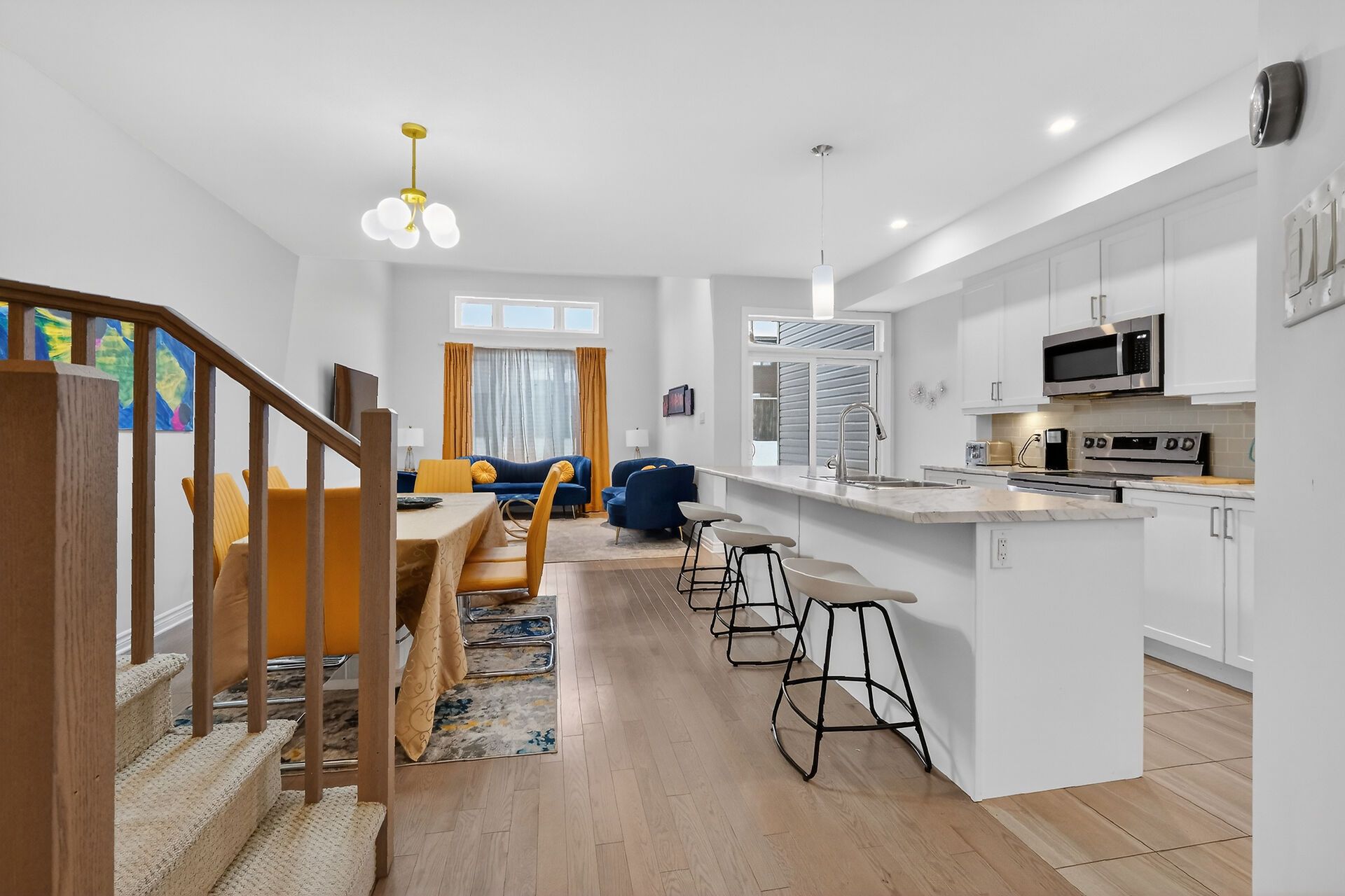 This stunning four-bedroom, three-bathroom townhouse feels like a single-family home in both space and design, seamlessly blending modern upgrades with comfort. Here's a look at its features:main floor- foyer: a welcoming entrance that sets a positive tone.- powder room:convenient for guests.-living room: a spacious area perfect for relaxation and gatherings, highlighted by a unique ceiling design.- kitchen: upgraded with soft-close drawers, under-cabinet lighting, and a seamless cabinetry look. Beautiful pantry significantly enhance both aesthetic s and functionality of kitchen.- flooring: a stylish mix of red oak engineered hardwood and tile throughout. Second floor- primary bedroom: features an ensuite with a four-piece setup, including double sinks and a spacious walk-in closet.- additional bedrooms: two more bedrooms provide ample space for family or guests.- linen closet: for easy organization of essentials.- third bathroom: a well-appointed three-piece washroom. Basement- recreation room: ideal for entertainment and hobbies.- additional bathroom: a three-piece washroom enhances functionality. Location advantages- close to rockland golf club and walmart for convenient shopping.- nearby rockland district high school is great for families.- restaurants and amenities enrich leisure opportunities. This home combines generous living space with modern conveniences in a prime location, making it an excellent choice for families.