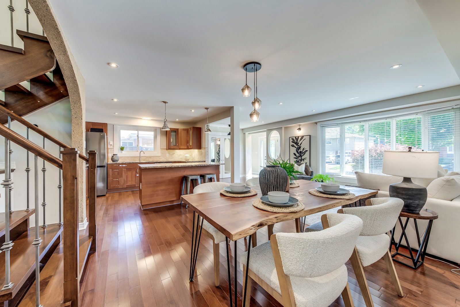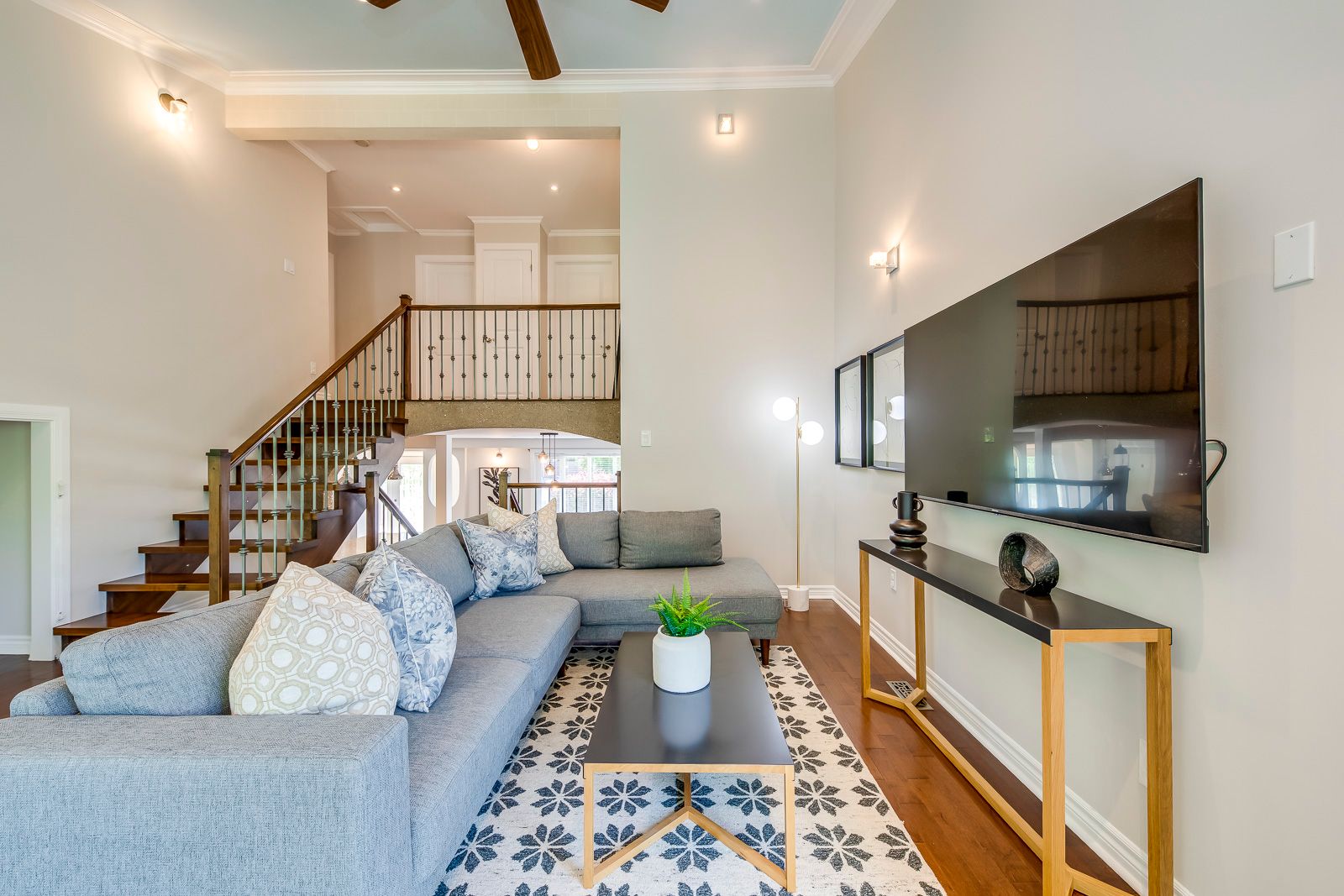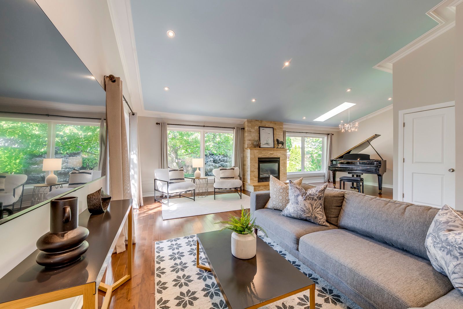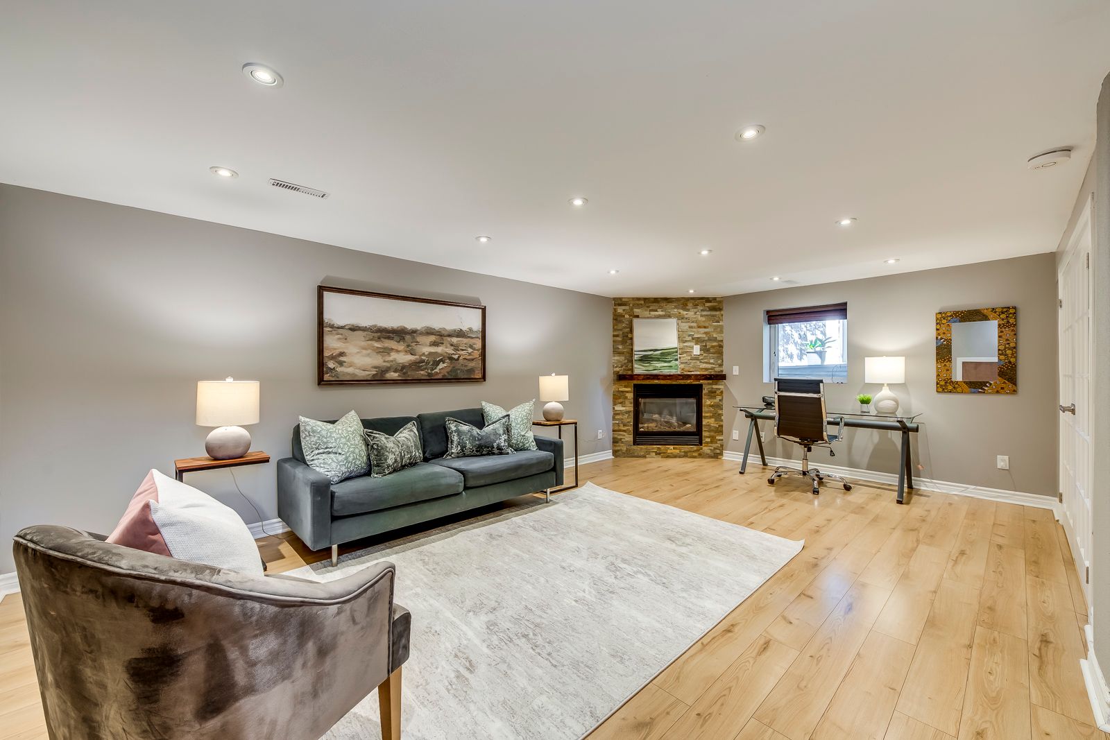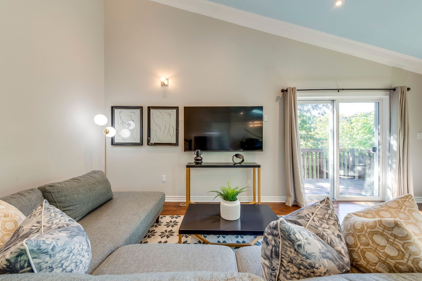 This spacious 3+1 bedroom, 4-bathroom custom-built home sits on a quiet street in burlington's sought-after pinedale, just minutes from parks, schools, shopping, and major highways. Offering nearly 2,680 sqft above grade plus a fully finished basement, it's ideal for growing families. The modern stucco exterior with large windows adds striking curb appeal. Inside, the main floor features an open-concept layout with a bright living room and a large eat-in kitchen showcasing hardwood cabinetry, a generous island, stone counters, and premium stainless steel appliances. The upgraded laundry/mud room provides access to both the garage and backyard. A raised second level impresses with soaring cathedral ceilings, massive windows, and a versatile family/dining space. An elegant open-riser staircase leads to the third floor with a luxurious primary suite offering wall-to-wall custom closets, oversized windows, and a spa-like ensuite with glass shower. Two additional bedrooms share a renovated 4-piece bath. The finished basement boasts above-grade windows, a spacious rec room with wet bar, a fourth bedroom, and full bath. Outdoors, the backyard offers space to relax or entertain amid mature trees and established landscaping. The location is unmatched-15 minutes on foot to fortinos, shoppers, and appleby plaza restaurants; five playgrounds within walking distance; and easy access to centennial bikeway, downtown burlington, the lakefront, burloak waterfront park, and go transit. Just a short drive to riocan centre with shops, restaurants, cinema, and a soon-to-open costco. Recent upgrades include front and back decks stained (2025), interlock patio (2025), fridge (2024), washer (2022), and microwave (2022).