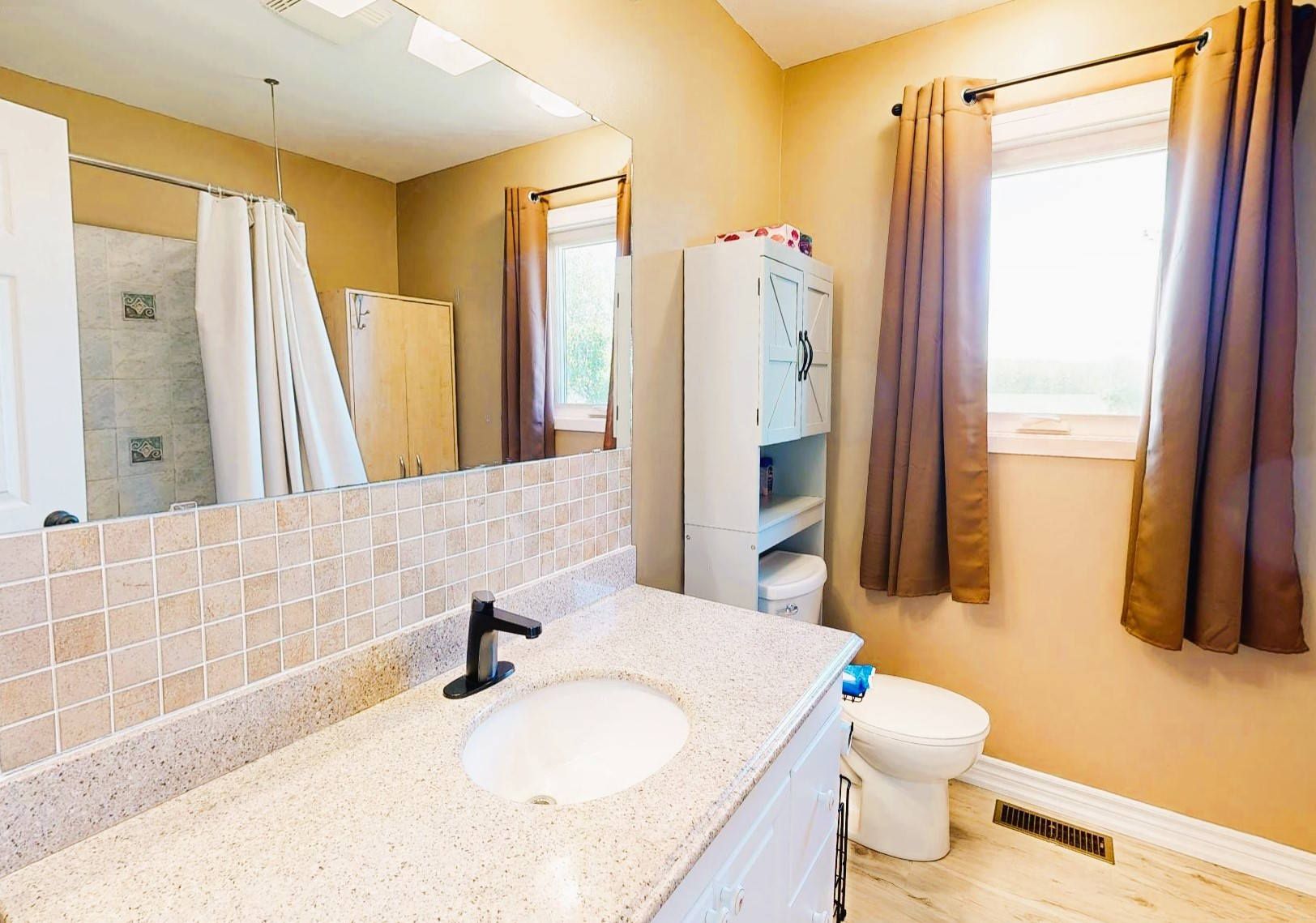 Country living in niagara. Conveniently located 15 min south of qew, 5km to smithville, 7 km to beamsville, and 15 km to grimsby providing access to a range of amenities. Over 1400 sq feet of main floor finished living space. This well maintained home offers 2 bedrooms and 2 bathrooms. Many upgrades throughout. No carpets. Fully accessible main floor living. Foyer leads to a spacious living room with large bay window and easy access to the bright, open kitchen loaded with natural light. Kitchen offers easy to navigate space, newer appliances and plenty of cabinetry and counter space. There are two good sized bedrooms, with southern exposure and a updated 4 piece main bathroom. Off kitchen is the entry from the garage and a laundry/flex space with steps to lower level. Basement offers endless possibilities for customization and enhancement. In law suite potential, 3 piece bathroom, and separate entry from garage. Bonus separate storage area under the garage. The sunroom leads to the deck with a timber frame gazebo and the 15' x 26' pool (2022) for outdoor entertaining and summer fun. Relax in the open countryside and enjoy the cool summer breezes. Apple trees flank the east side of the property and await your fall harvest. Yard offers plenty of room for gardening, yard games and pets. Detached garage has concrete floors and is great additional storage for seasonal furniture and equipment. Let's not forget the 1. 5 car garage and parking for 10+ cars. Furnace and a/c '21, u/v filtration system'21