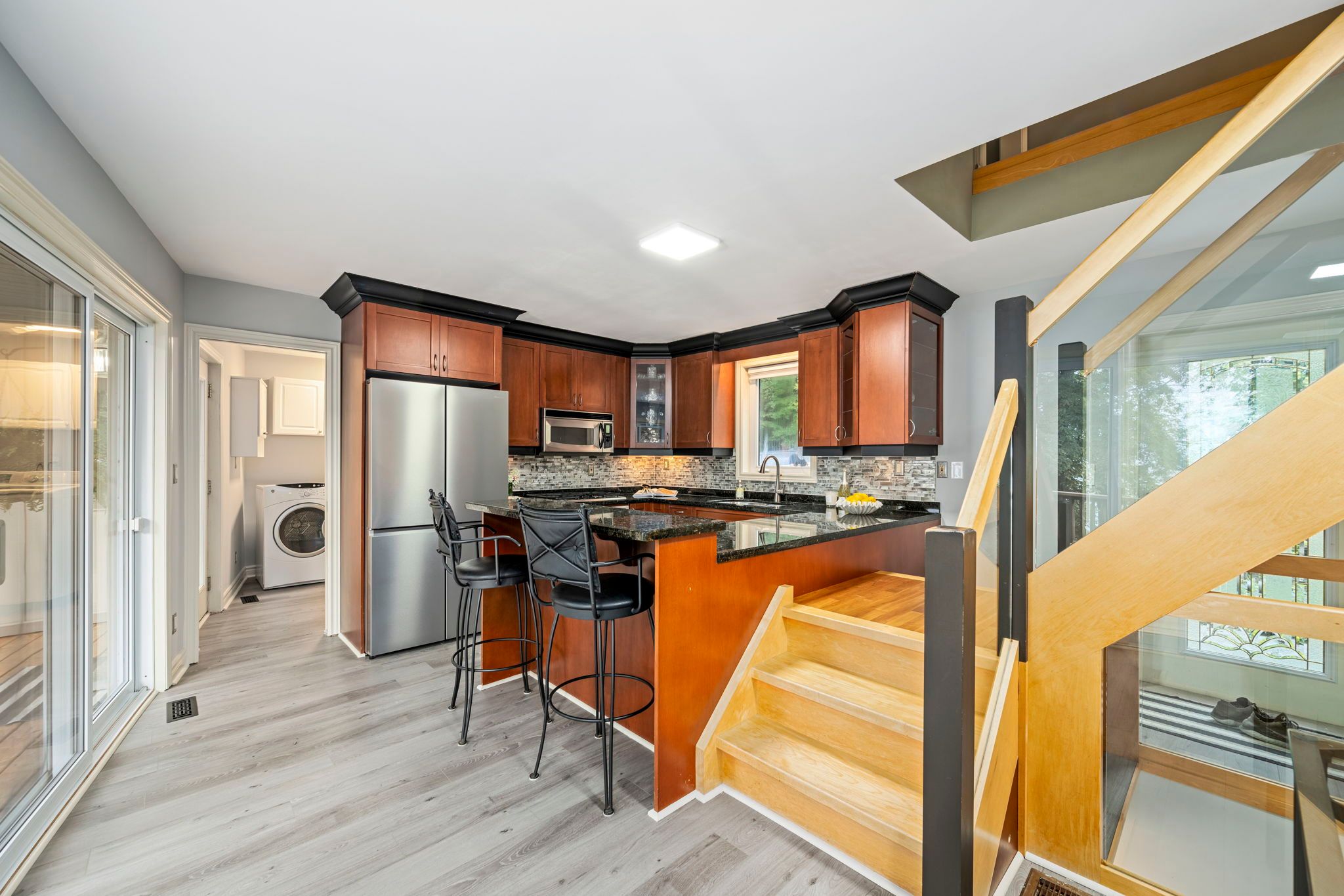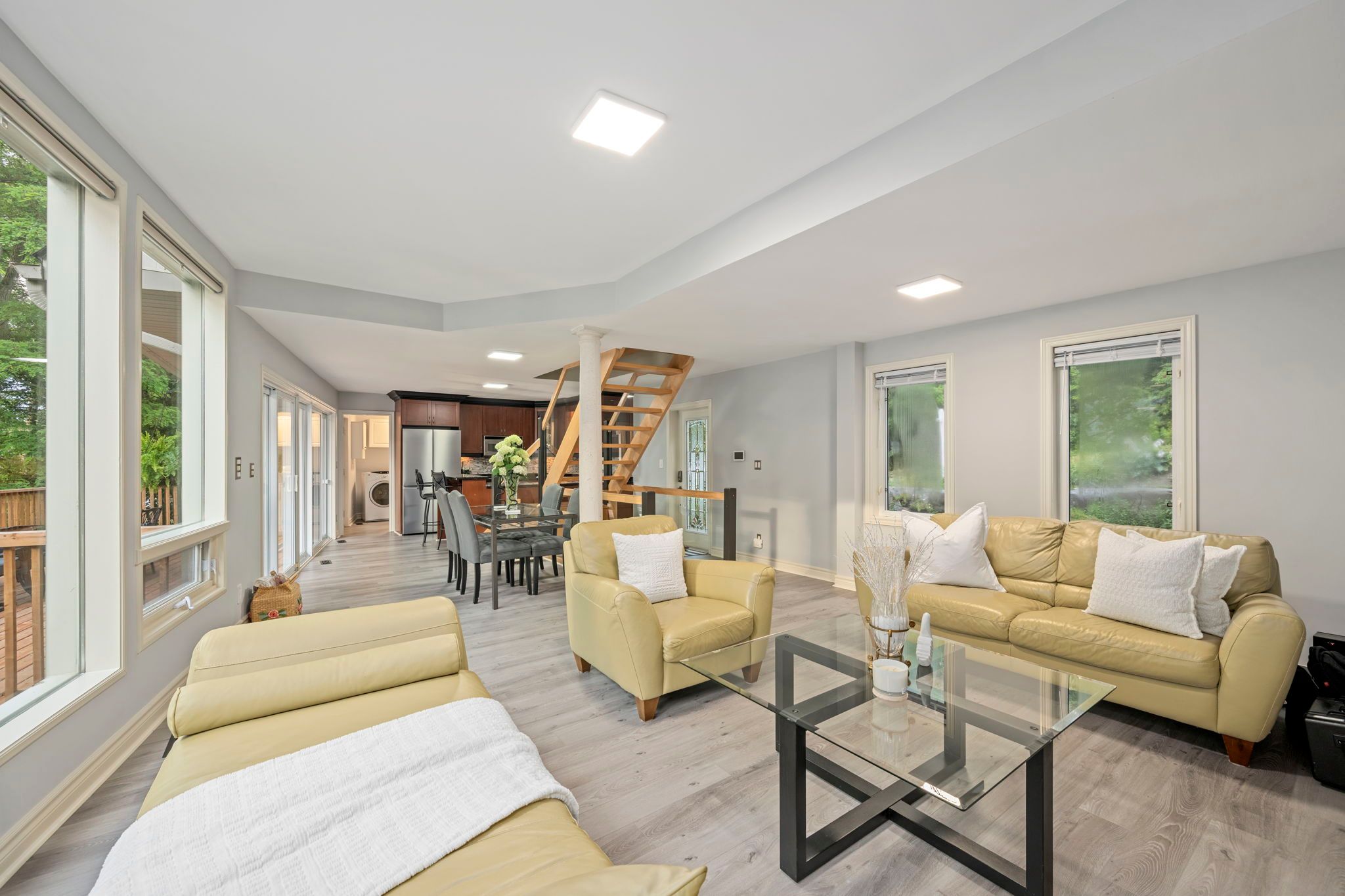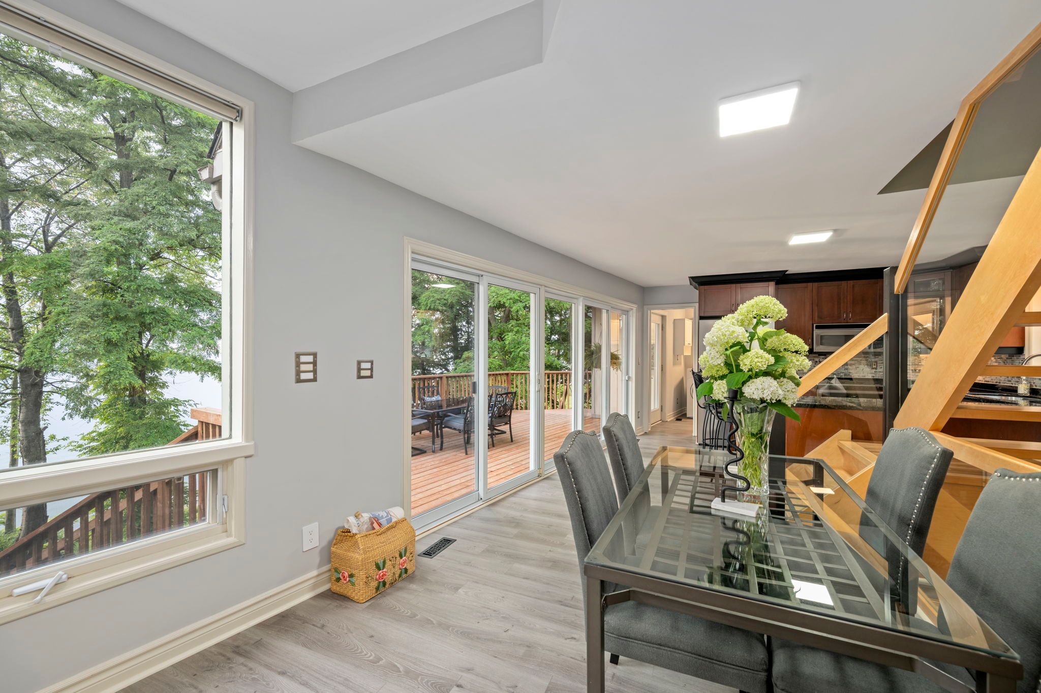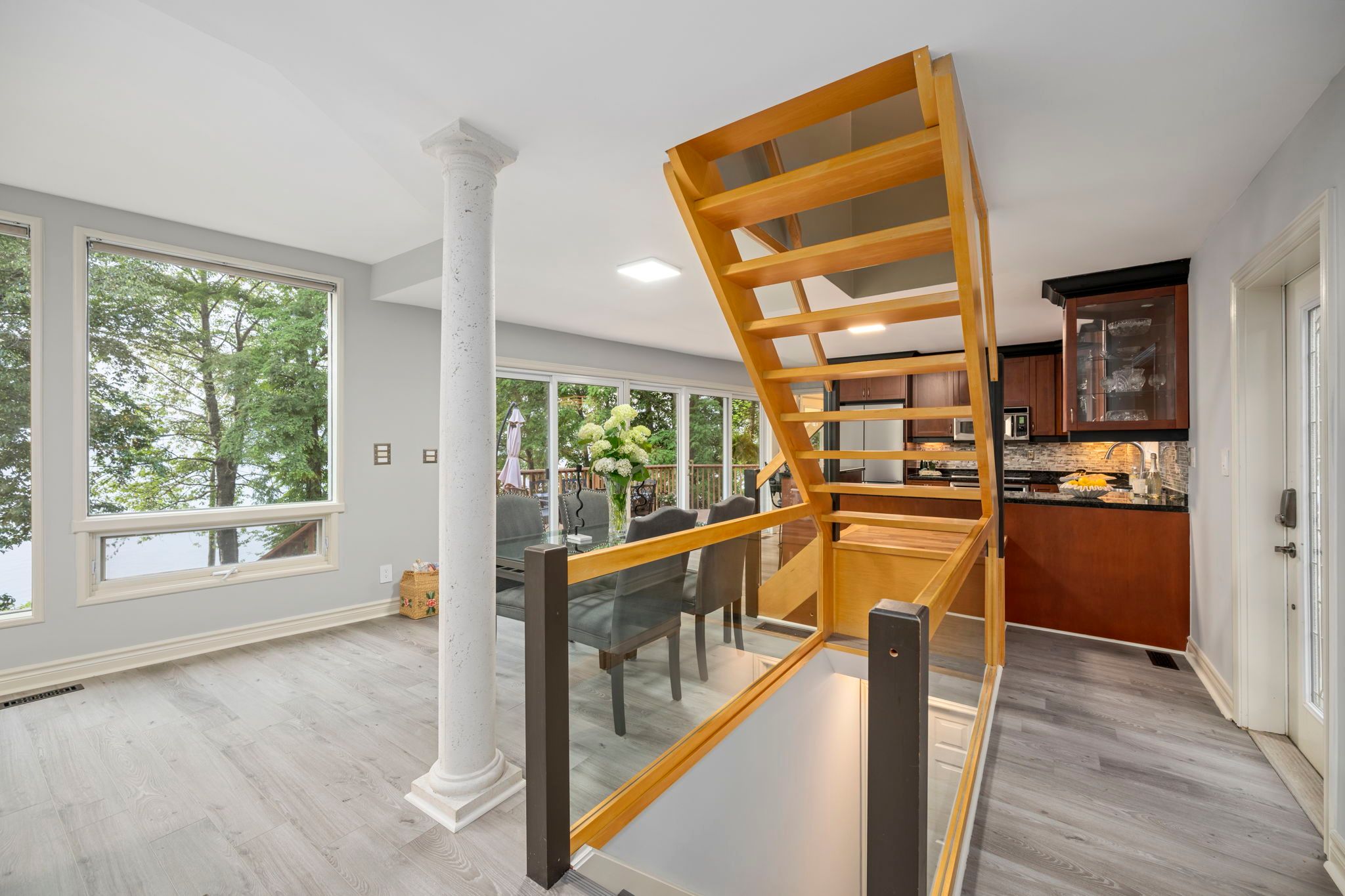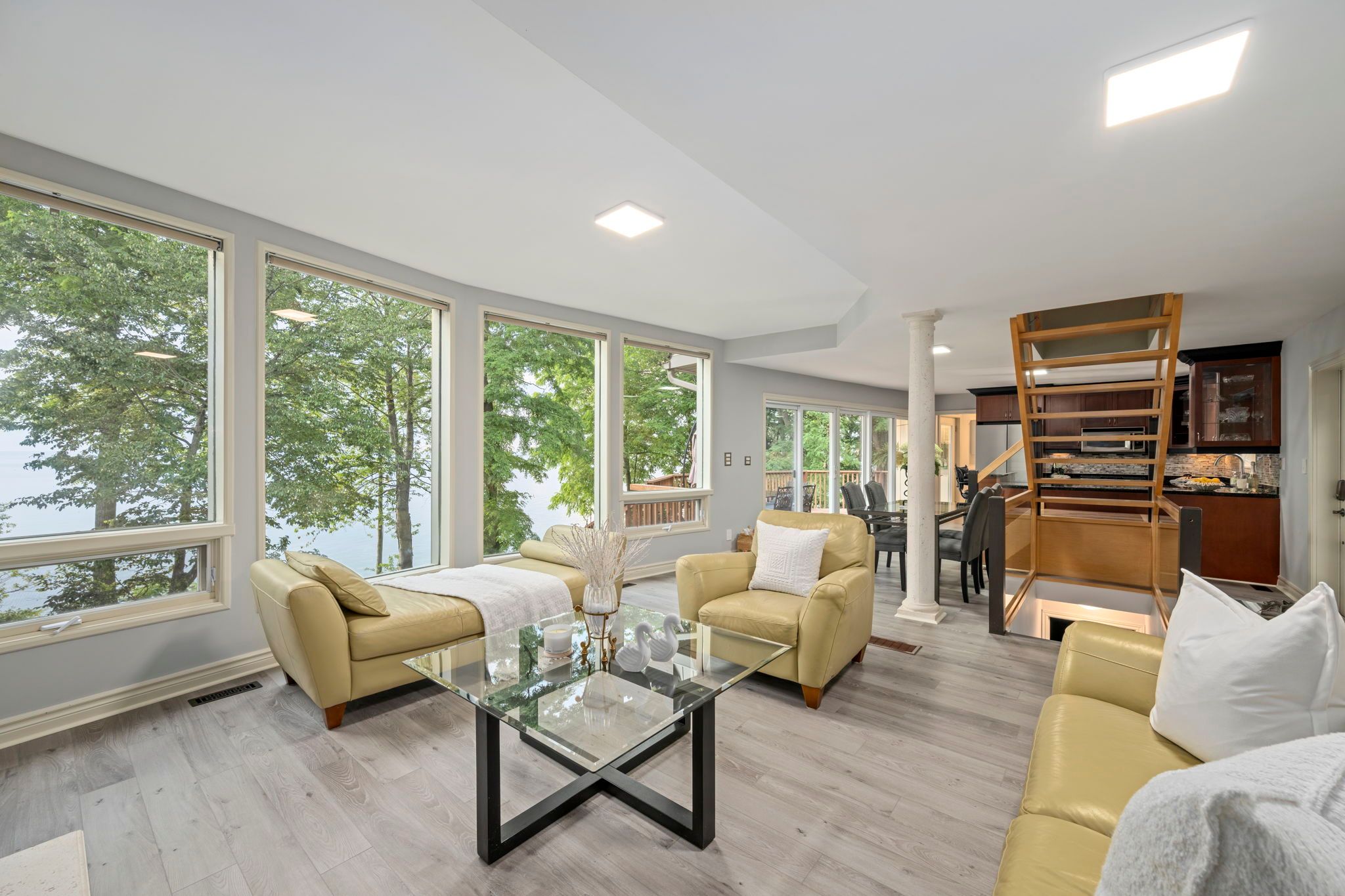 • Updated 3-bed, 2-bath home with stunning lake views throughout.