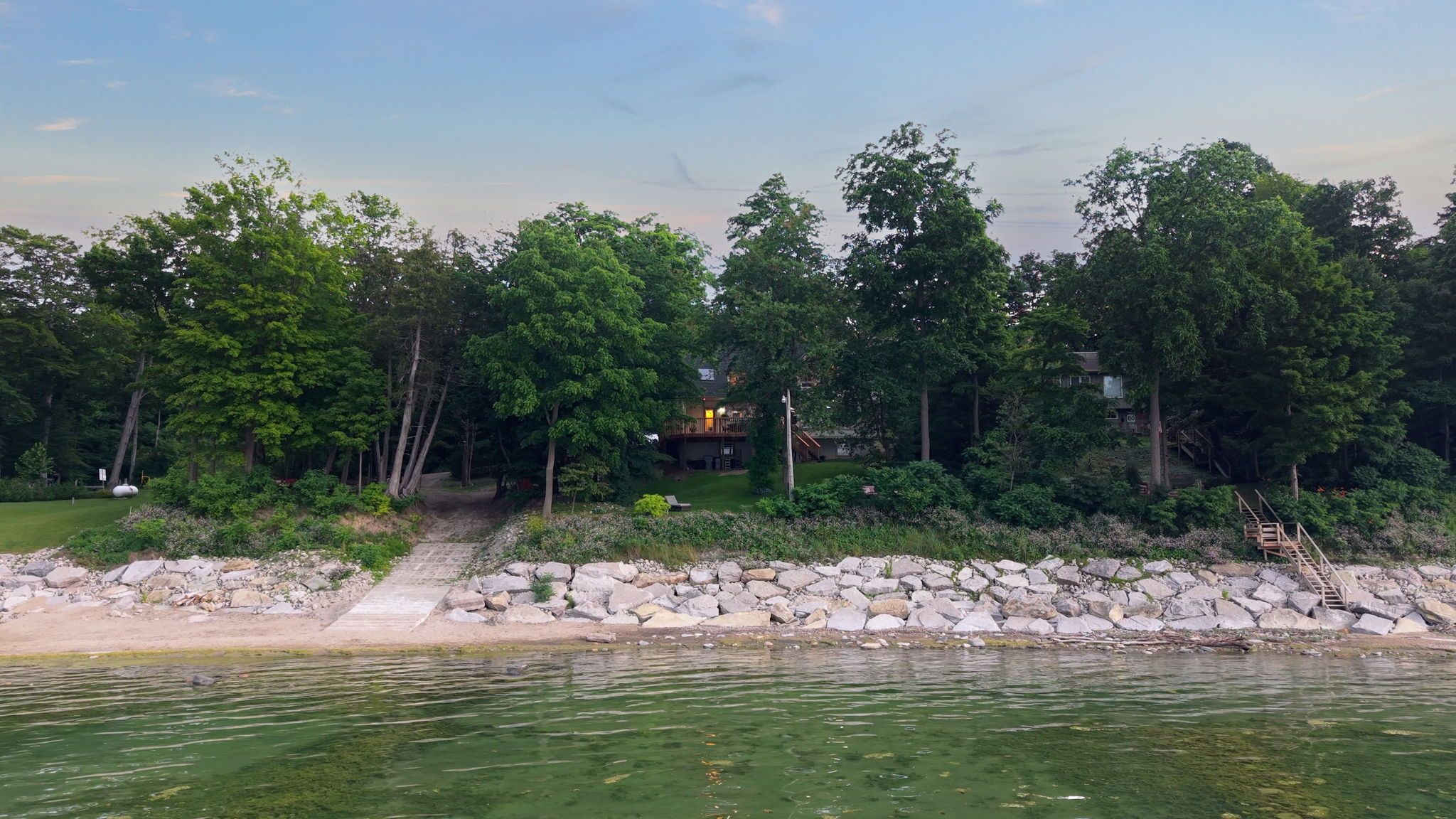 A rare opportunity to own one of lambton shores' most exclusive beachfront estates | 222 feet of private shoreline on one acre of pristine, secluded beauty. Perched on a natural cliff and surrounded by lush greenery and mature trees, this property offers breathtaking scenery, lake views, and year-round comfort. This beautifully updated and maintained 3-bed, 2-bath home is flooded with natural light and lake views from every angle. The main floor features expansive windows, sliding doors to a wraparound deck, a cozy living room with a fireplace, main floor laundry, and a full bath. Upstairs, the spacious primary bedroom offers panoramic lake views and a stunning skylight ensuite bathroom. A secondary bedroom includes a private balcony overlooking the water. Your third bedroom features a beautiful, expansive skylight whether you use it as a home office or a cozy bedroom, you'll enjoy the serene views all day long. The walk-out basement is unfinished, offering endless potential for customization. Major updates include roof + 2 skylights (2022 with transferrable warranty), furnace & a/c (2020), and ravine & rock wall reinforcement (2019 & 2021). Two beautiful lookout points for enjoying sunrises and sunsets. Private boat launch suitable for sea-doos, kayaks, and paddle-boards an uncommon luxury along this shoreline - nearby public launches for larger vessels. The expansive lot has been cherished for family gatherings, yoga sessions, and even camping offering a unique lifestyle experience surrounded by nature and privacy. There's endless parking available, perfect for hosting friends and extended family. Just minutes from the town of forest, offering shopping, community health centres, schools, parks, golf courses, and farmers markets. Enjoy small-town charm with proximity to grand bend, sarnia, and lake hurons most picturesque shoreline. Private shoreline with no public access - limited deeded passage preserves exclusivity. The place you feel the moment you arrive.