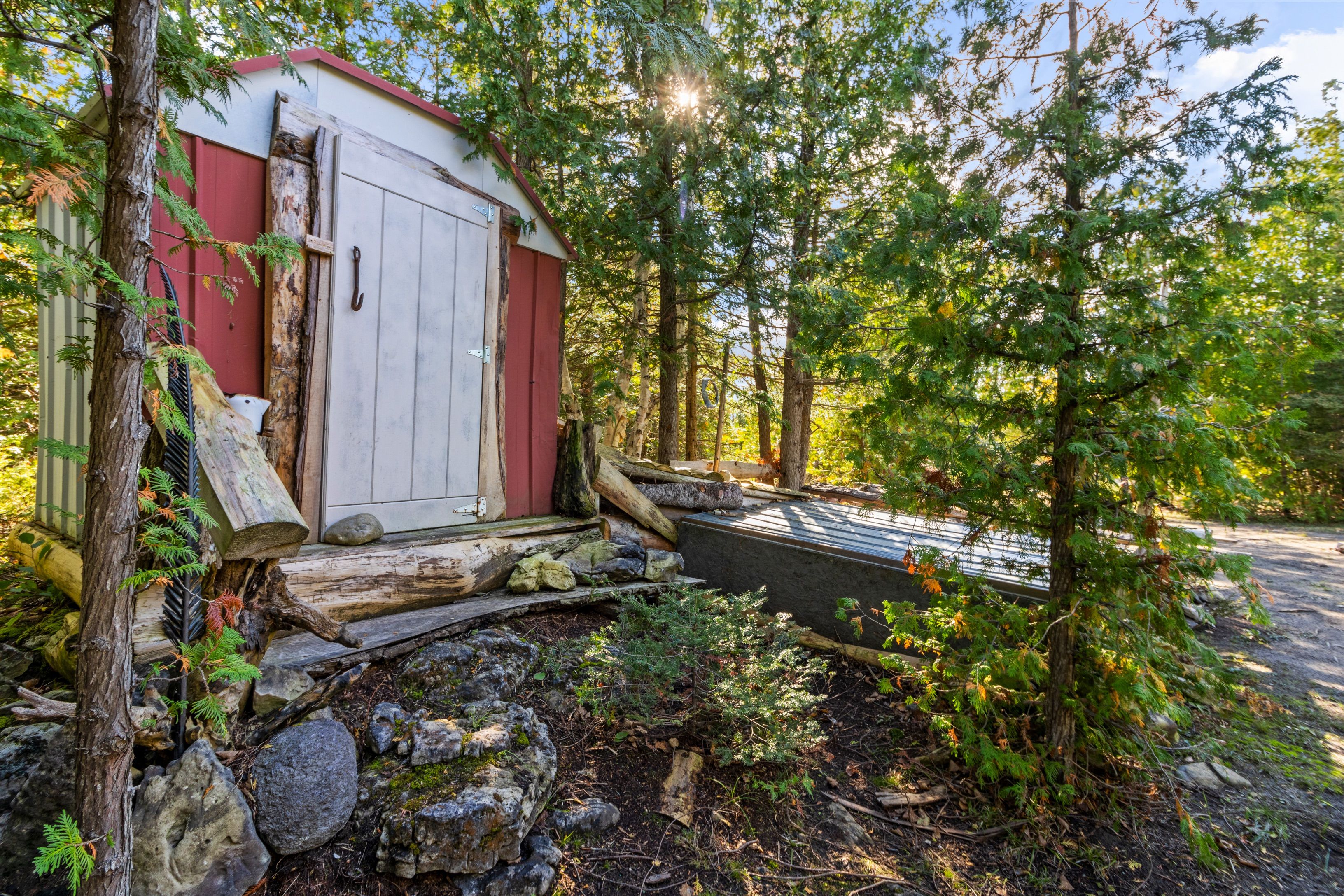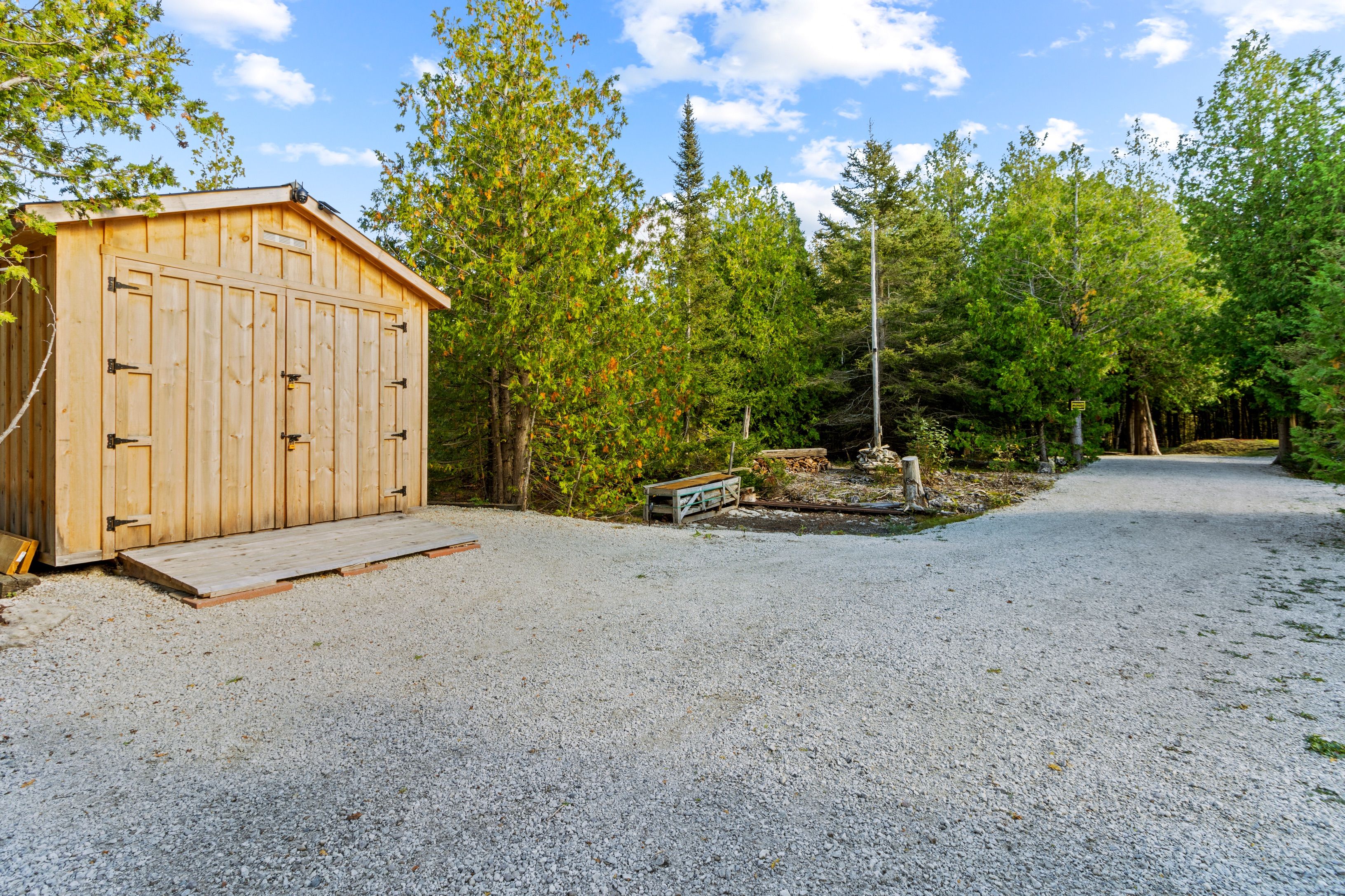 3. 9 acre country retreat! Escape to the heart of the bruce peninsula and discover this private 3. 9-acre property ideally located between tobermory and lion's head - perfect for a year-round home, recreational cottage, or self-sustaining lifestyle property. Surrounded by mature cedar forest, this peaceful setting offers privacy, fresh air, and the ultimate connection to nature. Designed for those seeking homesteading or rural living, the property offers space to grow your own food, raise small animals, and enjoy a sustainable lifestyle. Trails wind through the land, including your own private walking/atv trail with a bridge over a scenic creek - ideal for exploring your acreage year-round. The bright, open-concept home or cottage features 2 bedrooms plus a spacious laundry room with potential for a home office or additional sleeping area-ideal for retirees, families, or remote work. Vaulted ceilings and expansive windows flood the living space with natural light, while a cozy wood stove adds warmth and charm for four-season comfort. Walk out to the deck from the kitchen or living room. A perfect layout for entertaining, bbqs, or relaxing in your tranquil surroundings. Additional features include two bunkies, multiple storage sheds for tools and equipment, and a furnished, move-in-ready offering. A lightly travelled road adds character and provides a natural walking path, while the municipally maintained paved road ensures easy, year-round access. Located in a sought-after recreational area near the bruce trail, lindsay tract trails, and multiple public water access points with a nearby boat launch. Enjoy hiking, cycling, paddling, and world-class dark sky stargazing right from your own backyard. Whether you're searching for a bruce peninsula cottage, retirement property, rural acreage, or sustainable lifestyle, this unique property delivers space, privacy, and endless potential.