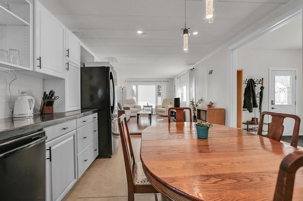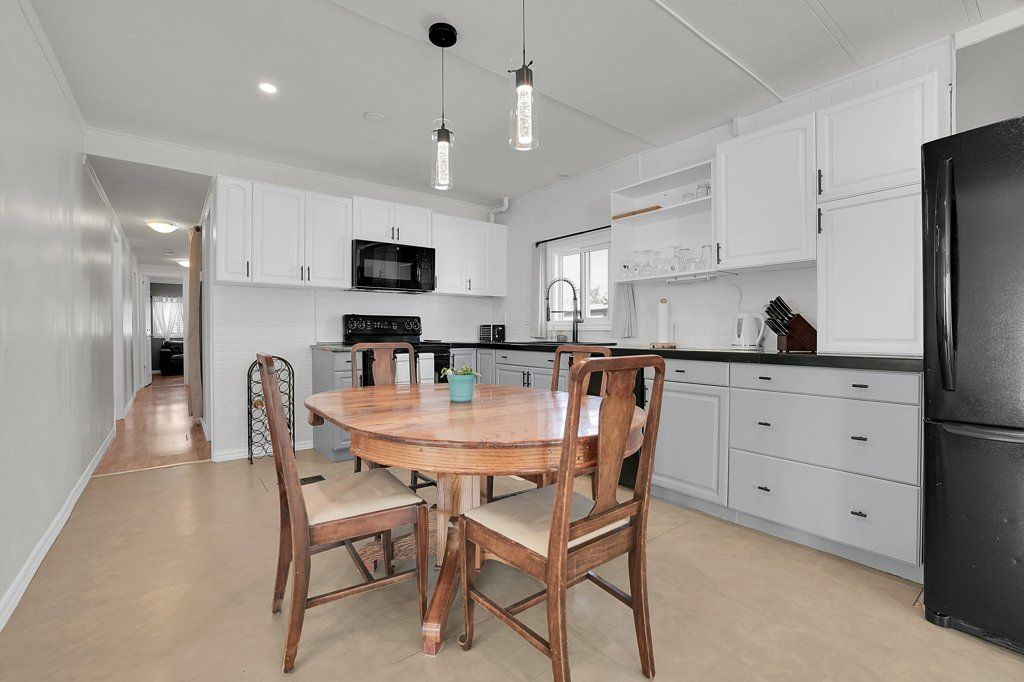 Well-maintained 3-bedroom, 1-bath home located in bayview estates offering a flexible layout and over 1,000 sq ft of living space. The home features a spacious kitchen, comfortable living area, and a potential floor plan with multiple bedrooms or optional office/den space. Clean and move-in ready with pride of ownership evident throughout. Includes all major appliances, an owned hot water tank, and a storage shed for added convenience. Situated in a well-managed park setting, this home offers an affordable opportunity for buyers seeking space, functionality, and value in today's market.