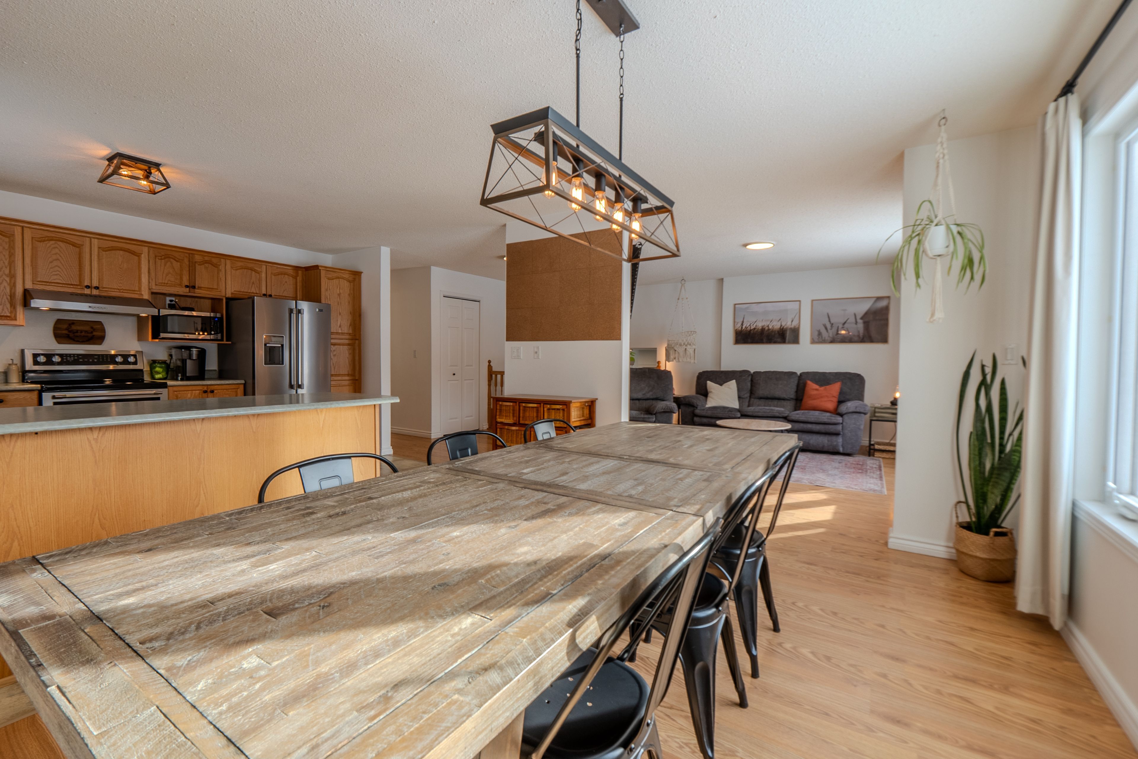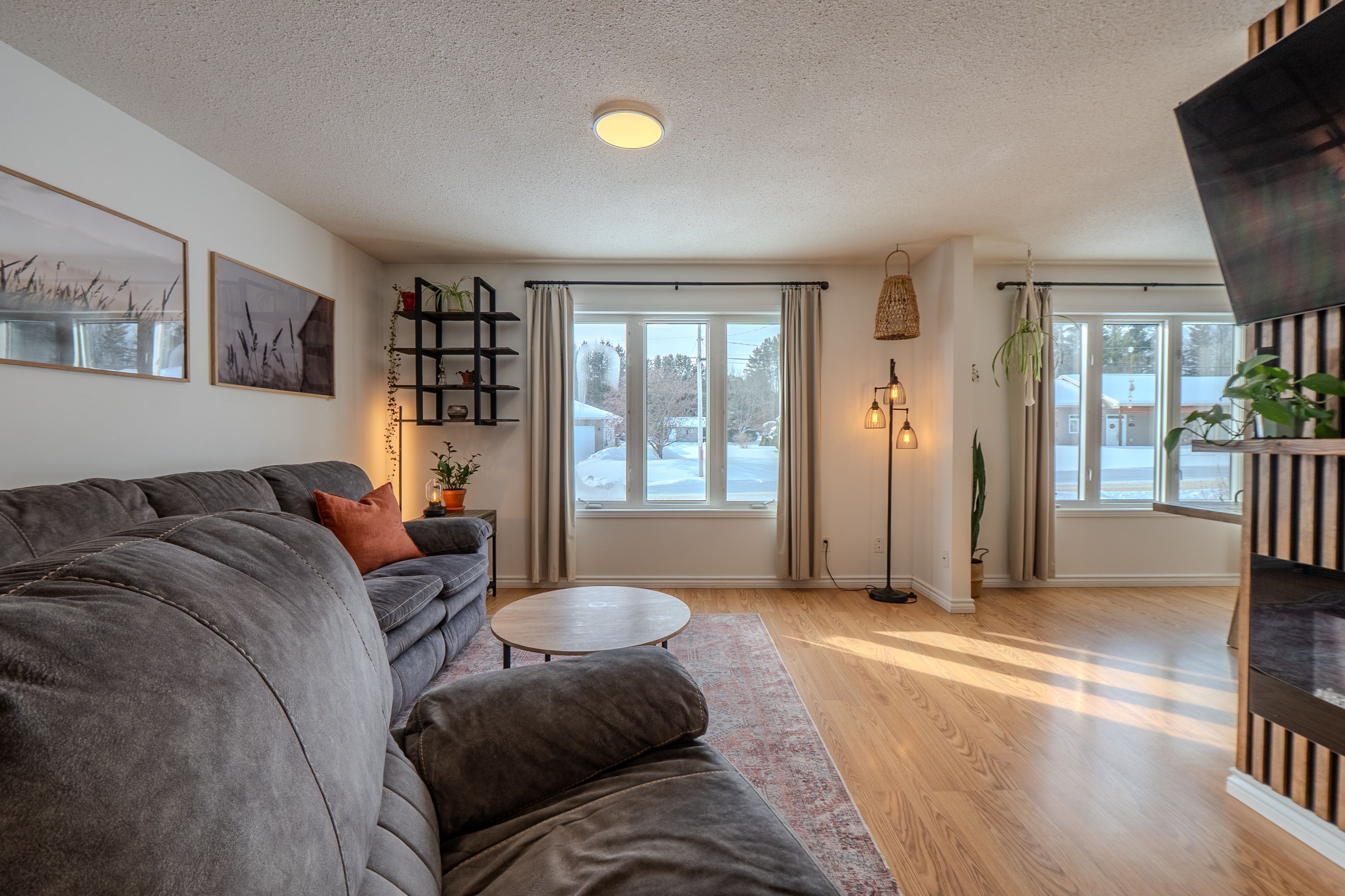 This well appointed 5 bedroom 2 bathroom home, built in 2004, is ready for new owners! Enter the front door to a large split entrance and head upstairs to the open concept kitchen, dining and living room. Down the hall you'll find a spacious 4 piece bathroom, primary suite with sliding doors that lead to your own private deck overlooking the fully fenced in back yard, as well as two additional bedrooms. In the basement is a large rec room, another 4 piece bathroom including a corner tub, and the two remaining bedrooms. Laundry is located in the utility room in the basement. The attached garage provides a drive-through feature to the back yard with double doors as well as access to the main entrance. Don't miss out on this rare gem!