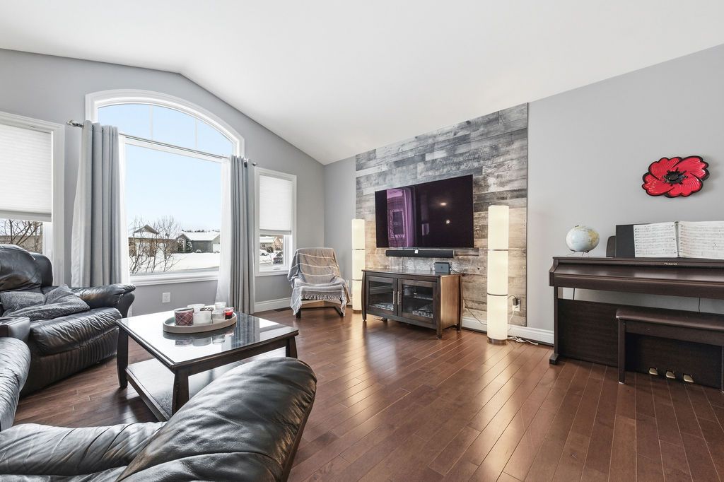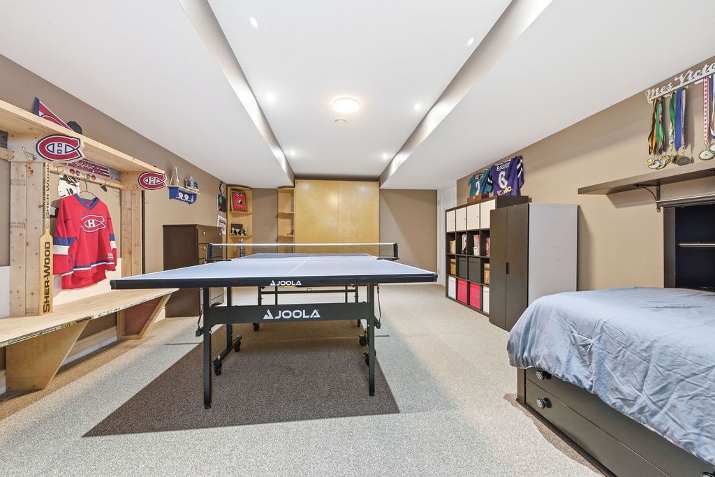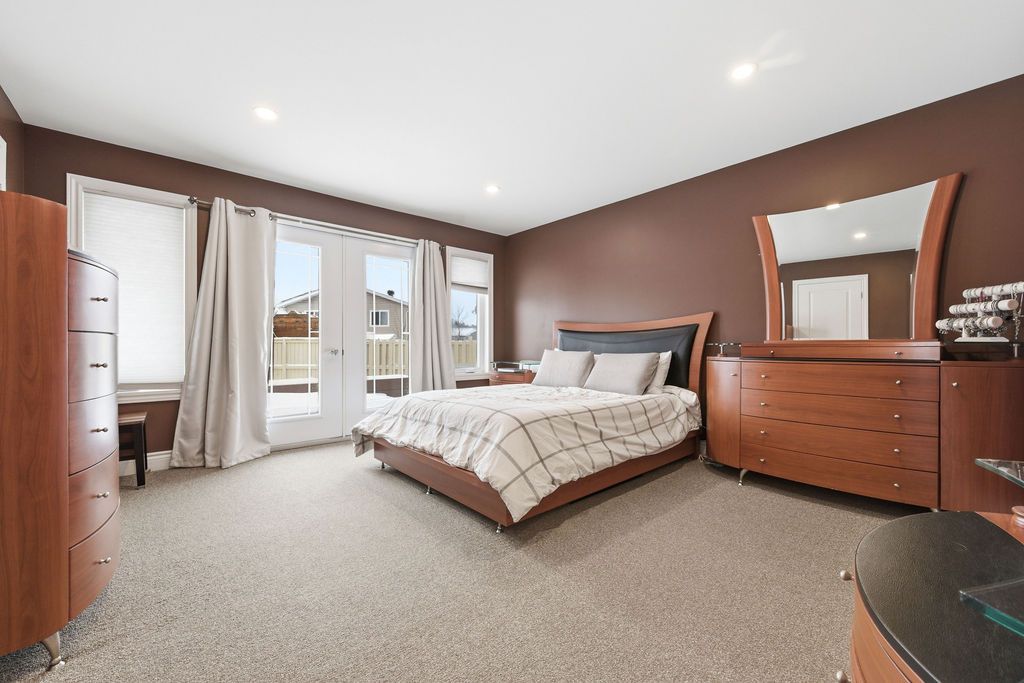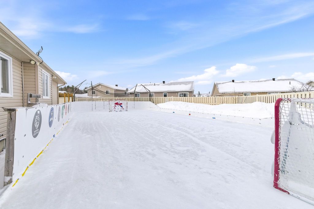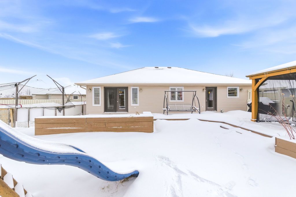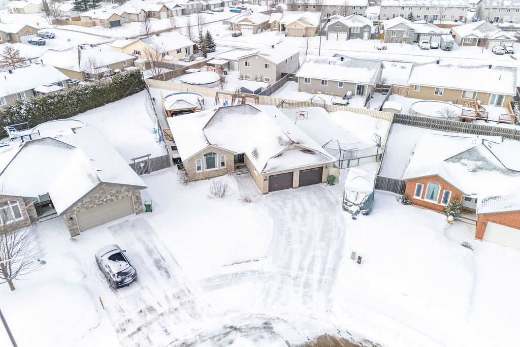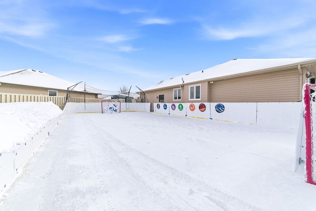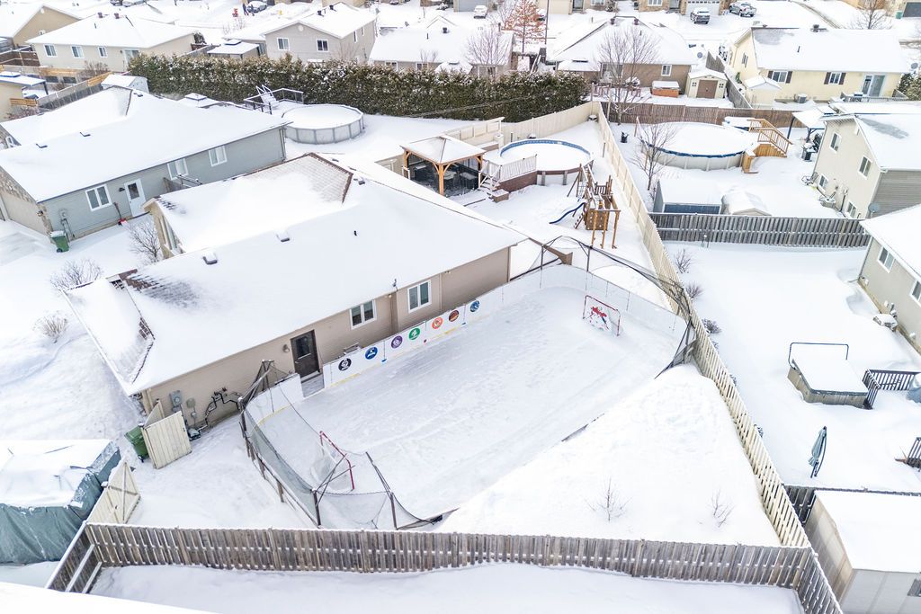 An exceptional and rarely offered five-bedroom bungalow, this expansive residence blends refined comfort with effortless family living. Offering approximately 1,699 sq ft on the main level, the home showcases a thoughtfully designed open-concept layout, highlighted by a soaring vaulted ceiling in the sun-filled living room, elegant hardwood flooring in the dining area, and a beautifully appointed kitchen featuring a central island and abundant custom cabinetry. The private primary retreat is a true sanctuary, complete with dual step-in closets and a spa-inspired ensuite bath. Two additional generously sized bedrooms and a well-appointed four-piece bathroom complete the main level. The fully finished lower level is designed for both relaxation and entertainment, featuring a spacious recreation room anchored by a cozy corner natural gas fireplace, along with two additional bedrooms-including an oversized, versatile space ideal for a home theatre, executive office, or luxurious guest or teen suite. Set on an impressive lot, the outdoor living experience is nothing short of extraordinary. Enjoy a professionally designed backyard oasis featuring an expansive deck, elegant gazebo, heated pool, and a private four-season outdoor hockey rink-perfect for year-round recreation and entertaining. A double attached garage and impeccable finishes throughout complete this distinguished, move-in ready home. A 48 hour irrevocable is required with all offers.
