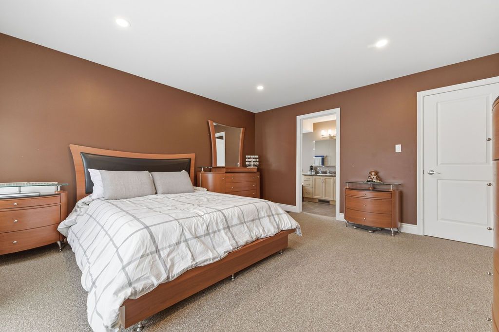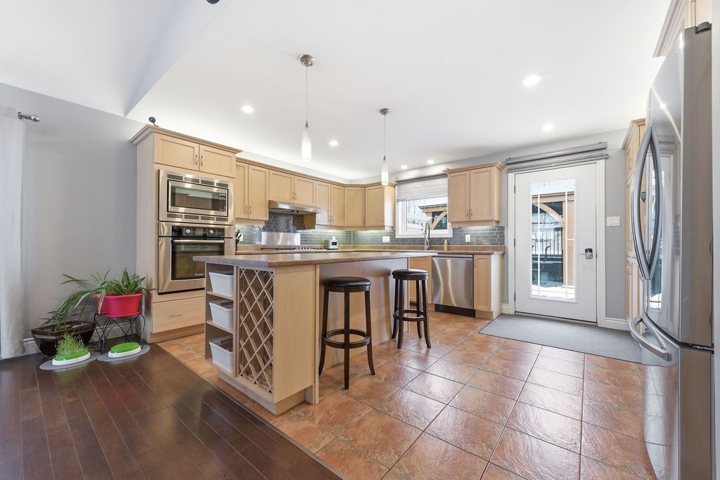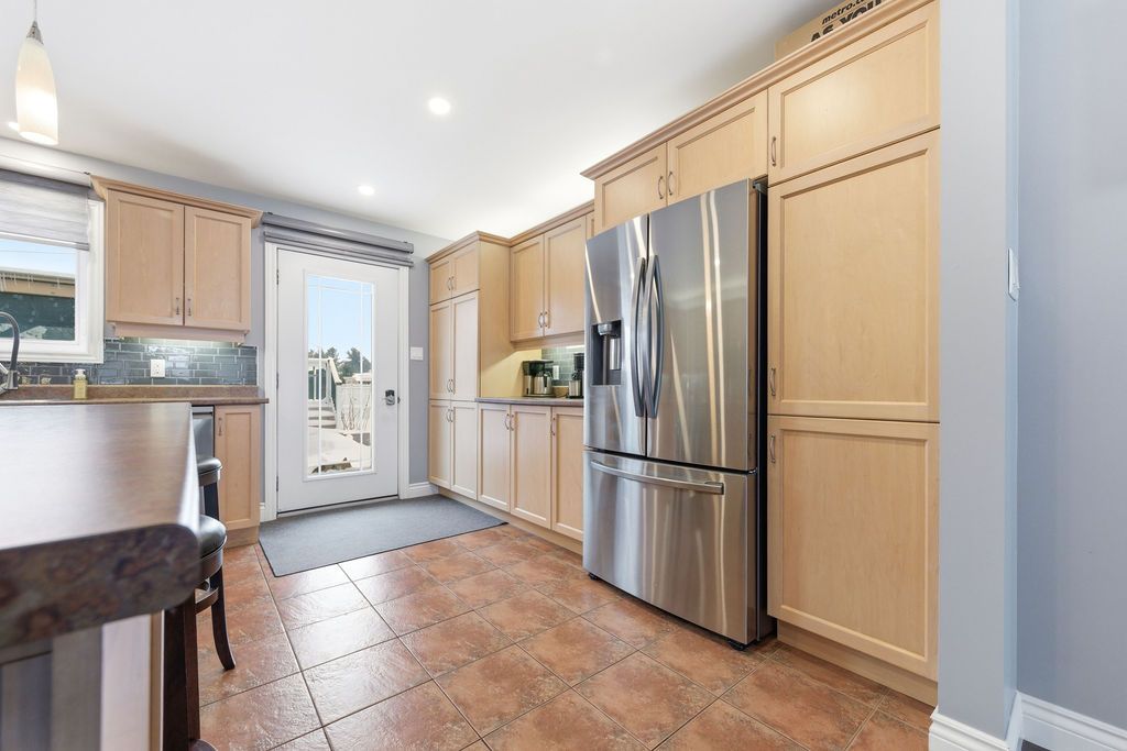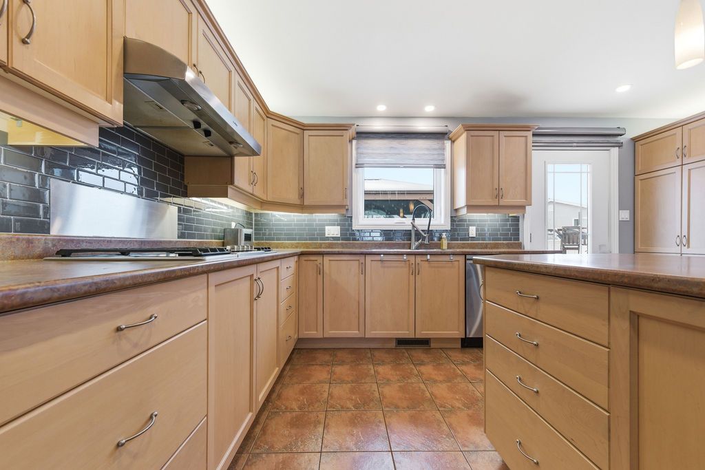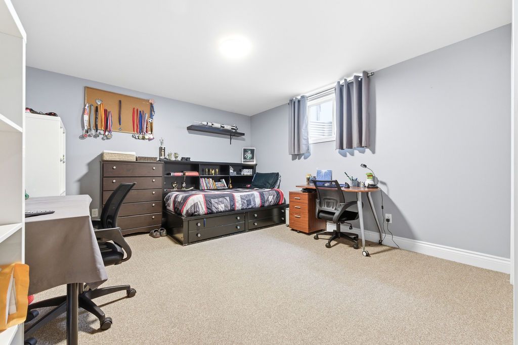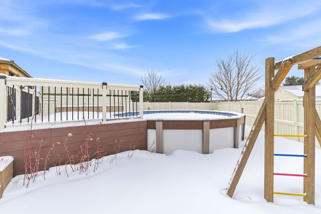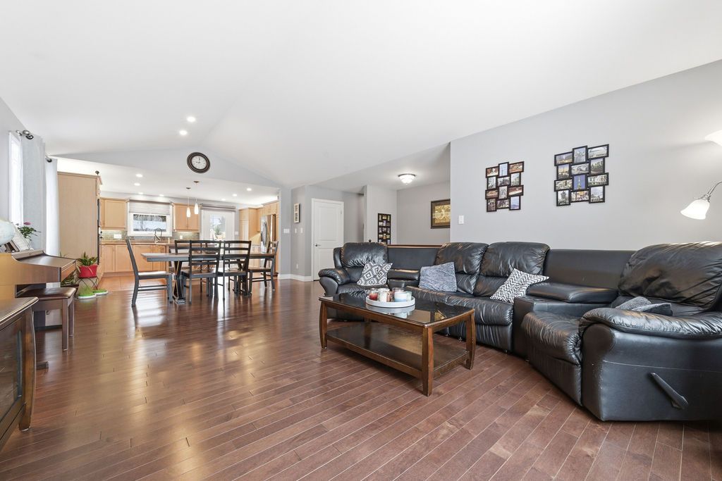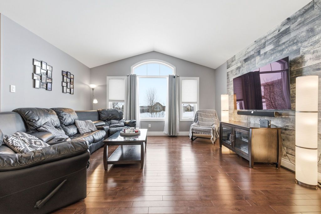 An exceptional and rarely offered five-bedroom bungalow, this expansive residence blends refined comfort with effortless family living. Offering approximately 1,699 sq ft on the main level, the home showcases a thoughtfully designed open-concept layout, highlighted by a soaring vaulted ceiling in the sun-filled living room, elegant hardwood flooring in the dining area, and a beautifully appointed kitchen featuring a central island and abundant custom cabinetry. The private primary retreat is a true sanctuary, complete with dual step-in closets and a spa-inspired ensuite bath. Two additional generously sized bedrooms and a well-appointed four-piece bathroom complete the main level. The fully finished lower level is designed for both relaxation and entertainment, featuring a spacious recreation room anchored by a cozy corner natural gas fireplace, along with two additional bedrooms-including an oversized, versatile space ideal for a home theatre, executive office, or luxurious guest or teen suite. Set on an impressive lot, the outdoor living experience is nothing short of extraordinary. Enjoy a professionally designed backyard oasis featuring an expansive deck, elegant gazebo, heated pool, and a private four-season outdoor hockey rink-perfect for year-round recreation and entertaining. A double attached garage and impeccable finishes throughout complete this distinguished, move-in ready home. A 48 hour irrevocable is required with all offers.