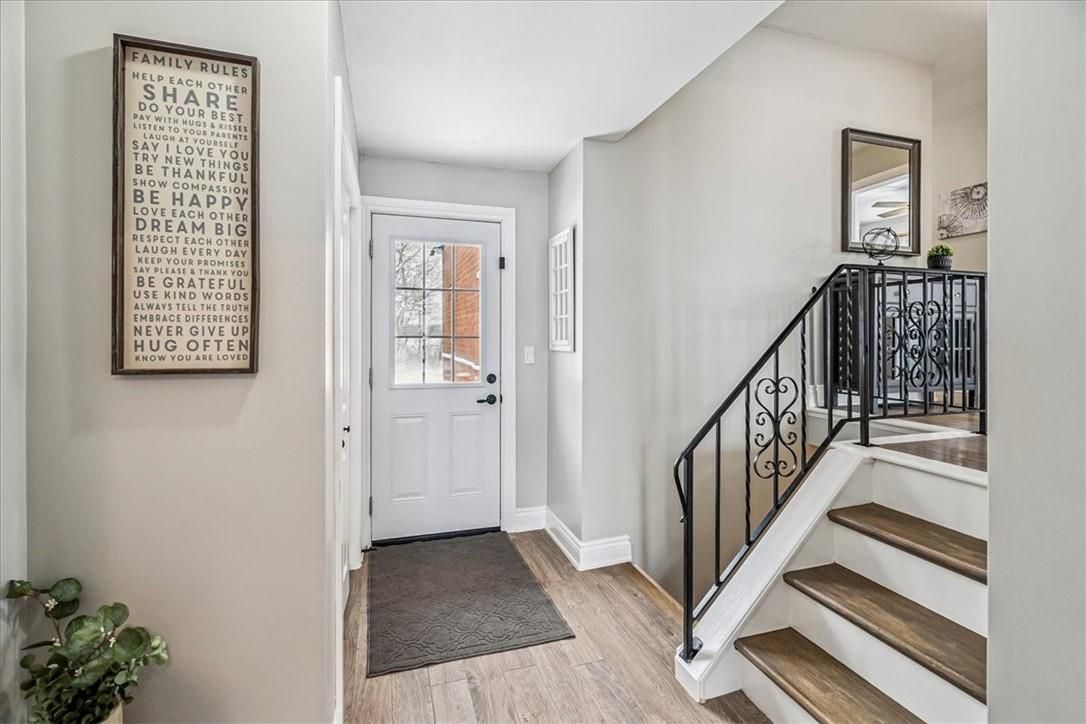 Nestled on a quiet dead-end street and backing onto picturesque farmers' fields, this exceptional property offers the perfect blend of peaceful country living just minutes from the city. This tastefully updated home features a single-car garage with inside entry and a spacious driveway providing ample parking. The bright, modern kitchen boasts large windows, newer appliances, and a walkout to the deck-ideal for enjoying the serene surroundings. Adjacent to the kitchen is a generous dining area that flows seamlessly into the inviting living room. Completing the main level is 3 well-sized bedrooms and a five-piece bathroom. The fully finished basement adds valuable living space with an additional bedroom, a large bathroom, ample storage, and a comfortable living area with built in speakers. Updates include windows(2014), basement waterproofing (2014), an owned hot water tank(2019), furnace and ac (2019), cistern pump (2023), sump pump and battery backup (2021), updated plumbing and duct work (2018) and paved driveway (2022). Enjoy the tranquility of rural views with the convenience of city amenities just minutes away.