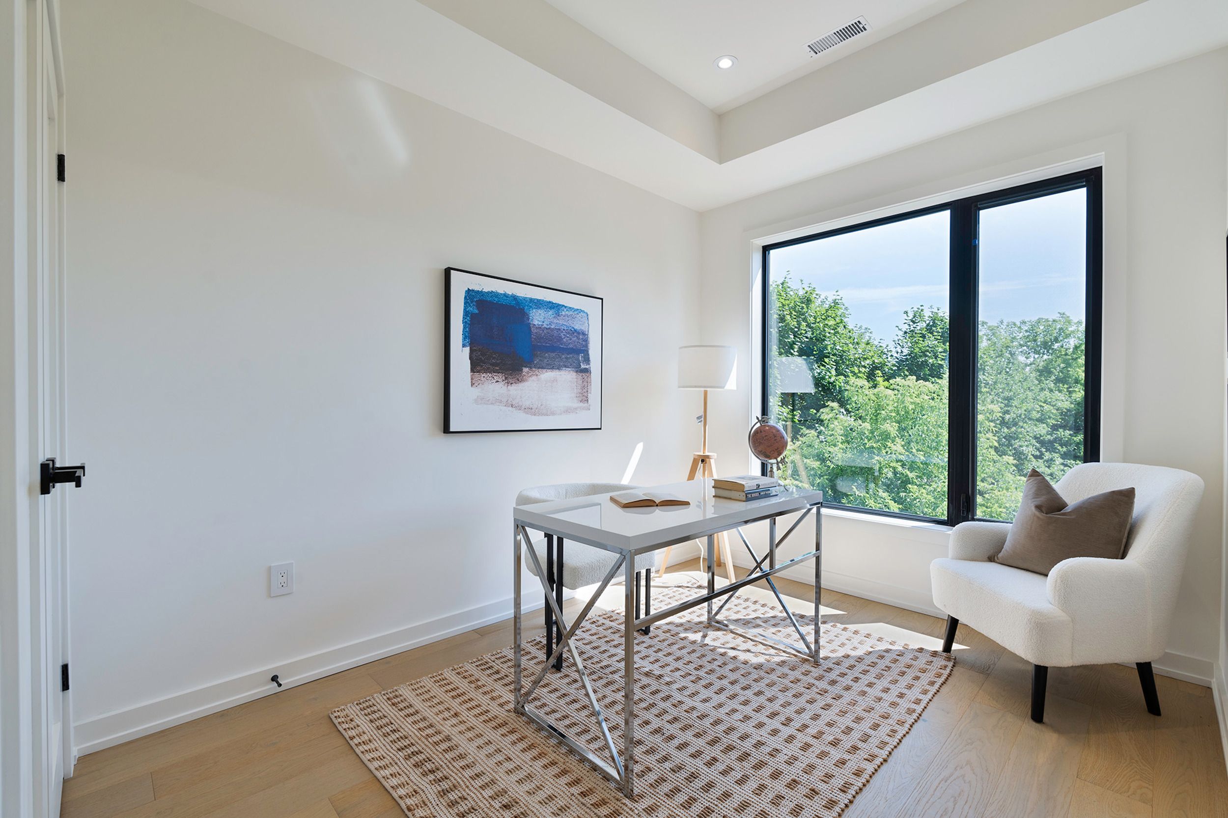 • Bright upper unit with large windows, high ceilings, and gourmet kitchen.