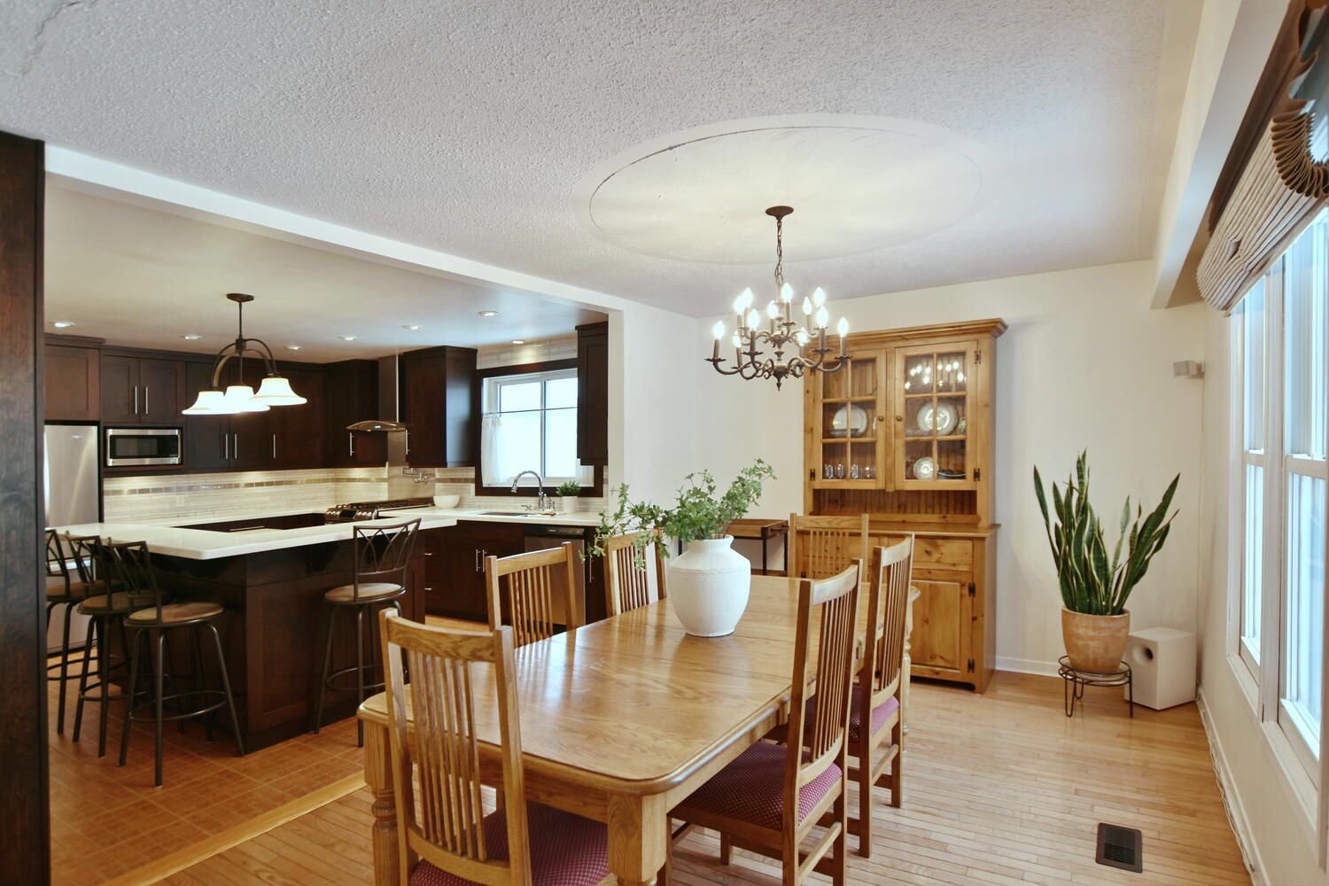Step into a home that truly stands out! A charming stone walkway welcomes you to this distinctive property, leading into a generous foyer that offers convenient access to the backyard, attached garage, & main living spaces. Thoughtfully designed for both everyday living & entertaining, this home blends comfort with timeless style. At the heart of the home is a beautifully appointed, chef-inspired kitchen featuring warm cherry cabinetry, quartz countertops with an extended breakfast bar, & an elegant marble backsplash. Stainless steel appliances & an oversized butcher-block island make this space as functional as it is impressive-perfect for hosting guests or enjoying quiet mornings at home. The dining room & inviting living room showcase hardwood flooring & large windows that flood the space with natural light, creating a bright welcoming atmosphere. The main level offers 3 well-proportioned beds & a full bath. The finished lower level expands your living space with a spacious family room anchored by a striking stacked-stone fireplace-ideal for movie nights or cozy evenings in. This level also includes another full bath & bed, dedicated office area, workshop space for hobbies or projects, & a separate laundry room, providing excellent versatility for modern lifestyles. Outdoors, enjoy a private, almost fully fenced landscaped backyard designed for relaxation & entertaining. A large deck offers plenty of space for outdoor dining, while an in-ground sprinkler system keeps the grounds lush & low-maintenance. A large storage shed adds practical functionality. Additional highlights include a high-efficiency gas furnace, central air & an hrv system for peace of mind & energy efficiency. Ideally located close to schools, the ymca, ice rink, & the extensive collingwood trail system, this home offers the perfect balance of privacy, convenience, & lifestyle. A unique opportunity to own a well-cared-for home in a central sought-after location!!
