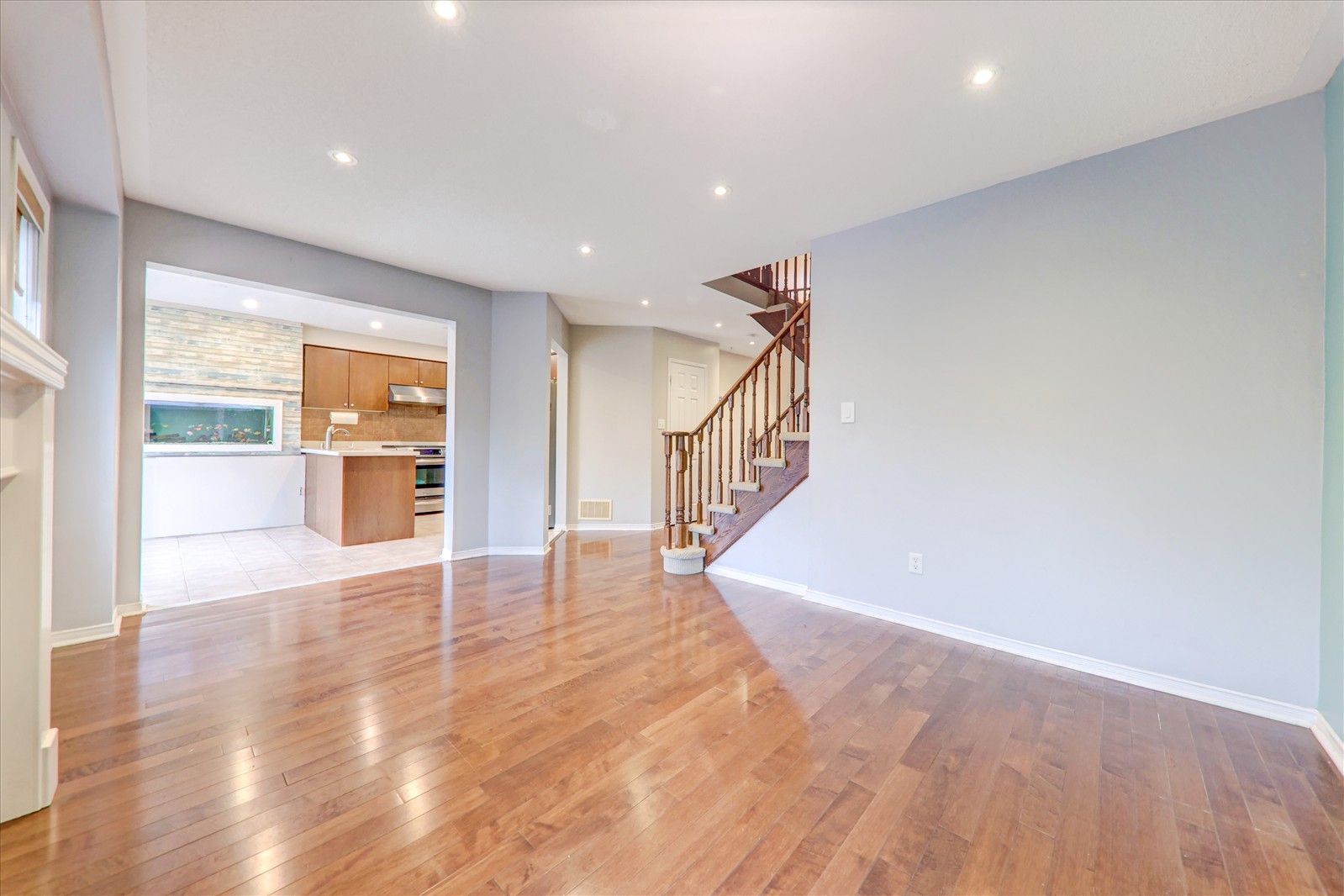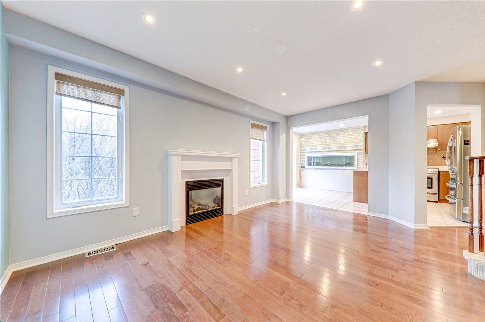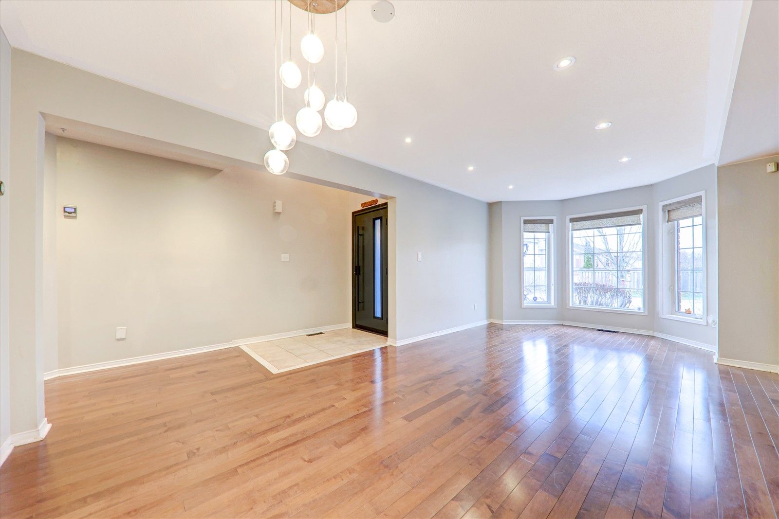 • High-end hardwood flooring adds an elegant touch throughout the house.