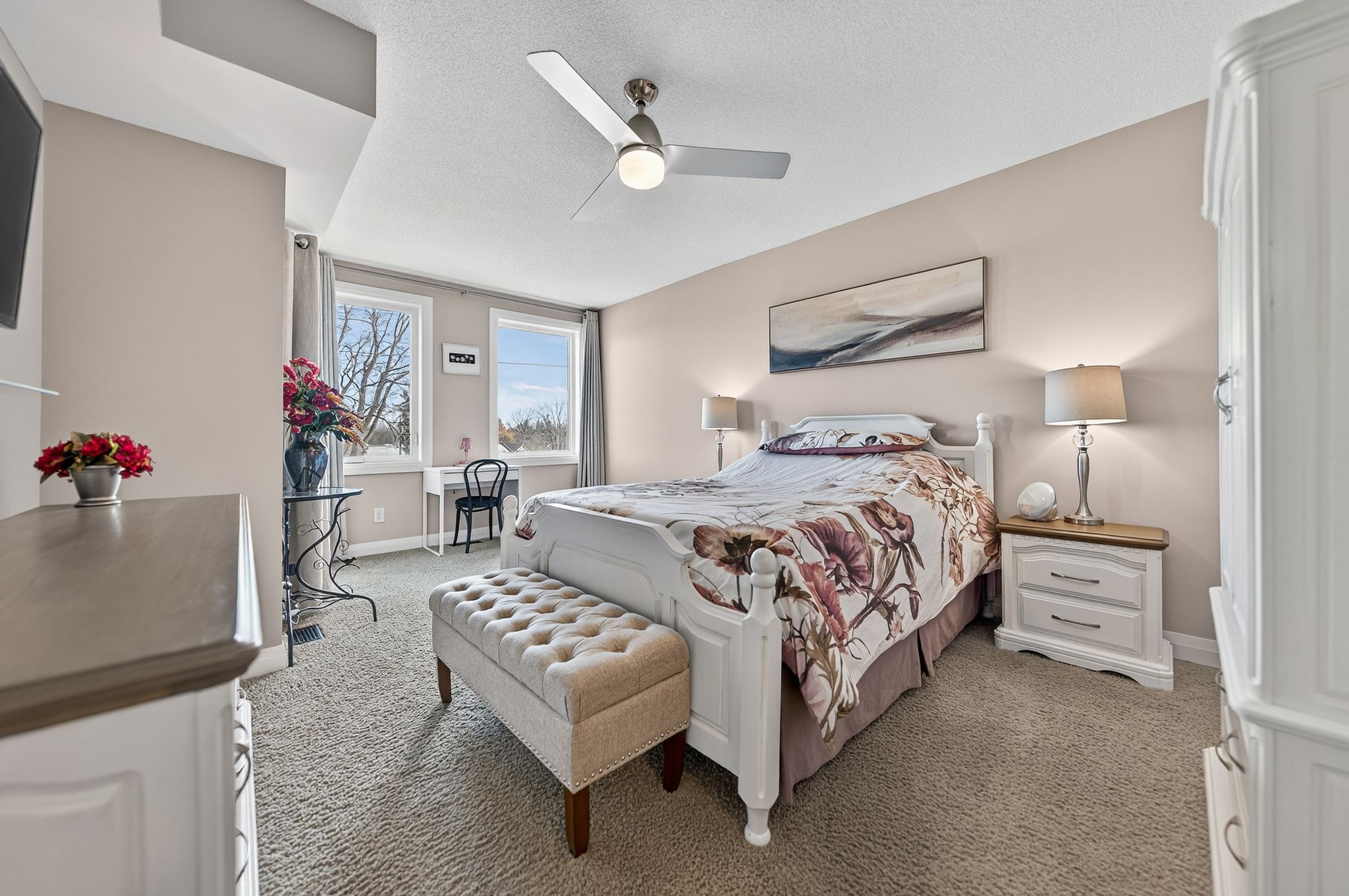 • Spacious primary bedroom with private balcony, ensuite, and walk-in closet.
