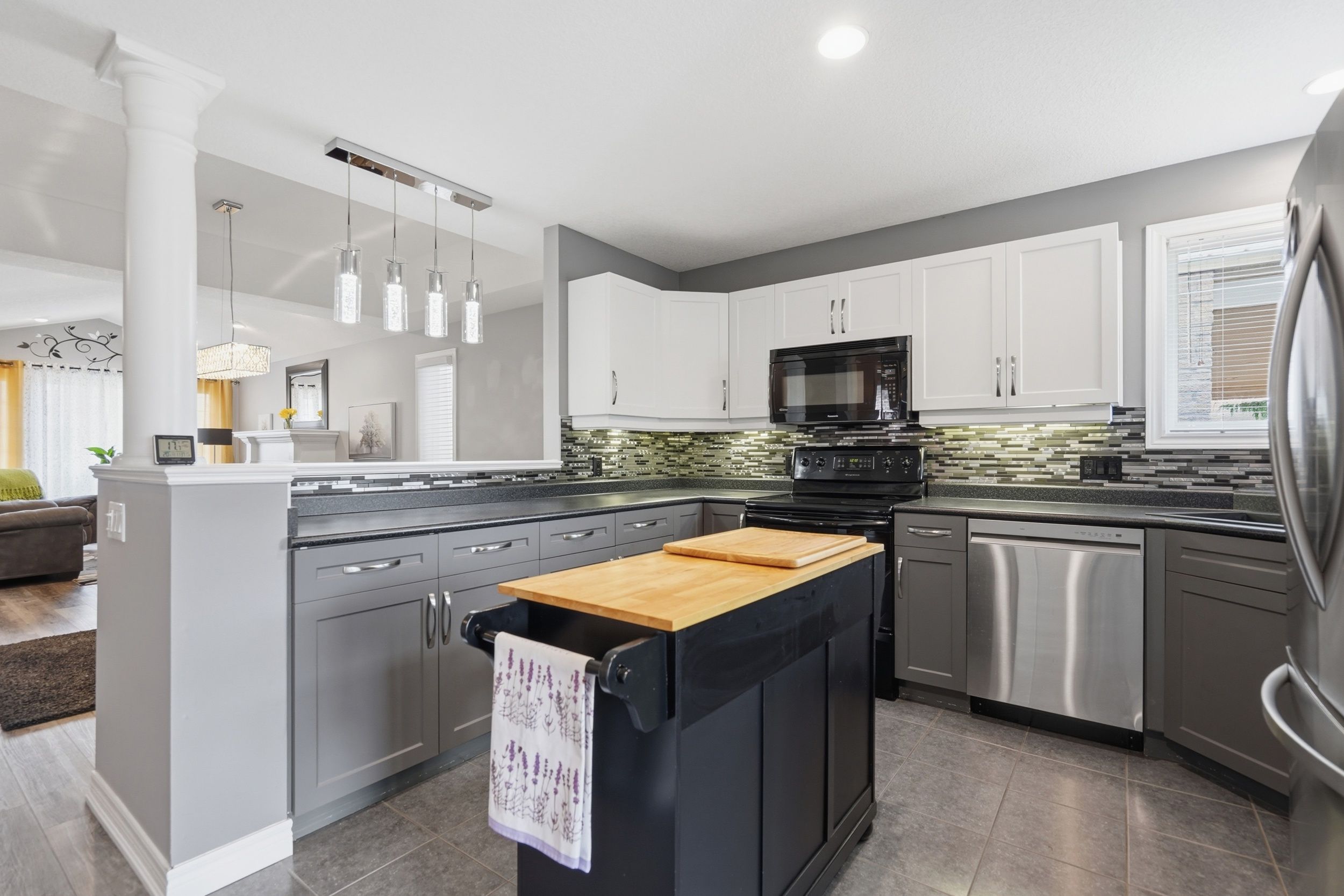 • Bright open main living space with a modern kitchen.