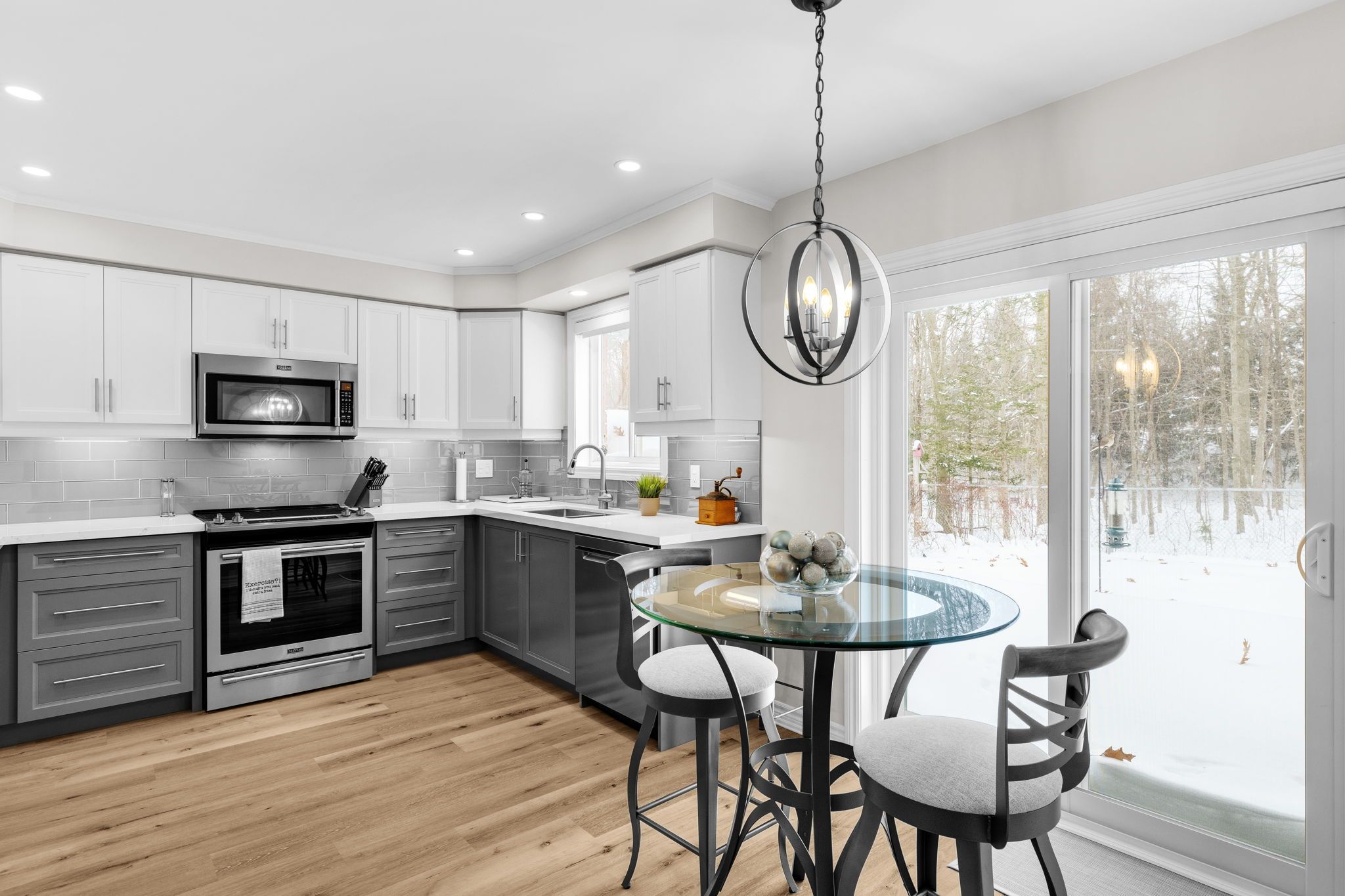 Introducing 53 benson drive, a beautifully updated and meticulously maintained two storey home backing onto the scenic nine mile portage heritage trail. A true home of distinction, it blends architectural sophistication with thoughtful functionality, set on a premium ravine lot in one of barrie's most desirable communities. This fully updated residence offers 3 bedrooms, 4 bathrooms, and a fully finished basement all showcasing impeccable, high quality finishes. The welcoming foyer opens into a bright, airy floor plan where large windows invite abundant natural light throughout. An elegant gas fireplace anchors the living area, striking the perfect balance between comfort and refined style. The chef's kitchen impresses with premium stainless steel appliances, sleek design elements, and sophisticated finishes that pair beautifully with the rich luxury vinyl flooring carried throughout the main level. Upstairs, the dream worthy primary suite serves as a private retreat with a generous closet and a spa inspired ensuite straight out of a magazine. The additional bedrooms offer exceptional style, space, and comfort. The lower level provides even more living area, complete with another cozy fireplace, ideal for a recreation room, home theatre, or whatever suits your lifestyle. Additional highlights include a four car driveway, oversized two car garage, premium extra wide and deep lot, and curated designer touches at every turn. Outdoor living is equally impressive with a south facing backyard overlooking the natural ravine and a spacious deck perfect for barbecuing and entertaining. Located just minutes from highway 400, the go station, top rated schools, golf courses, barrie's waterfront, and all major amenities, this property offers an exceptional blend of luxury, convenience, and enduring value.