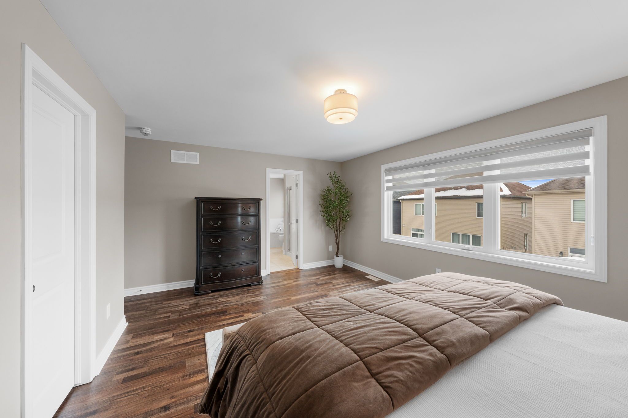 Set on a quiet street in the family friendly community of quinn's pointe, this move in ready single-family home offers a perfect blend of comfort, space, and thoughtful updates. Designed with everyday living in mind, the layout flows effortlessly from room to room, creating a welcoming atmosphere for families and entertainers alike. The main floor features a bright and spacious living and dining area, warmed by a cozy gas fireplace. The eat in kitchen is both stylish and functional, showcasing quartz countertops, a large island with breakfast bar seating, and brand-new stainless-steel appliances (fridge, stove & dishwasher 2026). Step directly from the kitchen into a private, fully landscaped and interlocked backyard that is completely maintenance free. Upstairs, vinyl flooring runs throughout the second level. The primary bedroom retreat includes a walk-in closet, and a spa inspired ensuite with a soaker tub and separate shower. Three additional well sized bedrooms, a full bathroom, and a convenient second floor laundry room complete this level, offering space and practicality for growing families. The fully finished lower level is ideal for both relaxation and entertaining, featuring a large recreation room, a dedicated tv area, and plenty of storage space. Outdoors, enjoy a true backyard oasis with a fully fenced interlock yard, a solarium with lighting, and a hot tub, perfect for entertaining or unwinding. Ideally located close to schools, parks, transit, shopping, and everyday amenities, this exceptional home delivers comfort, convenience, and lifestyle in one complete package.