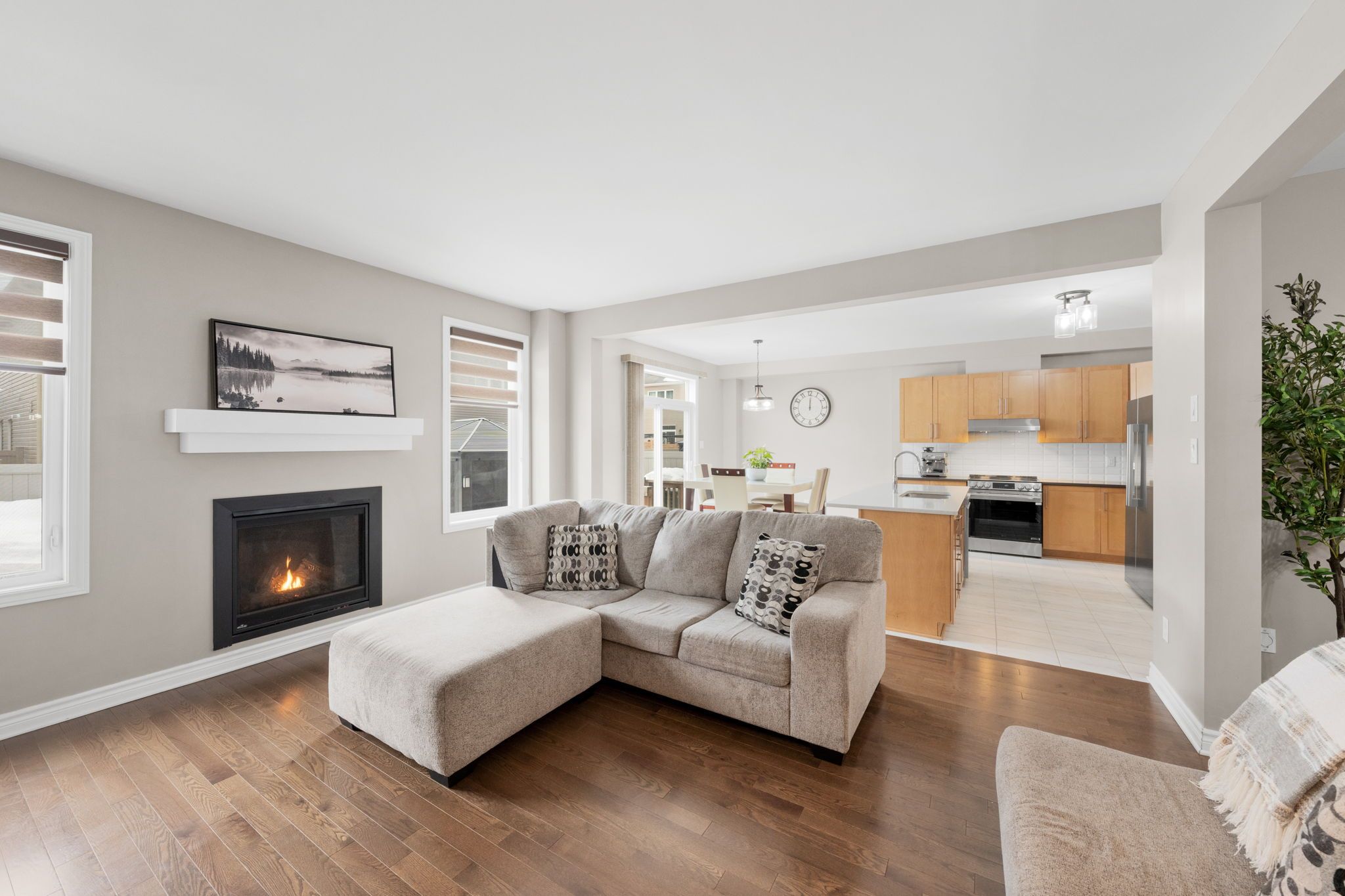 • Spacious main floor with bright living and dining areas and a gas fireplace.