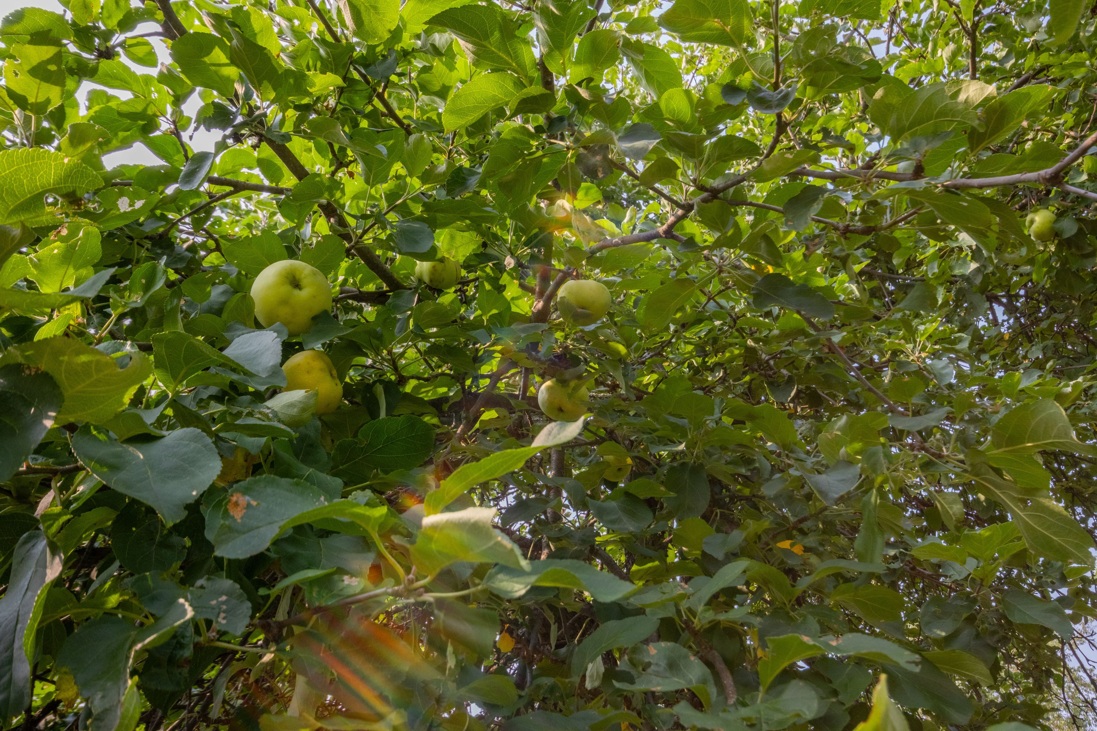 • Large yard with apple trees, garden space, and multiple outdoor sheds.