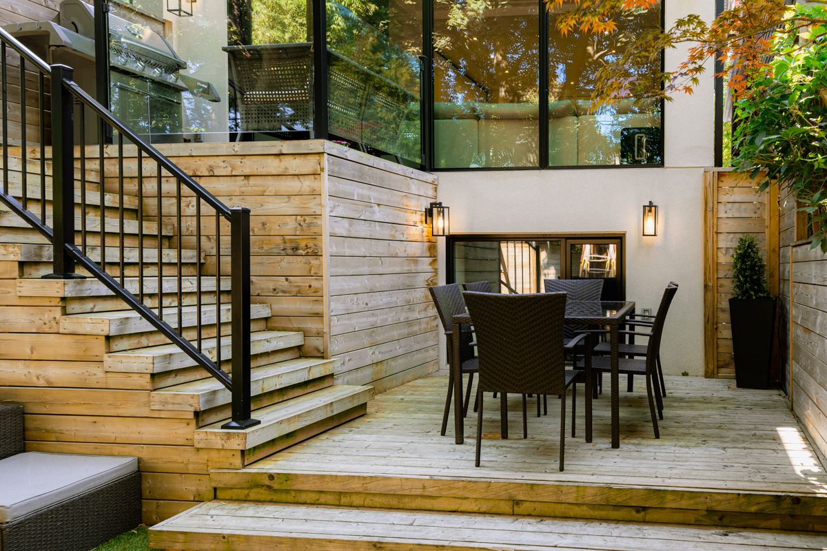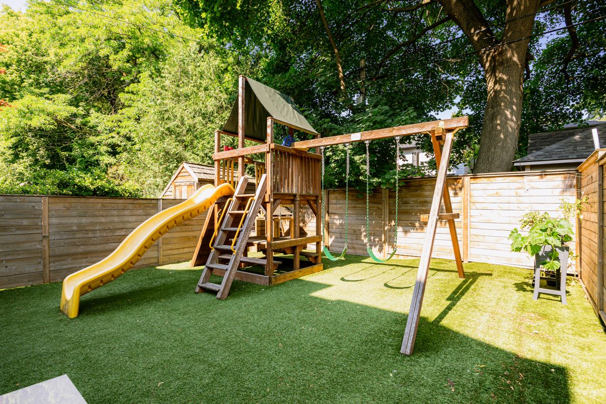 • Private back deck with natural gas BBQ and play area for kids.