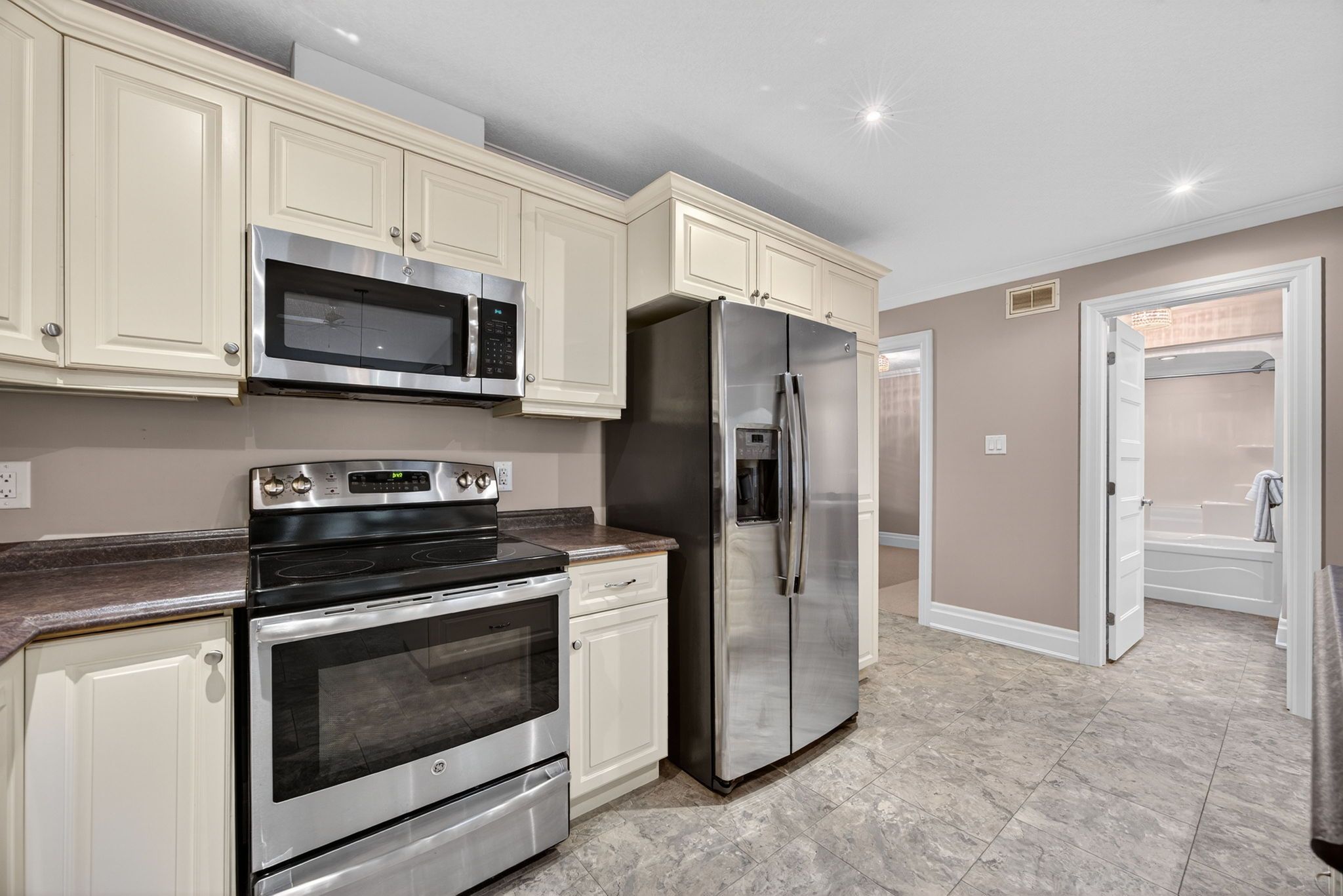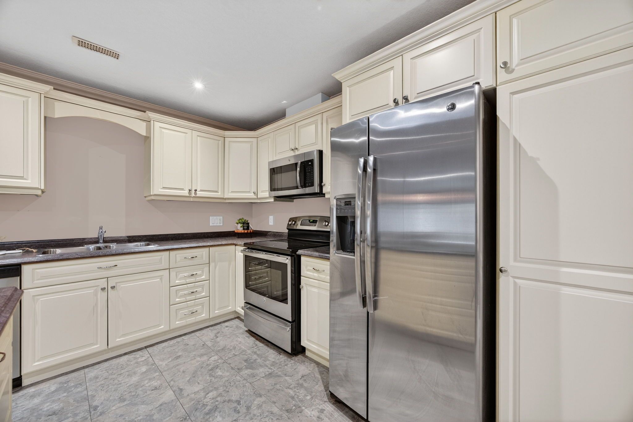 • Spacious kitchen with ample cabinetry and a private patio for relaxation.