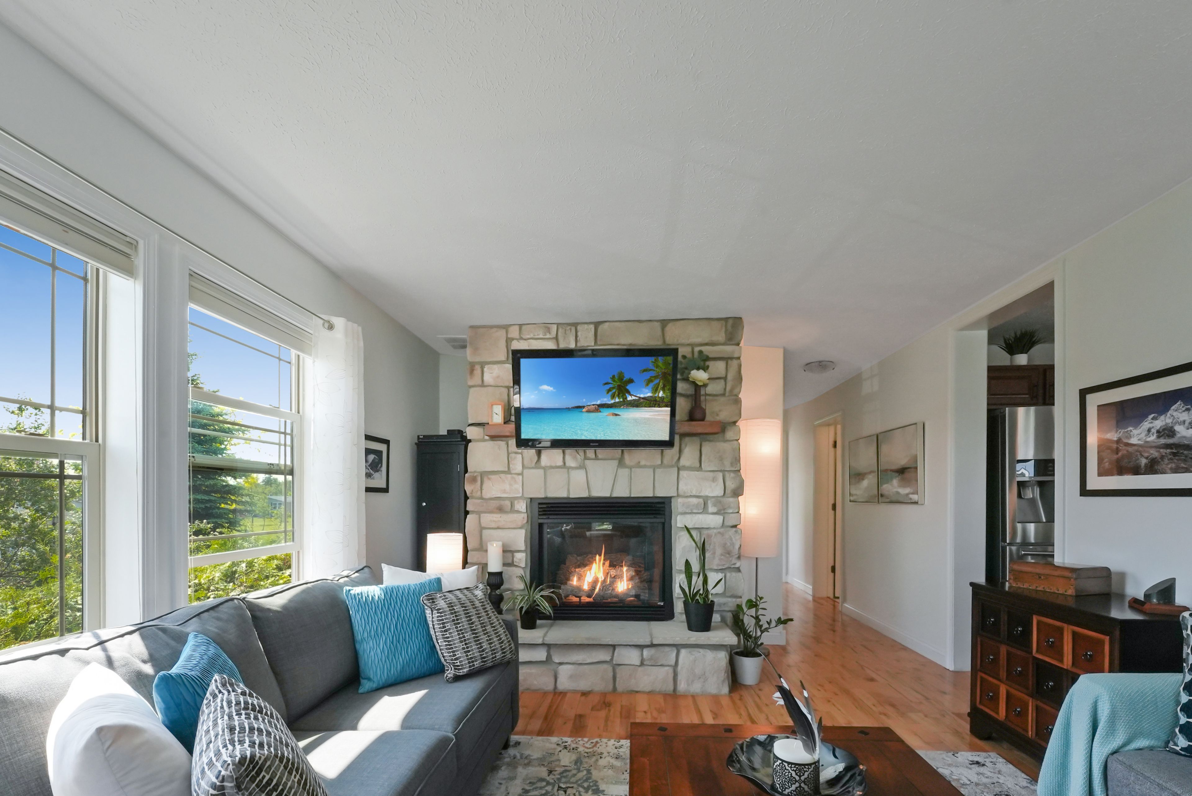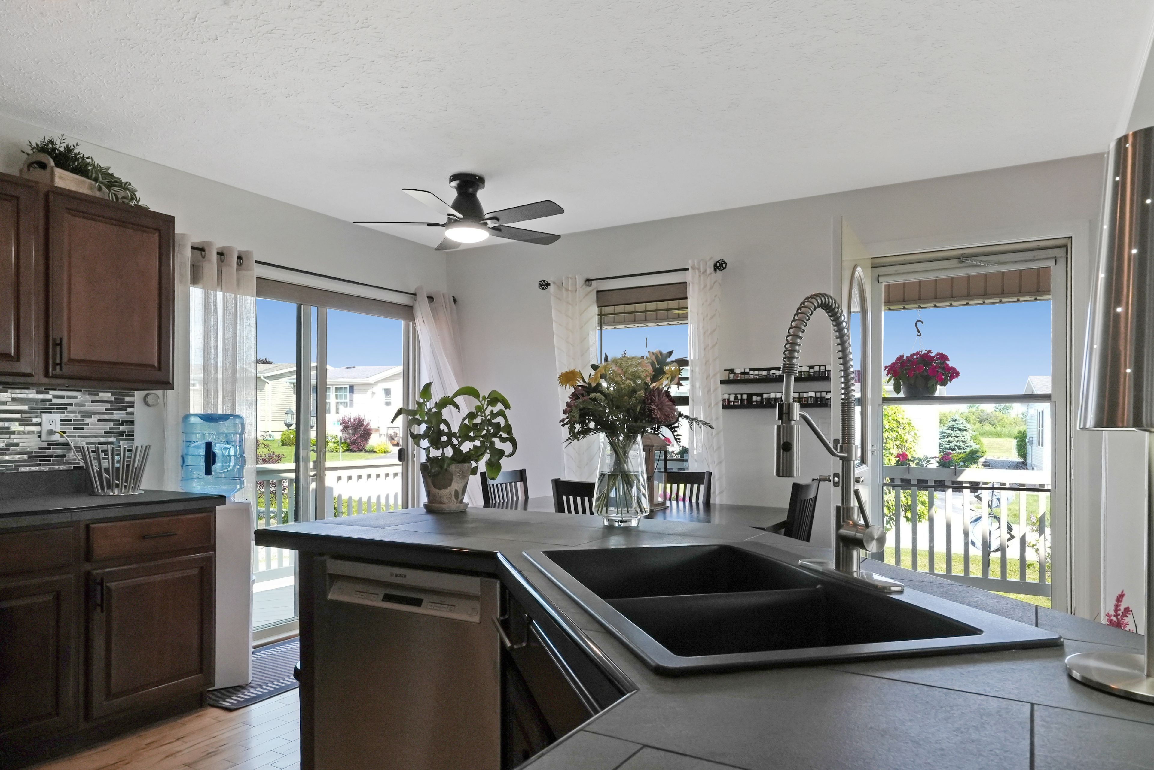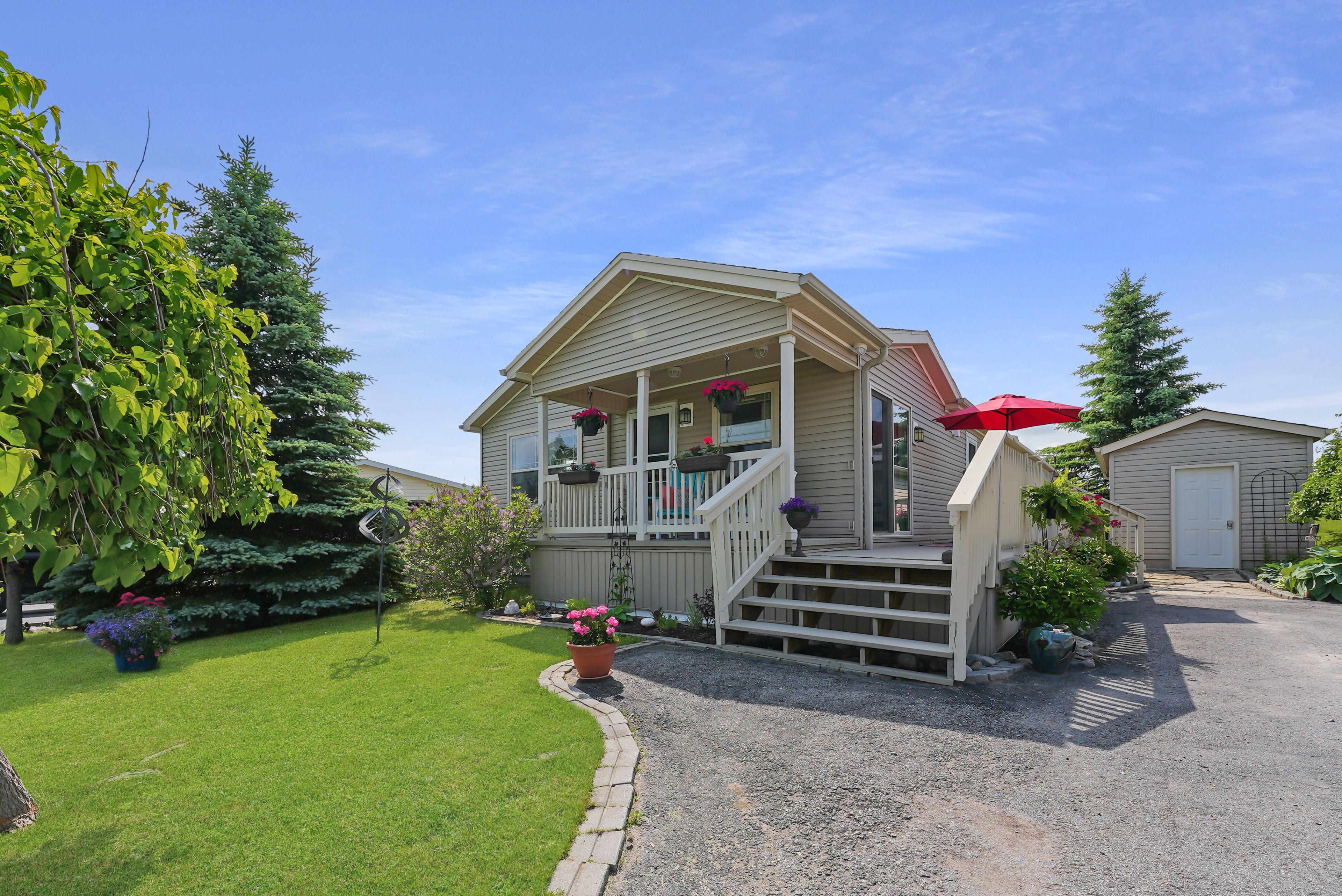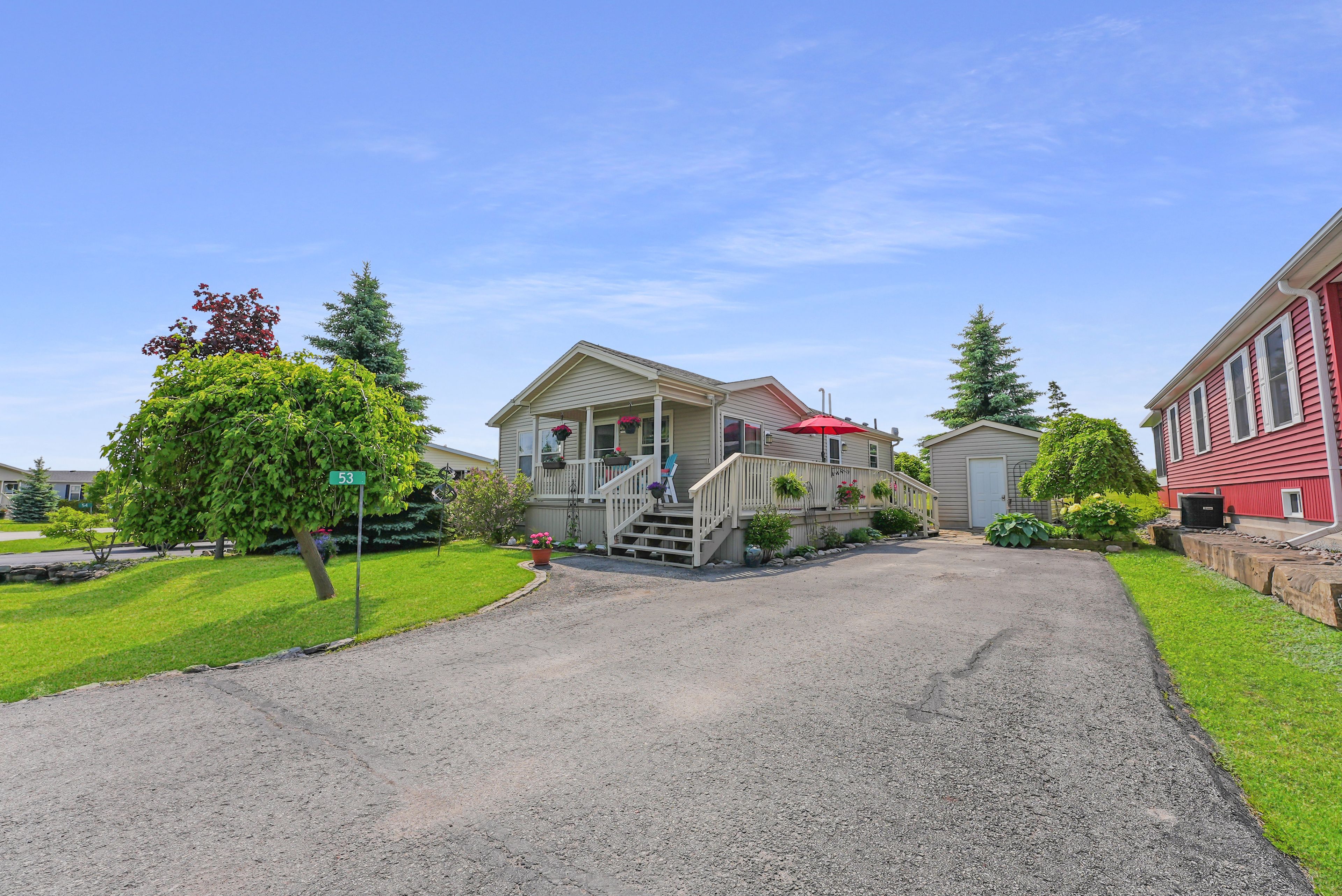 Welcome home - heron's landing offers adult lifestyle living (55+) including a members only private community event center - gym, change rooms, events space, kitchen, library, hobby area, games room and heated outdoor pool complete with patio. 53 creekside circle has been updated during 2024/25 offering new hardwood floors, luxury vinyl flooring, kitchen counter tops, deck & interior painted. Situated between bobcaygeon and lindsay heron's landing offers a convenient lifestyle of privacy & amenities including theatre, local cafes, breweries showcasing interesting boutique style shopping experiences. Pride of ownership, this immaculate home includes covered front porch, side decking plus covered rear porch. The primary suite hosts a three season sunroom, walk in closet and spacious 4 pc ensuite. A floor to ceiling stone fireplace featuring propane insert is the perfect place to get cozy on cooler days. Insulated shed perfect for storage, mature established perennial gardens with paved driveway ensure you feel special as you call 53 creekside circle your home.