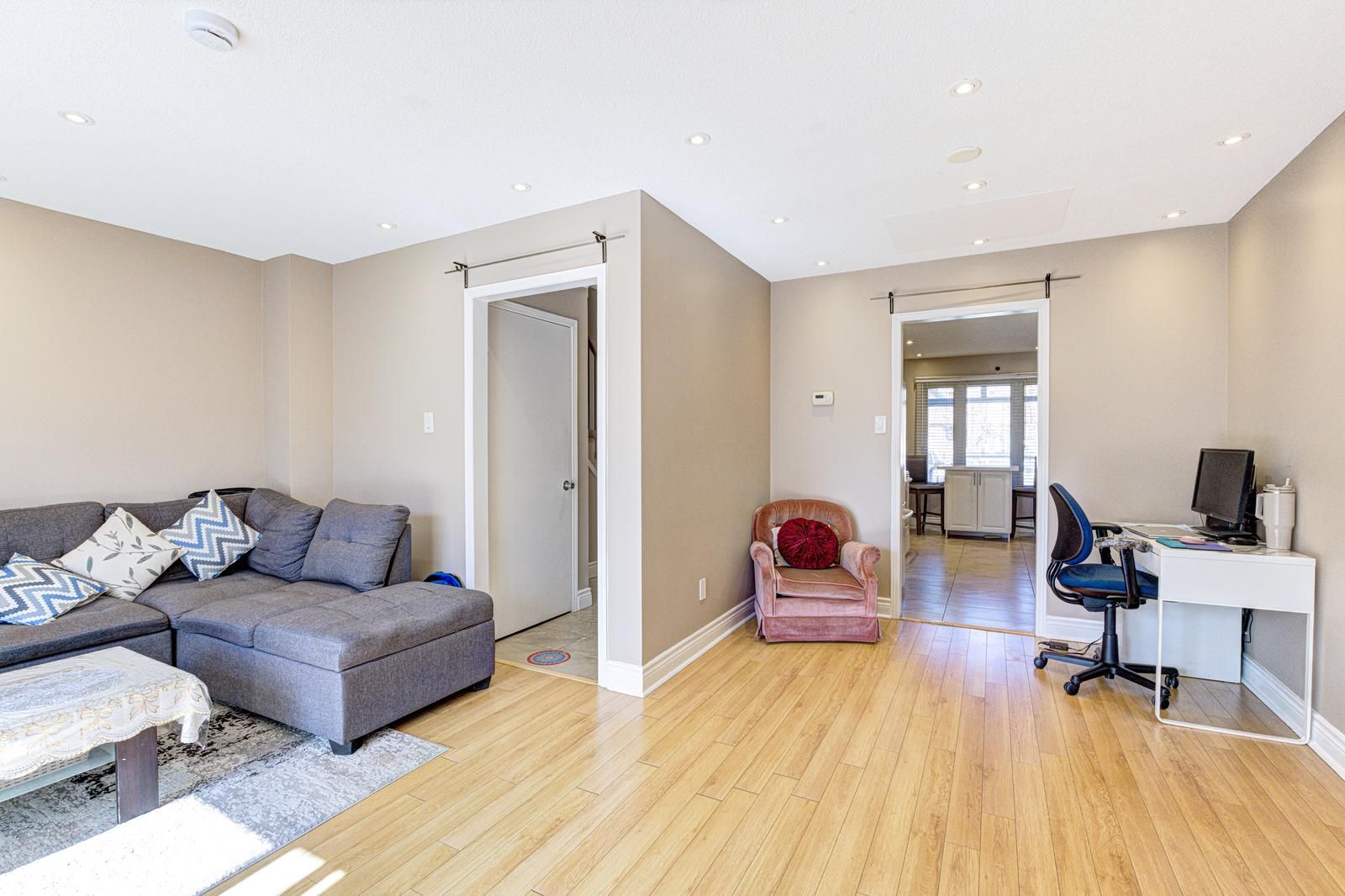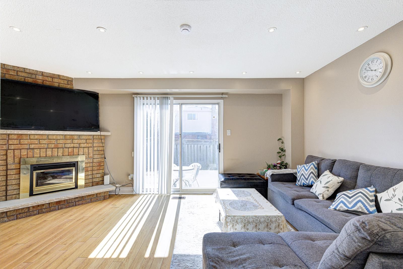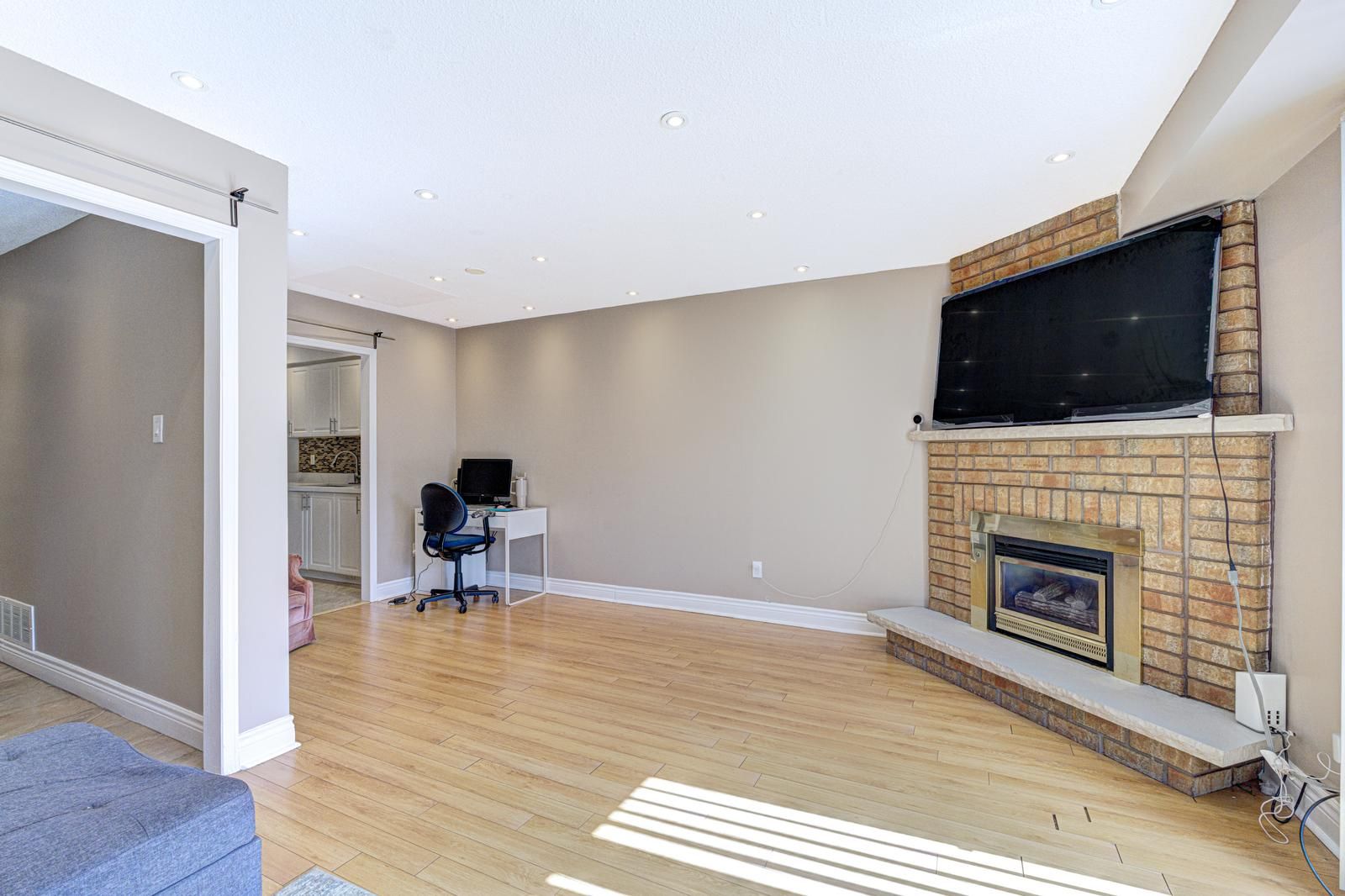 • Bright family room with fireplace, perfect for gatherings and relaxation.