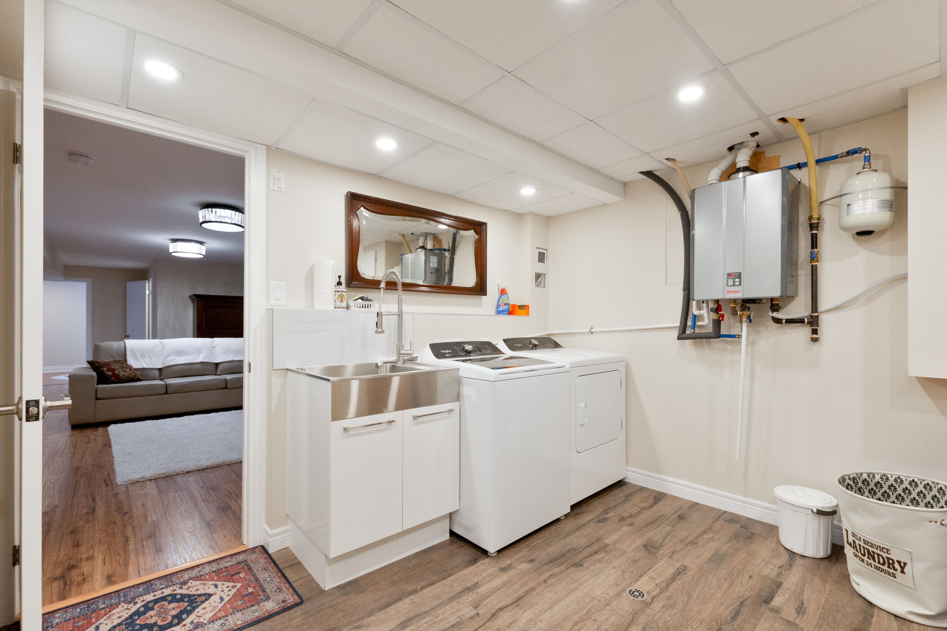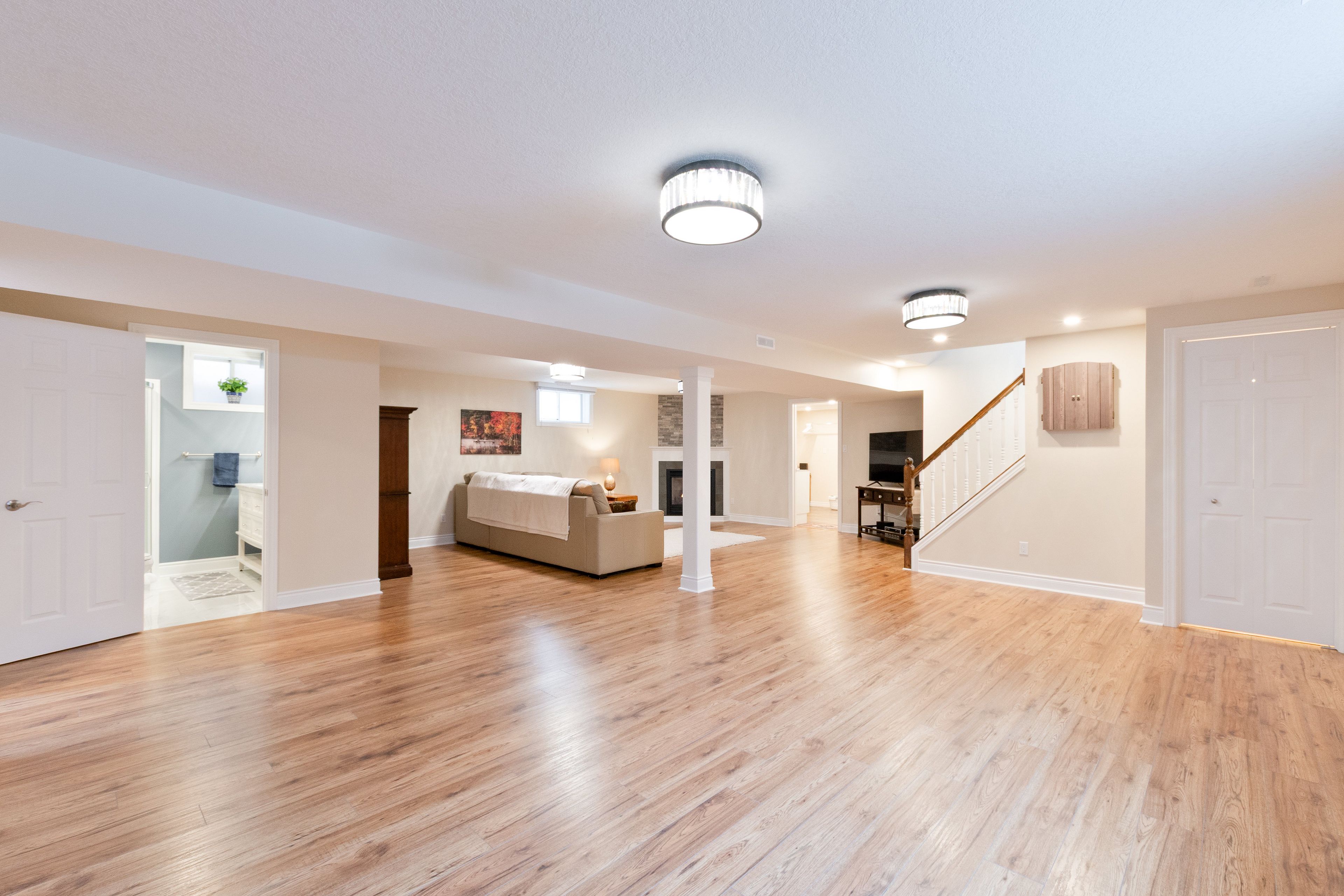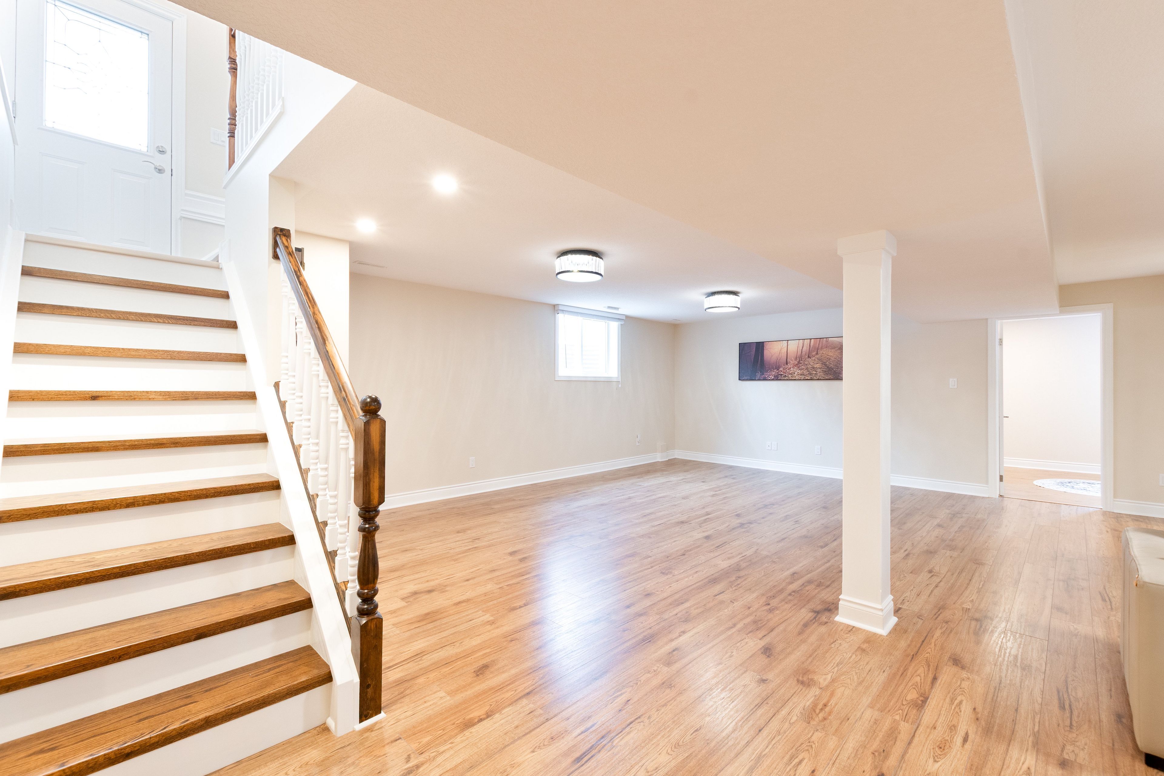 • Finished lower-level rec room perfect for movie nights and extra guests.