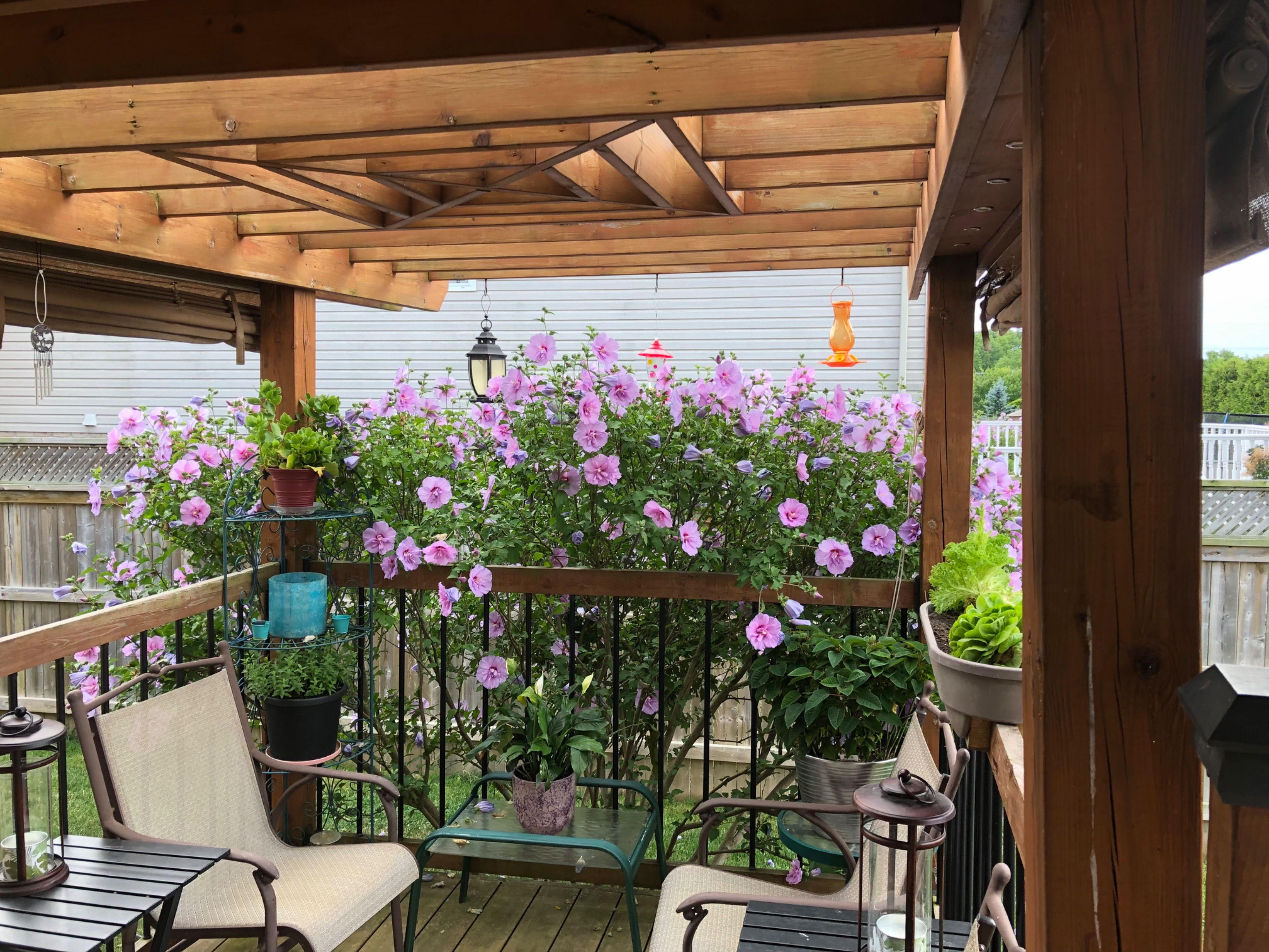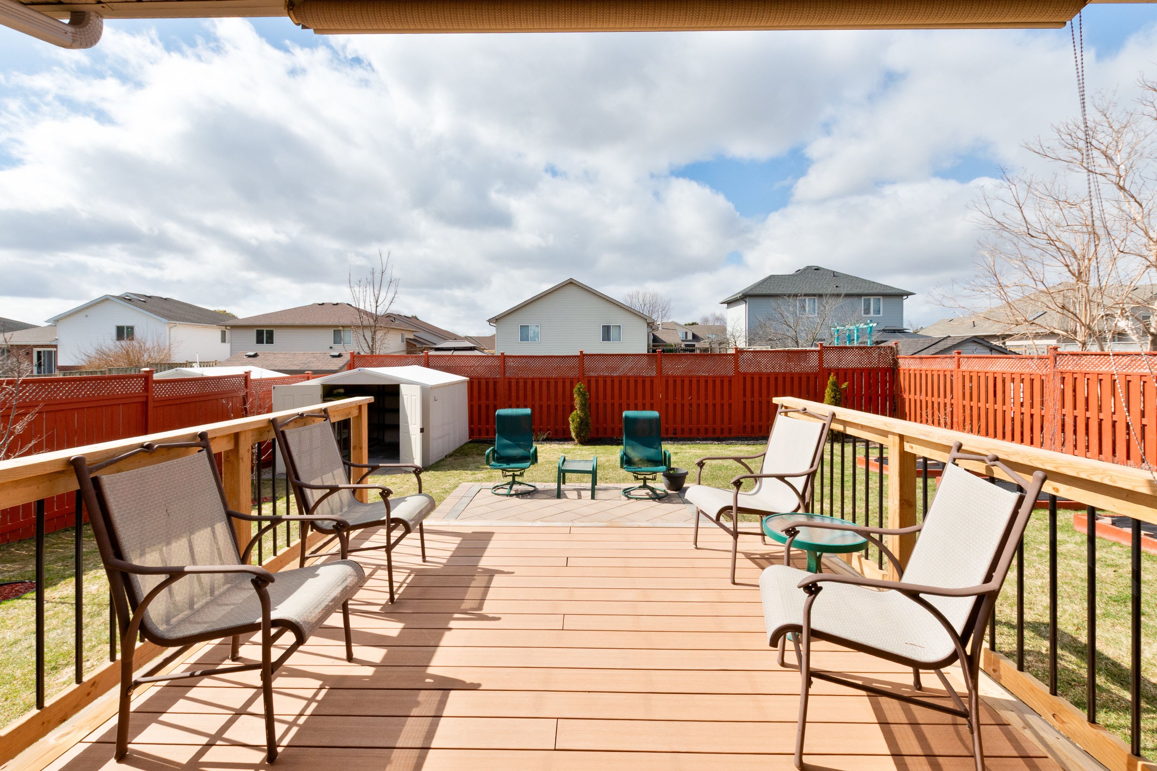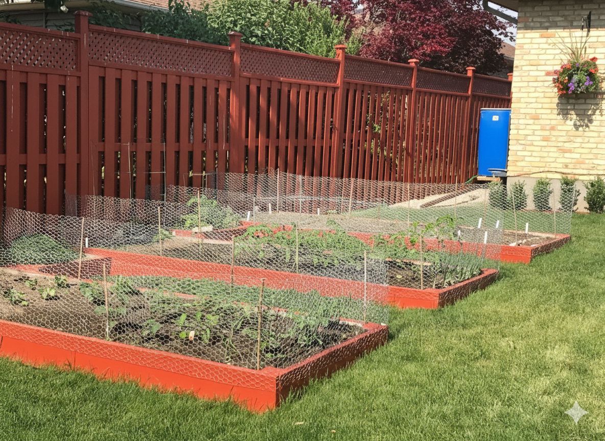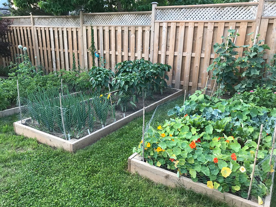 • Fully fenced backyard with a covered deck and thriving garden boxes.