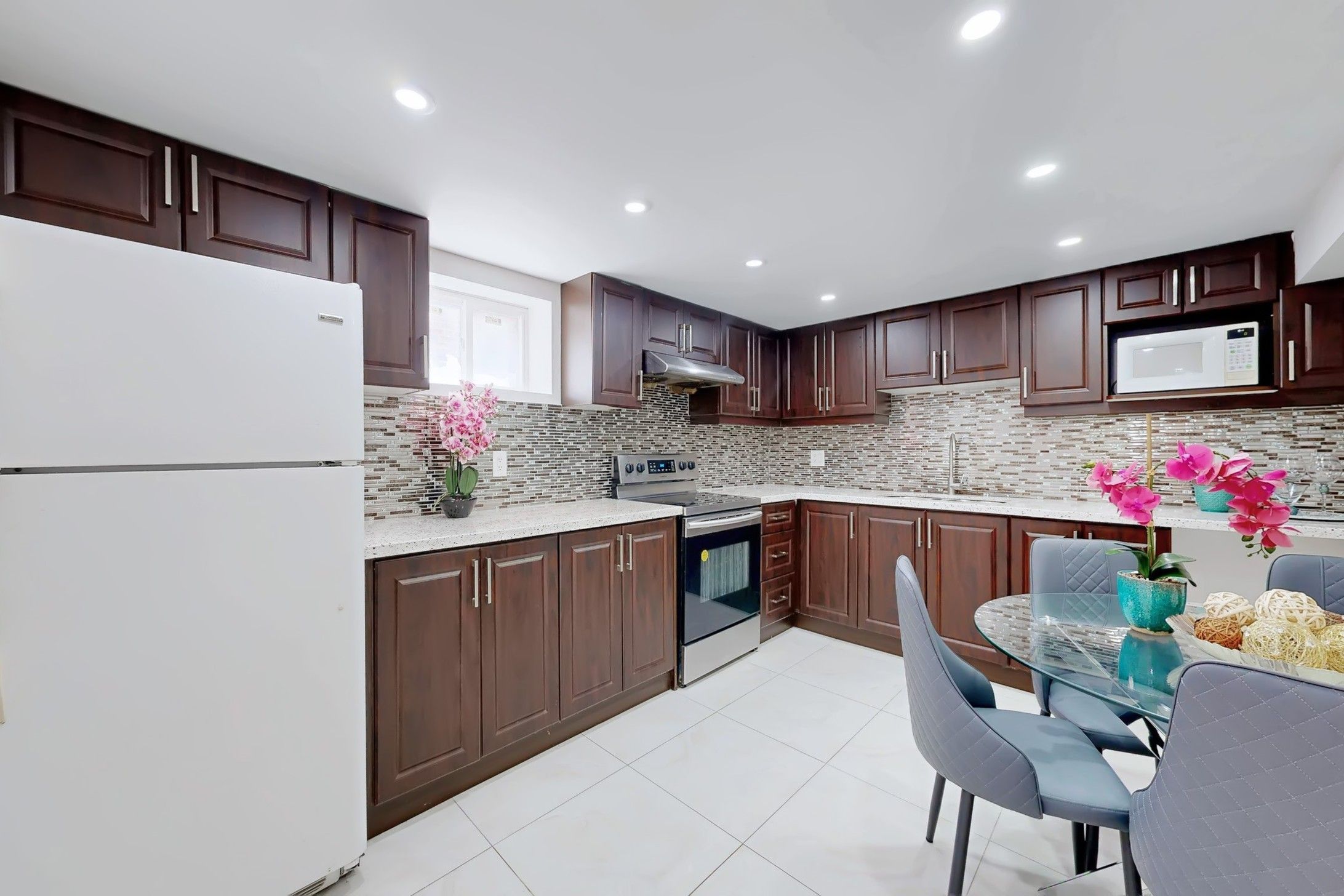 Huge private treed lot 50*173 feet, solid built bungalow, total 5 parking, $200k upgraded from bsmt to main floor. Cost $40k new roof and roof bean 2025;heat insulation cotton around wall,strip cost bright and open living/dining areas, hardwood flooring throughout main floor; model mouldings kintchen w huge central island & new stainless steel appiance, primary bedroom access ensuite washroom + 2 more bedrooms; european windows with custom electronic security shutters! Finished basement with separate entrance , homelike family kitchen + 2 bedrooms + 2 washroom, can potentially used as basement apartment, beautifully landscaped, private, park-like backyard sanctuary, close to: hwy 401/404, ttc,shopping centers, community facilities, hospitals, and more.