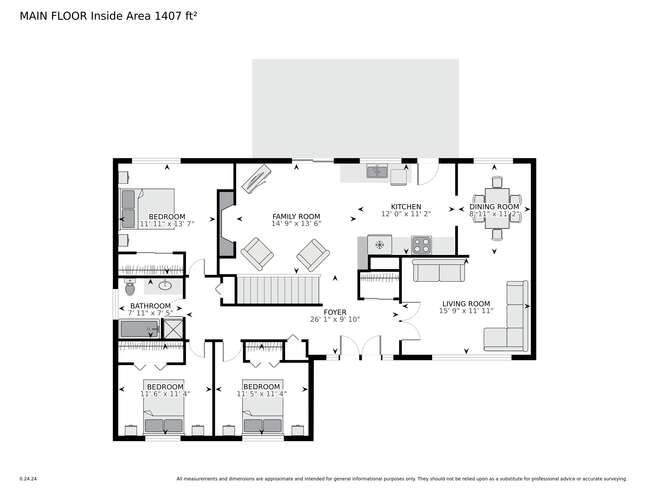 • Open concept living and dining area with ample kitchen space.